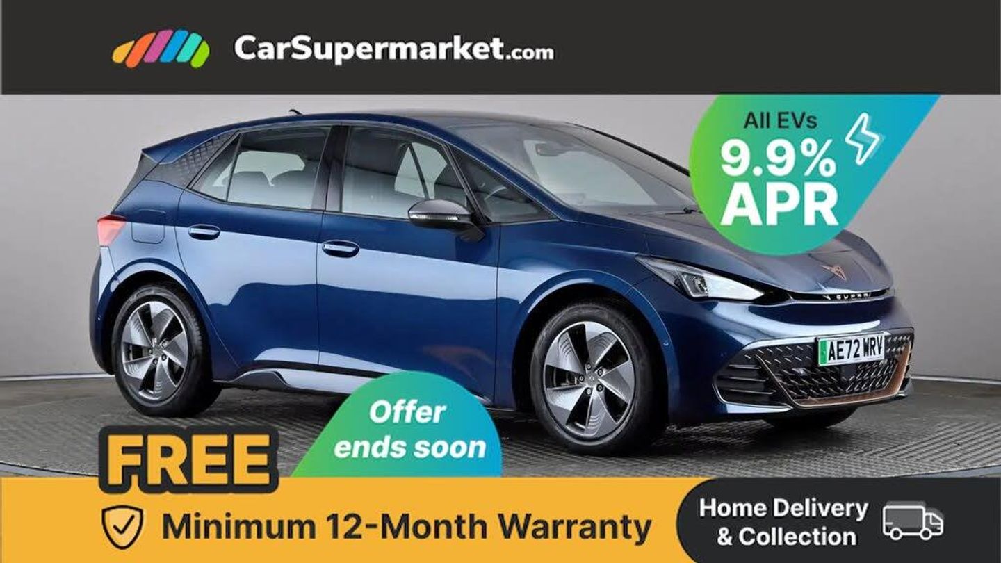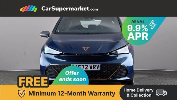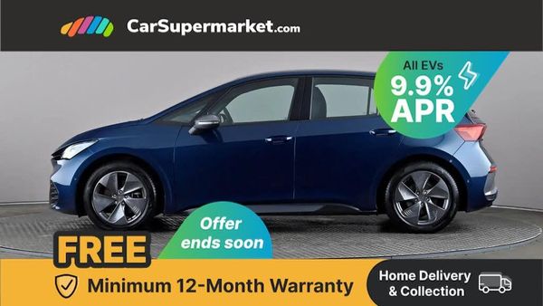 5.3" digital cockpit with 12" central display infotainment system,Bluetooth without wireless charger,Driving profile selection - Range, Comfort, Performance, Individual,Dynamic steering,e-call service,Emergency steering support with turn assist,Forward collision warning with automatic braking,Front/rear park distance control,Lane assist,PAS,Tailgate,Voice assistant,Wireless full link smartphone integration,120kW DC charging capacity,Shock absorption in front,Sports rear shock absorption,2x USB sockets in front,2x USB sockets in rear, charge only,DAB (Digital Audio Broadcasting) and AM/FM radio,Acoustic windshield,Auto dimming rear view mirror,Daytime running lights,Electric adjustable/heated/folding door mirrors,Full LED headlights,Grey exterior mirrors,Heat insulated glass,LED 3rd brake light,LED rear lights,Rear side wing doors,Rear wiper,Transport protection film,Variable intermittent wiper,Welcome home function and adverse weather function,Windshield wiper with light/rain sensor,3 seat bench in 2nd row,Aluminium pedals,CUPRA emblem on steering wheel,Dual zone climate control,Electric auxiliary air heater,Heated leather wrapped multi function steering wheel,Integrated front head restraints,ISOFIX points in outer rear seats with top tether anchorage points,Manual height adjustable front seats,Multi-colour ambient interior lighting,Rear headrests,SEAQUAL Yarn cloth upholstery,Single front passenger seat,Sunvisors with illuminated mirror,Unsplit rear seat bench, split folding backrest, without centre armrest,Pilot M pack - Born,3 point seatbelts on all rear seats,Driver and front passenger airbags with front passenger airbag deactivation, side airbag in front with curtain airbag and front interaction airbag,Extended safety system with proactive passenger protection system,Manual child lock in rear doors,Tiredness recognition system, driver alert system,Tyre pressure monitoring system,Visual and acoustic seat belt reminder,Anti theft alarm system with interior monitoring in cab, backup horn and towing protection,Anti theft wheel bolts,Keyless go central locking system,18" Cyclone alloy wheels,Tool kit,Tyre repair kit,Tech - L