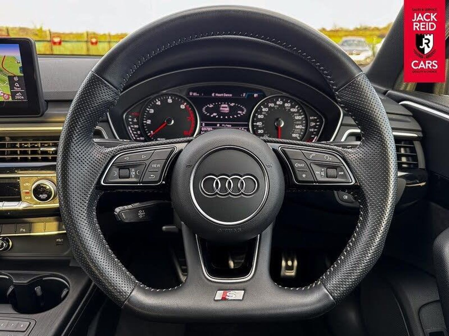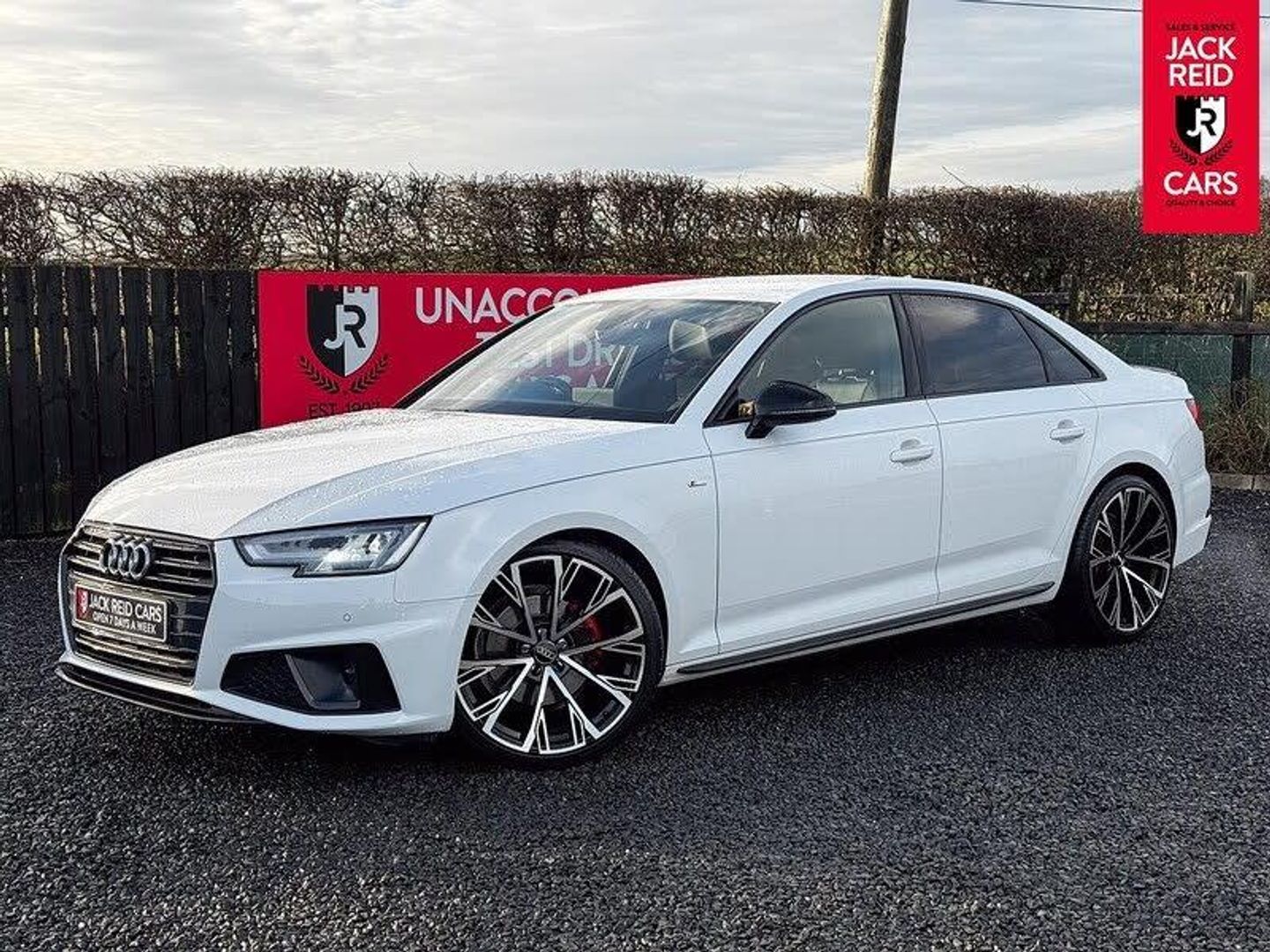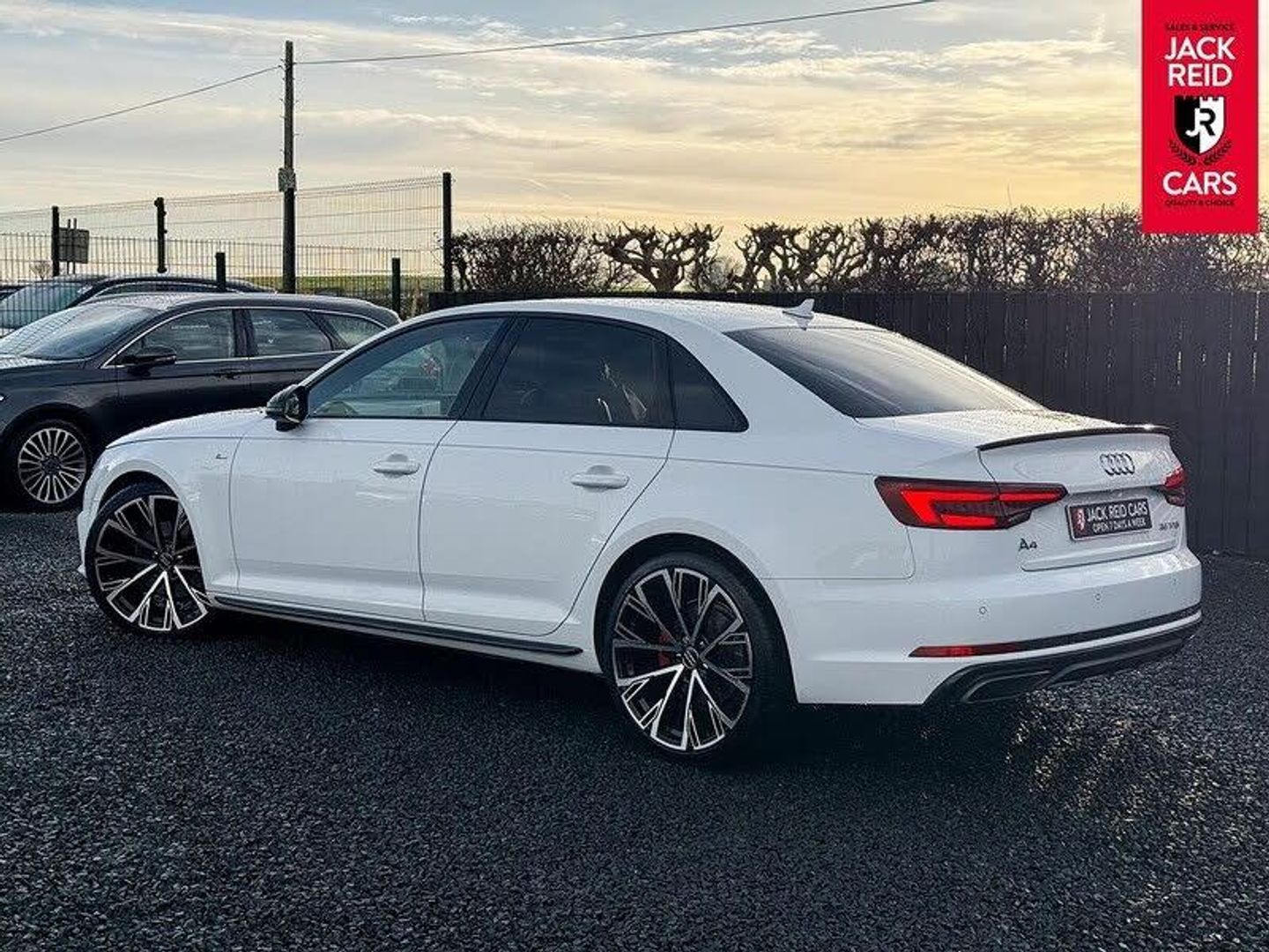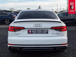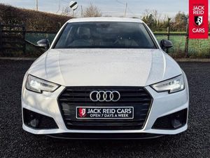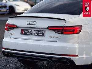 Check out what's all included in this 2019 Audi A4 35 TFSI Black Edition 4dr S Tronic:. S line exterior styling pack.. 7" Colour driver information system.. Audi parking system plus with front and rear sensors.. Audi Pre sense collision avoidance.. Electric boot release.. Sat nav system.. Voice control system.. Multi-function leather steering wheel.. Heated front sports seats.. LED daytime running lights.If you like the look of this car and would like to come for a look or an unaccompanied test drive feel free to call down anytime or get in touch to make an appointment. We are open 7 days a week for your convenience!We have one of the largest numbers of cars for sale in our area with up to 200 cars in stock ready to view! We stock a variety of makes and models such as Audi, BMW, Seat, Range Rover, Mercedes, Jaguar and many more!All our cars come warranted by Jack Reid Cars meaning that we make all our decisions in house unlike unreliable warranty companies with too many terms and conditions.We look forward to hearing from you!This car is shown with an optional new alloy wheel and tyre upgrade or it can be returned to the standard wheels, whichever suits you best. Please contact sales for pricing.