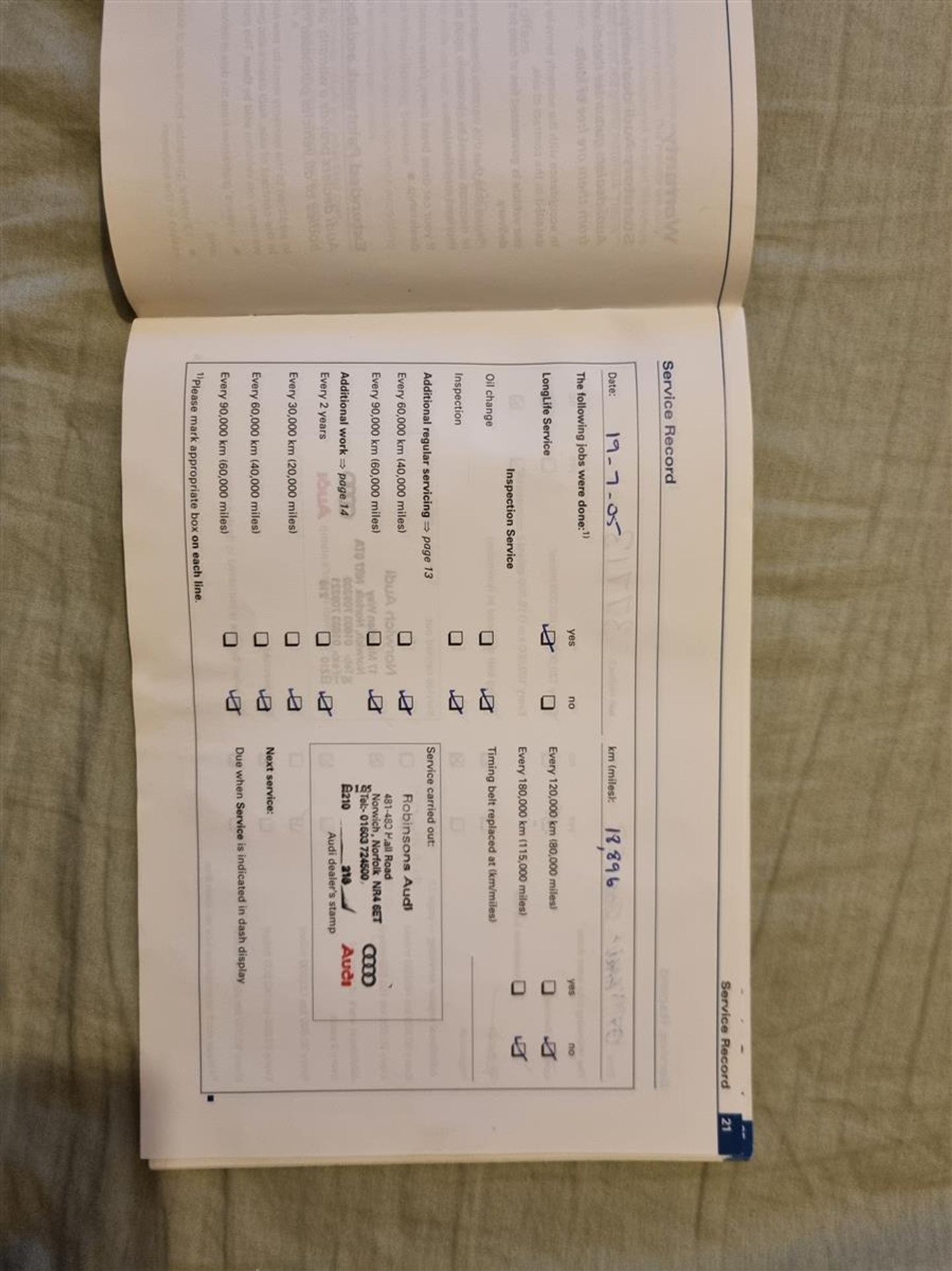 He said the gearbox was serviced I called the garage and they confirmed yes. Including the timing belt.