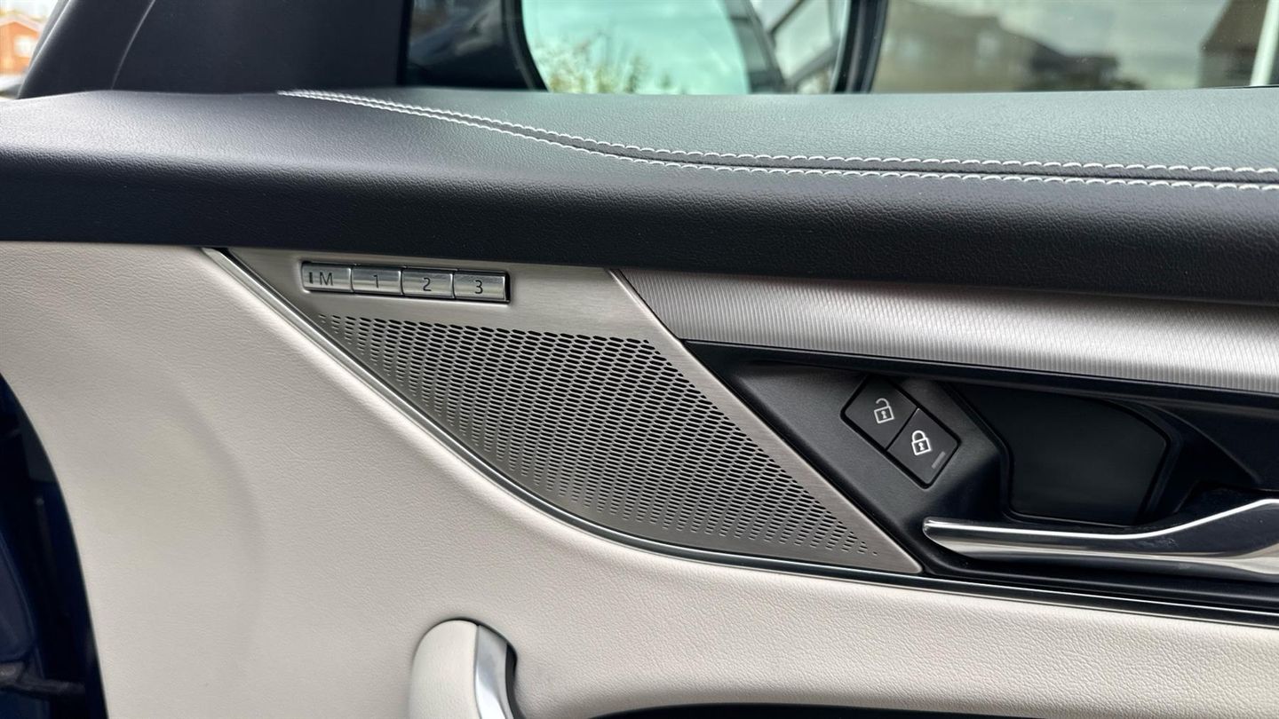 Great looking car, originally supplied by Grange new and always maintained here. Finished in Bluefire Metallic with Interior Ebony Light Oyster Leather, 20 inch 10 Spoke Style 1067 Gloss Black Alloys, Auto High Beam Assist (AHBA), Ebony Morzine headlining, Privacy glass, Powered tailgate bootlid, 16 way electric driver memory front seats with 2 way manual headrests, Fixed Side Steps and apple car play. .