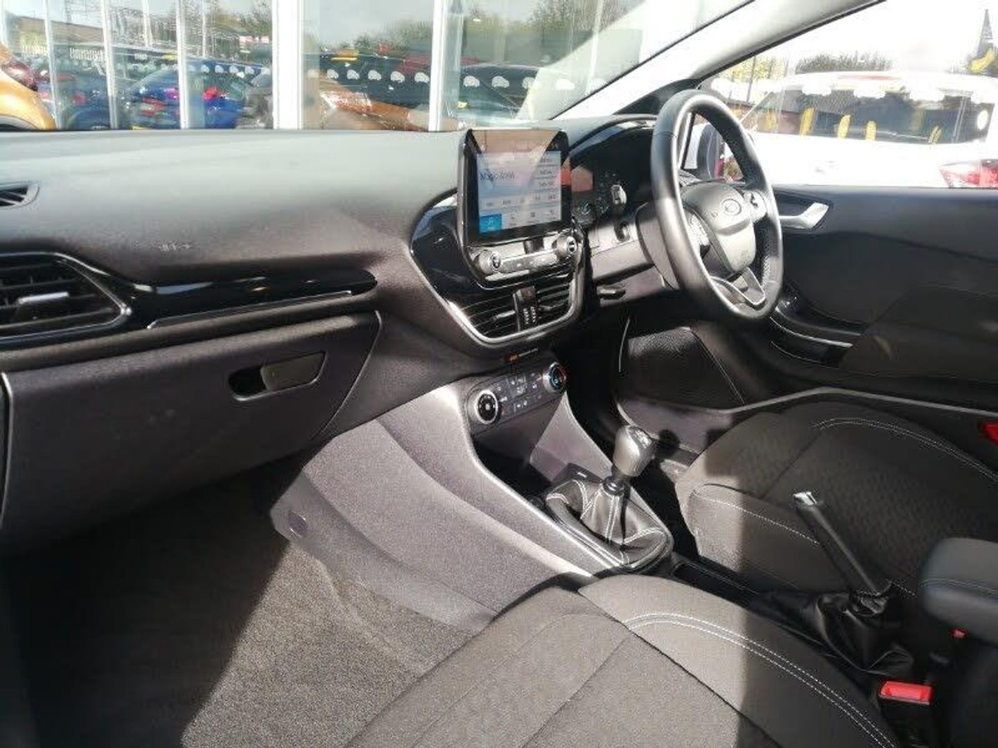 4.2" Colour TFT Ice blue illumination analogue cluster, Ford SYNC 2.5 with DAB radio,8" screen, emergency assistance,Apple car play/Android auto, 2x USB, 6 speakers, Electric power steering, Ford easy fuel, Lane keep assist, Lane keeping aid, Rear parking distance sensors, Selectable drive modes (Normal, Sport, Track), Standard suspension, Auto high beam, Automatic headlights, Quickclear heated windscreen, Sensico wrapped steering wheel, Manual air conditioning, Leather gear knob, Cloth upholstery with metal grey stitching, Electronic stability control with hill start assist, Keyless start with 'Ford Power' starter button, MyKey system, Rear privacy glass, Rain sensing wipers and auto dimming rear view mirror