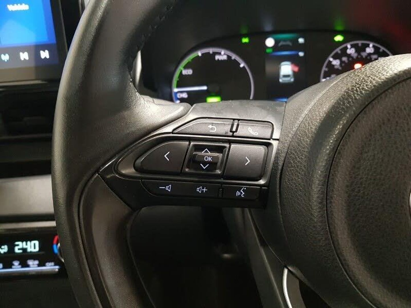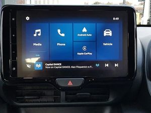 Lane tracing assist includes Lane centering, Lane departure alert, Steering assist and Vehicle sway warning, Analogue instrument cluster with speedometer and hybrid system indicator, Adjustable speed limiter, Drive mode selector (Eco, Normal and Power), Driver attention alert system, Dynamic radar cruise control, E-call with GPS, EV drive mode, Integrated bluetooth, Multi-information display, PAS, Reversing camera, Road sign assist - RSA, Service indicator, Trip computer, Wireless Apple CarPlay and wired Android Auto, 6 speaker audio system and 9" colour screen centre display, Steering wheel mounted audio/bluetooth controls, Automatic high beam - AHB, Coming home function, Halogen headlights with manual headlight levelling, LED daytime running lights, Rain sensing front wipers with adjustable sensitivity and speed, 60/40 split fold down rear seats, Climate control air conditioning, Drivers seat manual slide recline and height adjustment, ISOFIX child seat anchorage points attached on outer rear seats, Leather wrapped steering wheel with telescopic and tilt adjustment, 15" Alloy wheels