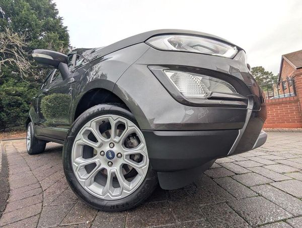 17in Alloy Wheels - 10 Spoke Flash Grey Machined, Adjustable Boot Load Floor, Airbags - Curtain, Airbags - Driver and Front Passenger, Airbags - Drivers Knee, Airbags - Front Passenger De-Activation Switch, Alarm - Thatcham Category 1 with Volume Sensing and Perimeter, Ambient Lighting - Instrument Panel and Footwell, Analogue Instrument Cluster, Anti-Lock Braking System - ABS with Electronic Stability Control - ESC, Automatic Dimming Rear View Mirror, Automatic Headlights, Centre Console Cup Holder with Chrome Accent, Centre Console with Sliding Armrest, Child Locks, Chrome Headlight Bezel, Courtesy Light - Front with Two Map Lights, Courtesy Light - Rear, Cruise Control, Door Frame Beltline - Chrome, Door Handles - Body Colour, Door Mirrors - Power-Foldable Heated with Integrated Side Indicator and Puddle Lights, Driver Seat Manual Height- Fore/Aft and Seatback Angle Adjustment and Recliner, Driver Seat Manual Rotary Knob Lumbar Support Adjustment, Driver and Passengers Sun Visor with Covered Vanity Mirror and Ticket Strip on Drivers Side, Drivers Stowage Glovebox, EPAS - Electric Power Assisted Steering, Electronic Automatic Temperature Control - EATC, Emergency Assistance, Engine Immobiliser, Ford DAB Navigation System with Ford SYNC3, Ford Easy Fuel - Capless Refuelling System, Front 2-Way Head Restraints, Front Fog Lights, Front Grille - Chrome, Front Seat - Passenger Manual - Fore-Aft and Recline Adjustment, Front Seats - 3 Point Seat Belts with Load Limiter and Seatbelt Height Adjust, Front Seats - Seat-Back Map Pockets, Front Suspension - Independent with MacPherson Struts and Anti-Roll Bar, Front and Rear Bumper - Body Colour with Dark Insert, Front and Rear Floor Mats, Front and Rear Folding Grab Handles, Front and Rear Power Points - 12V, Full Length Overhead Console with Sunglasses Holder, Gear Shift Indicator, Gearshift Knob - Black Insert and Chrome-Finish Ring, Glovebox with Cool Bin - Lid and Illumination, Halogen Headlamps with LED Day Running Lights, Halogen Rear Lights, Handbrake Grip - Leather-Trimmed, Headlights - Courtesy Delay, Headlights - Levelling Control, High Mounted Brake Light, IPS - Intelligent Protection System, Keyless Start with Ford Power Start Button, Load Compartment - Lights, Load Compartment Carpet, Load Compartment Side Trim Incorporating Shopping Hooks, Lower Body Side - Door Claddings - Black with Chrome Insert, Manual Parking Brake, MyKey, Power Front and Rear Windows with Global Opening-Closing, Quickclear Heated Front Windscreen with Heated Washer Jets, Rain Sensing Wipers, Rear Seat - Fold and Tumble 60-40 Split - Split Back, Rear Seats - Centre Head Restraint - Up-Down, Rear Seats - Retractable Rear Seat Belt - 3-Point All Positions, Rear Suspension - Semi-Independent Twist Beam with Twin Gas and Oil-Filled Shock Absorbers, Rear View Camera with Rear Parking Sensors, Remote Central Locking, Rocker Panel and Side Cladding - Black, Seat Belt Reminder System - Drivers and Front Passengers, Seats - ISOFIX Mounting Provision for Child Seats - Outer Seats Only, Side Impact Door Beams, Silver Roof Rails, Soft Instrument Panel Cover, Steering Column - Rake and Reach Adjustment, Steering Wheel - Leather-Trimmed with Chrome Inserts, Storage - Front Passenger Underseat Area, Suspension - Front Stabiliser Bar, Tailgate Handle - Chrome, Threshold Plates - Front - Stainless Steel with EcoSport Logo, Tie-Down Hooks, Trip Computer, Tyre Pressure Monitoring System, Tyre Repair Kit, Wiper - Intermittent Rear Wash-Wipe, Groove Fabric and Leather Bolster - Ebony