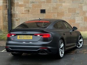 Audi Connect Infotainment Services - 36 Month Trial, Audi Connect Safety and Service, Audi Phone Box with Wireless Charging, Audi Smartphone Interface, Audi Sound System, DAB Digital Radio Reception, MMI Navigation Plus including MMI Touch, Audi Side Assist, RS Audi Drive Select, 20in Alloy Wheels - 5-Arm Peak Design Gloss Milled Aluminium in Anthracite Matt Black, Anti Theft Locking Wheel Bolts, Black Styling Package, Brake Calipers Painted in Black with RS 5 Logo at the Front, Door Handles - Body Coloured, Door Mirrors - Electrically Folding - Adjustable and Heated with Integrated LED Side Indicators and Kerb-view Function for Passenger Side, Electric Windows - Front, Panoramic Glass Sunroof, Privacy Glass with Rear Acoustic Glazing, RS Body Styling, RS Dual-branch Chrome Tailpipes with Large Oval Pipes Each on Left and Right, RS Sports Exhaust System, RS5 Badges on Grille - Front Wing Panels and Rear, Windscreen with Acoustic Glazing, High-Beam Assist, LED Headlights with RS Air Intake, Light and Rain Sensor, Audi Virtual Cockpit, Auto-Dimming Rear-View Mirror, Cloth Headlining in Black, Deluxe 3-Zone Electronic Climate Control, Door Sill Trims - Illuminated with RS5 Logo, Electrically Adjustable Front Seats, Flat-Bottomed High Multi-function 3-Spoke Leather Sport Steering Wheel with RS Badging, Front and Rear Floor Mats, Front Centre Armrest, Inlays - Piano Finish - Black, Leather Door Armrests and Knee Pad, LED Interior Light Package, Pedals in Stainless Steel, Pneumatic Massage Function, RS-Specific Gear Lever Knob in Perforated Leather with Contrast Stitching, Split-Folding 3-Seater Rear Seat Bench in 3 Parts - 40-20-40, Tool Kit, Electromechanical Power Steering, quattro with Sports Differential, RS Model Enhanced Braking System, RS Sports Suspension, 6-Airbag System, ABS - Anti-Lock Braking System, Anti-Theft Alarm, First Aid Kit and Warning Triangle, Hill Hold Assist, Multi Collision Brake Assist, Pop-Up Bonnet for Pedestrian Protection, Pre-Sense City, Remote Control Key with RS Emblem, Seat Belt Monitoring
