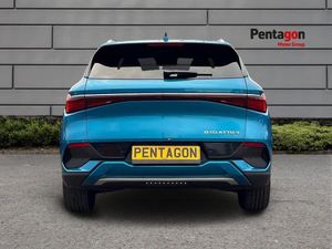 11kW On-board Charger - OBC 12V Power Output 15.6in Electrically Rotatable Touchscreen 18in Alloy Wheels 2x Front USB Port - 1x 18W Type C and 1x 60W Type C 2x Rear USB Port - 1x 18W Type C and 1x 60W Type C 2x Smart Key and 1x NFC Key Card 360 Degree View Camera 4x Rear Parking Radar 5in TFT Full LCD Instrument Panel 60-40 Split-Folding Rear Seats 8 Speaker Audio System Adaptive Cruise Control - ACC and Intelligent Cruise Control - ICC All Weather Mat Aluminium Roof Rack Anti-lock Brake System - ABS Apple Carplay - Android Auto Auto-dimming Rear View Mirror Automatic Emergency Braking - AEB Automatic Vehicle Hold - AVH Belt with Pretensioner and Force Limiter Blind Spot Detection - BSD Boot Parcel Shelf Centre Console Light Cloud Service - BYD App Comfort Stop - CST DAB Radio and FM Radio Door Opening Warning - DOW Driver Seat with 6-Way Electric Adjustment Driver Seat with Integrated Headrest Driver and Front Passenger Footlights Driver and Front Passenger Sun Visors with Illuminated Vanity Mirror Drivers Airbag Driving Modes - Eco - Normal - Sport Electric Parking Brake System - EPB Electric Tailgate Electrically Adjustable - Folding and Heated Rear-View Mirrors Electronic Brake Distribution - EBD Electronic Stability Program - ESP Emergency Call Emergency Lane Keep - ELK Follow Me Home Headlights Footlights for Exterior Rear View Mirrors Forward Collision Warning - FCW Front Centre Airbag Front Centre Armrest with Dual Cupholder Front LED Door Lights Front LED Reading Lights Front Passenger Seat with 4-Way Electric Adjustment Front Passenger Seat with Intergrated Headrest Front Passengers Airbag with Deactivation Switch Front Side Air Curtain Front Side Airbags Front and Rear - Parking Radars Glove Box Light Heat Pump Heated Front Seats High Beam Assist - HMA Hill Decent Control - HDC ISOFIX and i-Size - Front Passenger and Outer Rear Seats Integrated Park Brake - IPB Intelligent Speed Limit Information - ISLI and Intelligent Speed Limit Control - ISLC Keyless Entry and Keyless Start LED Daytime Running Lights LED Headlights - Automatic On - Off LED Taillights Lane Change Assist - LCA Lane Keep Assistance - LKA Mechanical Child Safety Lock Mode 2 Charging Cable - UK 3 Pin Mode 3 Type 2 Charging Cable - 3-phase Navigation Onboard 4G Connectivity One-Touch Electric Front and Rear Windows with Pinch Protection Panoramic Sunroof - Anti Pinch - Electrically Adjustable Sunshade Rain-Sensing Windscreen Wipers Rear Air Vents Rear Armrest - 2 Cupholders Rear Collision Warning - RCW Rear Cross Traffic Alert - RCTA and Rear Cross Traffic Brake - RCTB Rear Seats Centre Headrest Rear Side LED Reading Lights Rear Trunk Mat Rear Windows and Rear Windscreen - Privacy Glass Reflective Vest Rhythm-reactive Multi-colour Ambient Lighting - Door Panel and Pad Rhythm-reactive Multi-colour Ambient Lighting - Doorknob Roofliner - Fabric Smartphone Wireless Charging -15W Towing Hook Traction Control System - TCS Traffic Sign Recognition - TSR Tyre Pressure Monitoring System - TPMS Tyre Repair Kit Vegan Leather - Multifunction - Heated Steering Wheel Vehicle To Load Function - V2L Velour Floor Mat Ventilated Front Seats Voice Control VtoL Power Strip - UK 3 Pin Warning Triangle