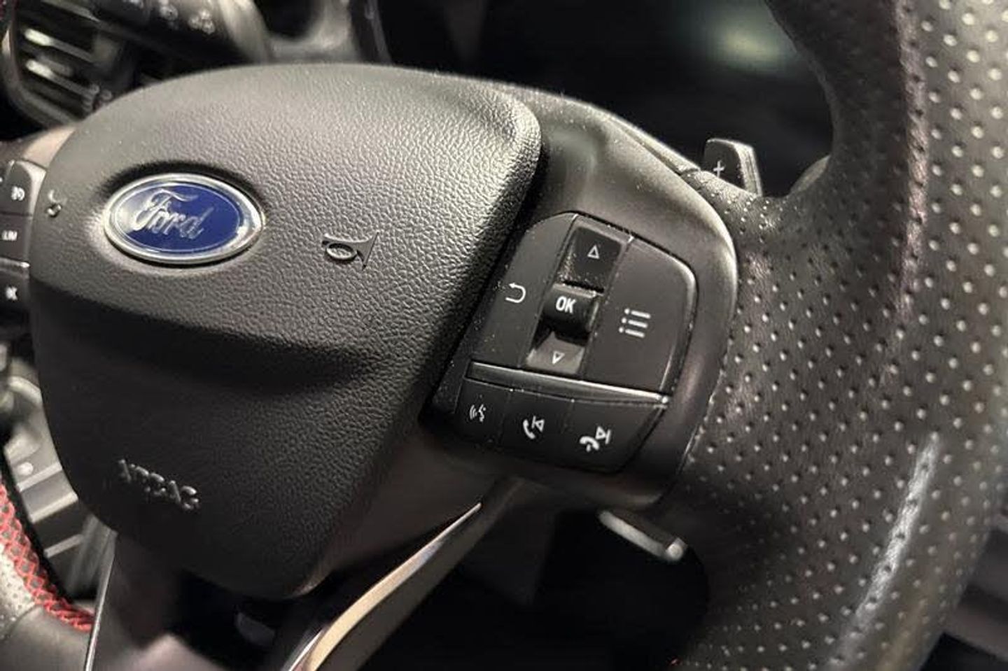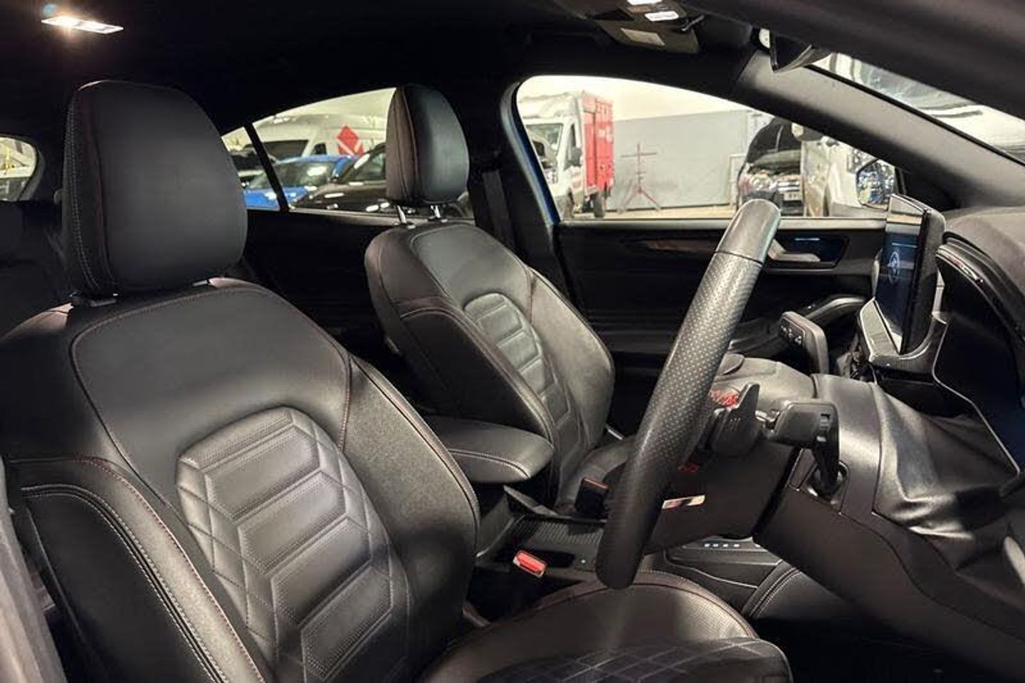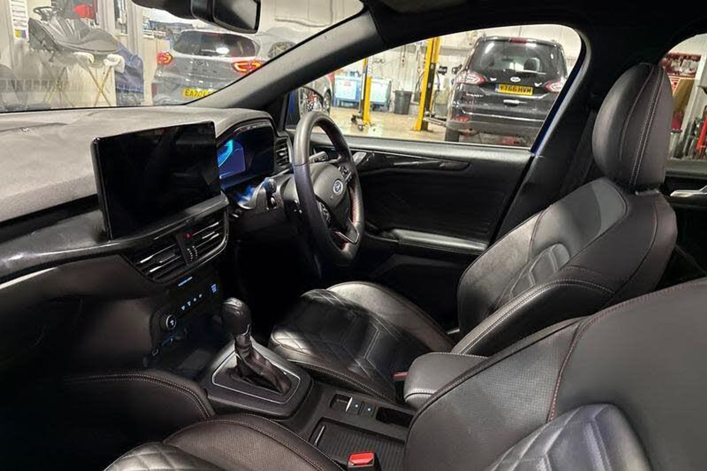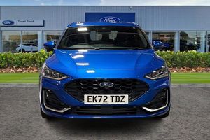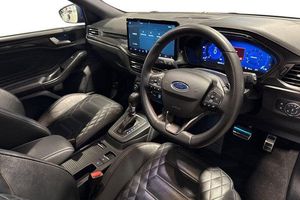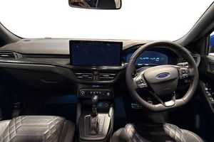 12.3 Digital instrument cluster, Bluetooth system, Digital clock, Easy fuel capless refuelling system, Eco mode, Ford SYNC4 Nav with 13.2'' touchscreen, DAB, Emergency Assistance, Apple Carplay & Android Auto, B&O Premium Audio with 10 speakers, FordPass Connect, Lane keeping system - lane keeping alert and lane keeping aid, PAS, Rev counter, Selectable drive mode, Service interval indicator, Trip computer, Wireless charging pad, Auto headlamps (on/off), Body coloured door handles, Electrically operated front and rear windows with one touch opening and closing, Electrically operated heated power fold door mirrors with puddle lamp with side indicators, Front variable intermittent wipers with electric wash, Heated rear window, LED daytime running lamp, LED rear lamps, LED third brake light, Polished twin tailpipe, Privacy glass, Quickclear heated windscreen, Rain sensor, Rear side wing doors, Tailgate wash/wipe, Unique ST-Line grille, full bodystyling kit, and large body coloured rear spoiler, 3 rear headrests, 3 seat bench in 2nd row, Dual zone electronic air temperature control, Full sensico premium upholstery, Height adjustable front headrests, Isofix child seat preparation, Load through ski hatch, Manual 2-way passenger seat adjust, Power 4-way driver seat adjust, with power lumbar adjust, Reach + rake adjustable steering column, Single front passenger seat, 3x3 point rear seatbelts, ABS+Electronic Brake force Distribution, Auto hold function, Driver airbag, EDL traction control, Electronic parking brake, Electronic stability control, Front and rear seatbelt reminder, Front inertia reel height adjustable seatbelts with pre-tensioners, Front passenger airbag, Front side airbags, Passenger airbag deactivate switch, Post collision braking, Pre collision assist with autonomous emergency braking and pedestrian/cyclist detection, Red brake calipers, Remote/power child rear door locks, Side curtain airbags, Three rear inertia reel lap/diagonal seatbelts, Tyre pressure monitoring system