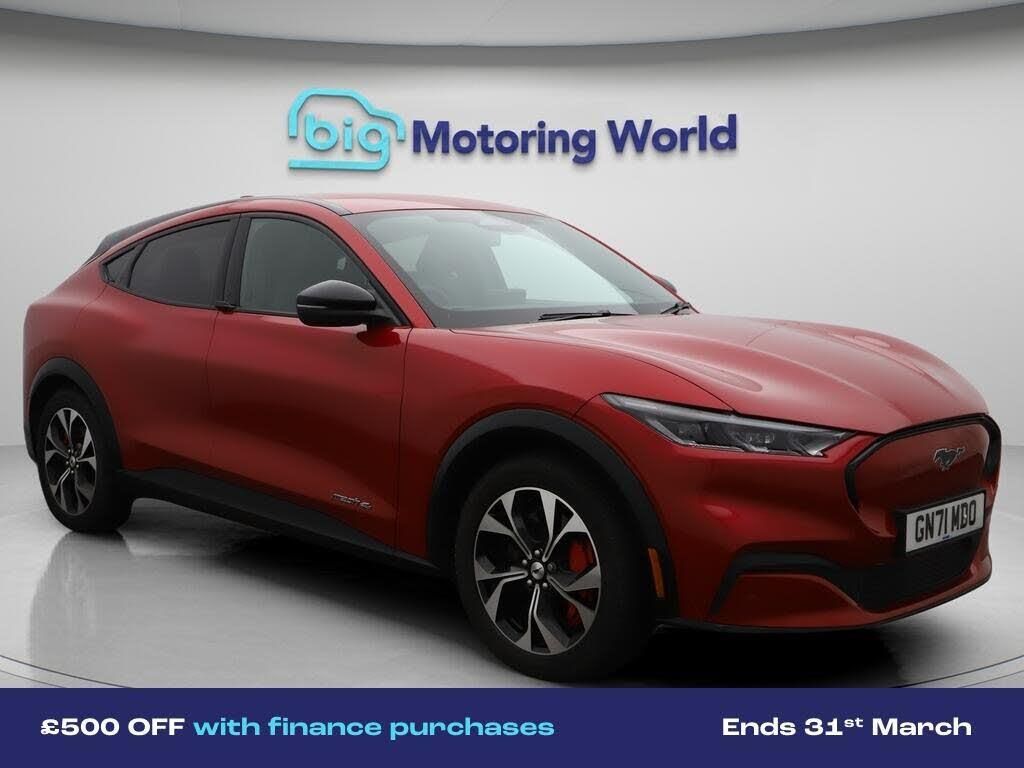 All Wheel Drive,19'' Alloy whee-Our Ford Mustang Mach-E comes with optional extras worth £1,150. Specification includes a range of fantastic features including All Wheel Drive, 19'' Alloy wheels, Leather Seats, Apple CarPlay, Adaptive Cruise Control, Bang & Olufsen Speakers, Android Auto, Satellite Navigation, Privacy Glass, Heated Windscreen Specification information is supplied by CAPHPI and may vary to the actual car. This data does not form any part of a buying contact. Please check specification prior to purchase in-store. The MOT is valid until October 2026, visit bigmotoringworld.co.uk for more photos, a 360 tour, service history and a free HPI report.Were BIG on peace of mind and this Red Ford Mustang Mach-E has completed our comprehensive 200 point inspection and passed all checks. Its ready for you to drive away with immediate collection in-store. We include a 90-day warranty as standard plus an option to extend for up to 3 years.Reserve this car exclusively for you, safely and securely at bigmotoringworld.co.uk, with a fully refundable £99 deposit. Test drive before you buy, with no commitment, no hassle and a completely haggle free experience. Still searching and want to see thousands more cars? We are BIG on choice with over 8000 cars to choose from.Visit our award winning web site bigmotoringworld.co.uk.Were Big Motoring World and were BIG on what matters to you.