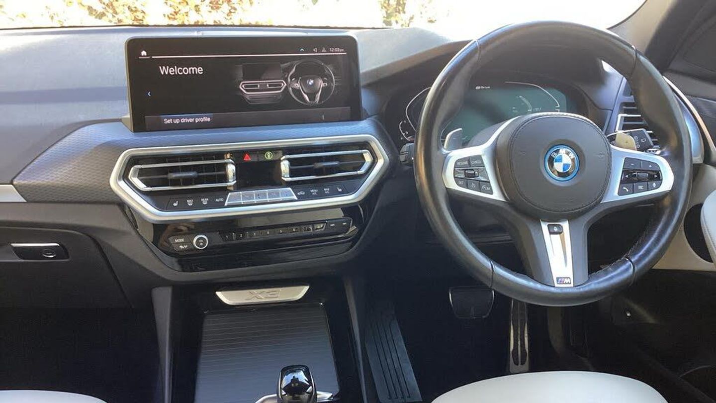 This 2022 BMW X3 30e M Sport is a superb example, having had only one owner since new. This four wheel drive model boasts a 2.0 litre petrol plug in hybrid engine, meeting Euro 6 emissions standards. It comes equipped with the desirable Comfort Pack, which includes keyless entry and a heated steering wheel for added convenience. The M Sport trim further enhances its appeal, and you'll appreciate the advanced Parking Assistant, featuring front and rear sensors along with a rear camera to make manoeuvring effortless. Adaptive LED headlights provide excellent visibility, while the automatic three zone air conditioning ensures a comfortable cabin environment for all occupants.Experience the impressive performance of this X3, with its ability to accelerate from 0 to 62 miles per hour in just 6.1 seconds. This swift acceleration, combined with its plug in hybrid technology, offers a compelling blend of power and efficiency that sets it apart from many other vehicles. The inclusion of a heated steering wheel, part of both the Comfort Pack and a standalone feature, is a welcome touch for those colder journeys, demonstrating a thoughtful approach to driver comfort.-M SPORT CAMERA EURO 6 SAT NAV-BMW X3 xDrive 30e M Sport 5dr Auto-***** 11.9% APR AVAILABLE ON ALL OUR USED CARS ***** DELIVERY AVAILABLE ****