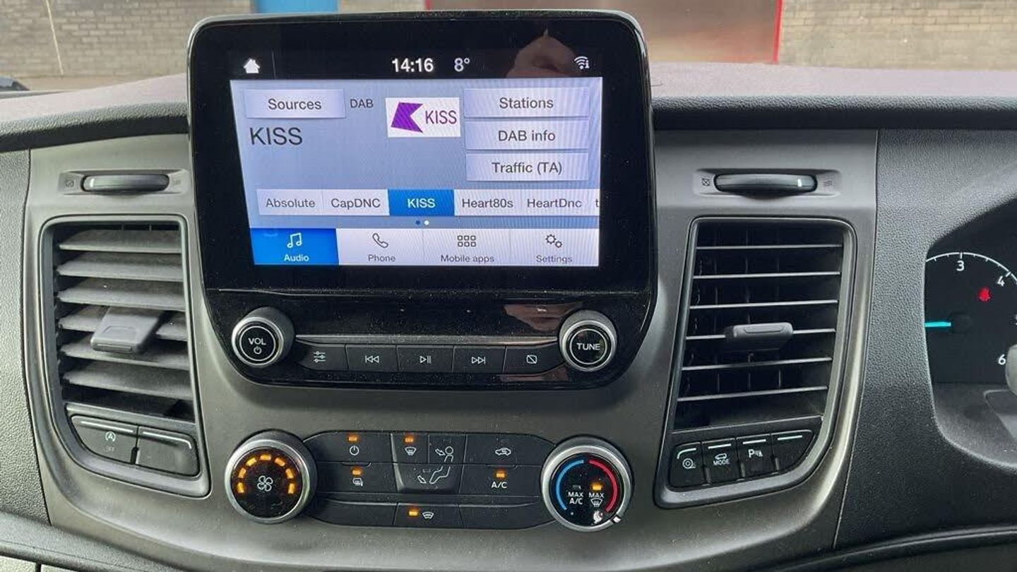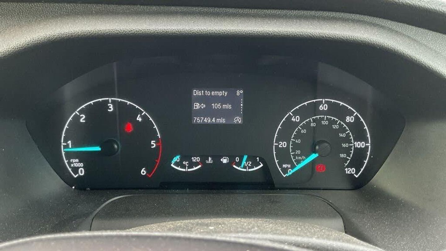 Tyre Pressure Monitoring System - TPMS, Touchscreen Control, Side Park Assist, Enhanced Electronic Interface Pack, Manual Air Conditioning, 15in Steel Wheels, 2nd Remote Key, Airbags - Driver, Alternator - Standard Duty 165Amp, Anti-Lock Braking System - ABS with Electronic Brake Force Distribution - EBD, Assist Handle - Located on B-pillar, Auto Lights and Wipers, Auxiliary Connection Point - 1x12V - 60A Connection Located Under Driver Seat Pedestal, Battery - Cold Start -20 Degree C, Battery - Single Improved Flood - IF, Bluetooth, Bodyside Mouldings - Wide - Self Colour, Bottle Holder - Twin 2 litre Bottle Capacity - Facia-Mounted, Bulkhead - Full Steel, Complete Rear Sidewall Trim - Half Height Board with Wheelarch Covers, Courtesy Light - Footwell Illumination - Side Load Door Only, Courtesy Lights - Header-Mounted - Front Maps Lights, Cruise Control with Adjustable Speed Limiter, Curve Control, Daytime Running Lamps, Door Handles - Self Coloured, Door Mirrors - Blind Spot Eliminator and Integrated Side Indicator, Doors - Unglazed Rear, Doors - Unglazed Rear Doors - Hinged for 180 Degree Opening - Positive Stop At 90 Degree, Dual-Circuit Front and Rear Discs with Self-Adjusting Servo-Assistance and ABS, EBA - Emergency Brake Assist, ESC - Electronic Stability Control, Easy Clean Floor - Cab, Easy Clean Load Floor, Electric Windows - Front, Emergency Brake Warning, Fold Out Front Passenger Seat Table, Ford Easy-Fuel Capless Refuelling System, Ford Eco Mode - Driver Information System, Ford SYNC 8in Touch Screen with Emergency Assistance, Front - Independent MacPherson Struts - Coil Springs - Stabiliser Bar and Gas-Pressurised Shock Absorbers - Rear - Leaf Springs and Gas-Pressurised Shock Absorbers, Front Bumper - Self Colour, Front Fog Lights, Front Grille - Titanium Effect, Gearshift Indicator Light, Glovebox - with Lockable Lid and A4 File Storage Capability, Headlights - Projector Style Halogen Reflector Lights with Chrome Background and Static Cornering Lights, Headlights Courtesy Delay - 30 Seconds Duration, Headlining - Cab - Moulded, Heated Front Windscreen, Heater - Positive Thermal Coefficient - PTC, Heavy Duty Alternator, Hill Start Assist, ICE Pack 21, Immobiliser - Safeguard Passive Anti-Theft System - PATS - Insurance-Approved Category 2 Immobiliser, LAC - Load Adaptive Control, Less Steel Spare Wheel, Liftgate - Cargo Door Handle - Self Colour, Load Compartment - DIN 75410 Compliant Tie-down Loops, Loadspace Compartment Light, Locks - Audio Mislock Feedback - Audible Signal if a Door is Ajar When Locking Activated, Locks - Auto Locking on Drive-Away - Doors Automatically Lock at 8 kmh or 5 mph, Locks - Auto Relocking - Doors Relock after 45 Seconds if no Door is Opened, Locks - Configurable Unlocking, Locks - Key Operated Bonnet Release, Locks - Power Door Deadlocks - Shielded with Strengthened Mountings, Mudflaps - Rear, Parking Aid - Front and Rear with Front Fog Lamps, Passenger Side Sliding Load Door - Solid, Power Assisted Steering, Power Fold Door Mirrors - Heated, Power Point Socket - 2x 12V, RSC - Roll Stability Control, Radio with Remote Stalks, Rear Bumper - Self Colour with Integrated Step, Remote Central Door Locking with Deadlocks, Remote Central Locking with Two Key Fobs, Seatbelts - 3 Point Diagonal Inertia Reel - All Seats, Seats - Drivers 4-Way Adjustment with Armrest, Seats - Dual Passenger, Selectable Drive Mode, Shoulder Height Cargo Area Trim Boards, Side Wind Mitigation, Steering Column - Rake and Reach Adjustment, Steering Wheel - 4 Spoke Leather Trimmed, Storage - Drivers Side - Storage Compartment on Facia Top with Lift Up Lid, Storage - Front Door Map Pockets, Storage - Underseat Stowage Compartment Under Dual Passenger Seat, Trip Computer, Tyre Inflator Kit, Vehicle Identification Number - VIN - Visible, Vehicle Maintenance Monitor, Water in Fuel Filter with Sensor, Wheel Covers - Full, Wipers - Front Variable-Intermittent with Electric Wash