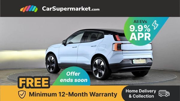 Cruise Control, Adaptive Cruise Control, Blind Spot Monitoring, Bluetooth, Sat Nav, Apple CarPlay, Wireless Phone Charging, Digital Radio, Heated Front Seats, Heated Steering Wheel, 20" Alloy Wheels;This 2024 Volvo EX30 Ultra is a superb example with exceptionally low mileage for its age, having covered just 6647 miles. This electric model boasts a 69 kWh battery, providing a maximum range of 294 miles when new. Inside, you'll find a comfortable and convenient cabin featuring heated front seats, a heated steering wheel, and a Bluetooth handsfree system for seamless connectivity on the go. The EX30 Ultra is designed for an effortless driving experience, enhanced by Adaptive Cruise Control and Pilot Assist, which work together to make journeys smoother.