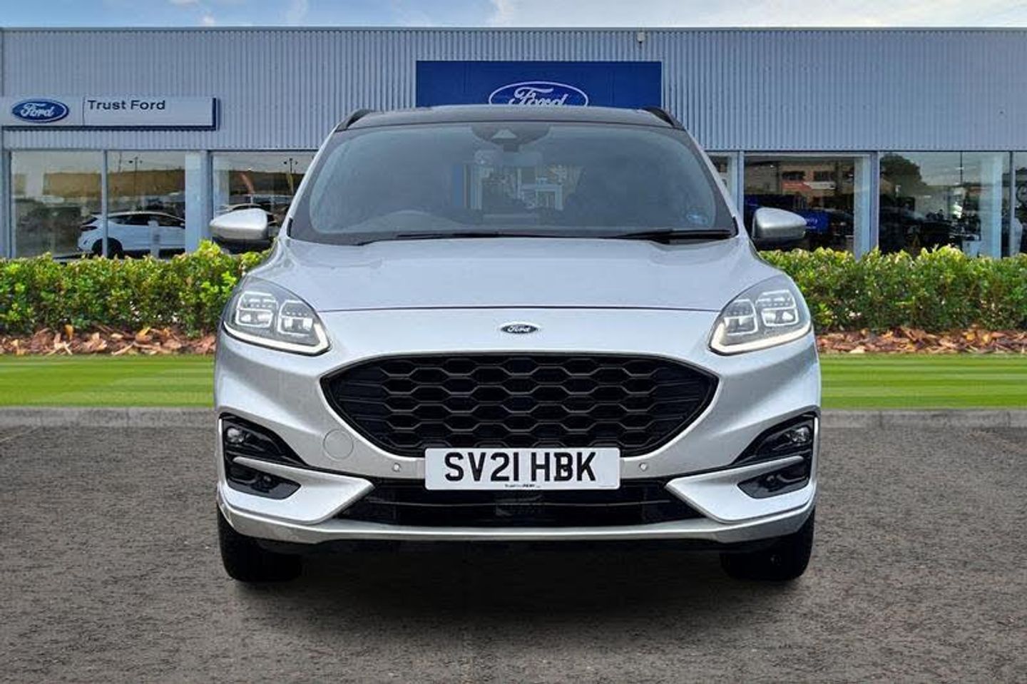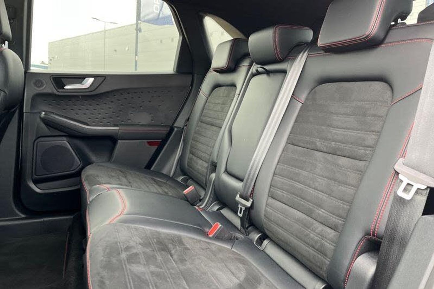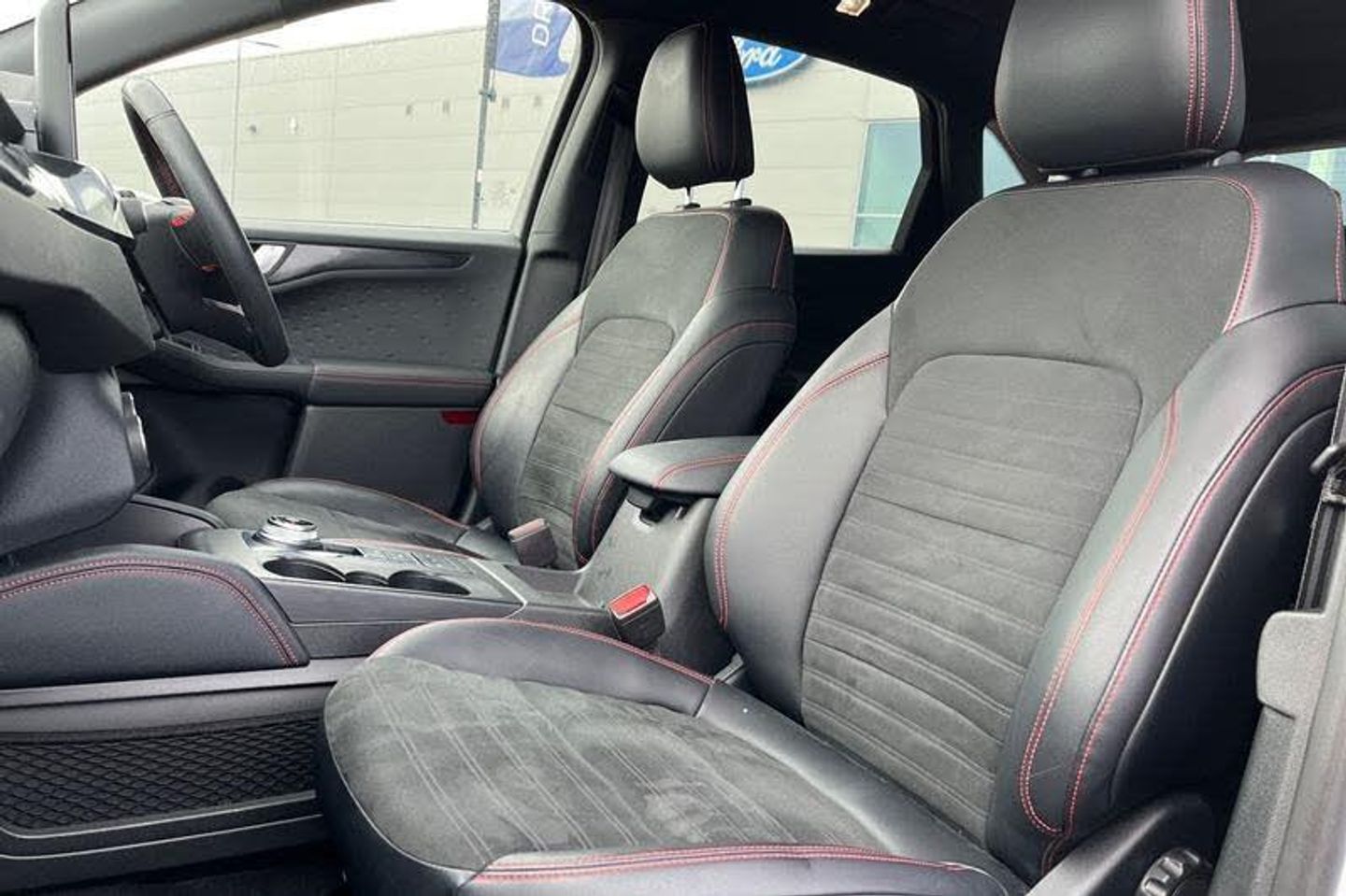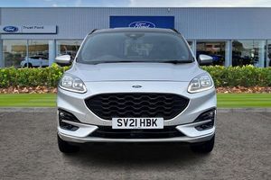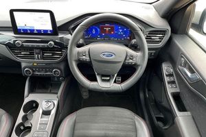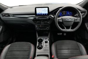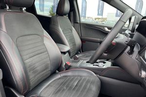 Driver impairment monitor, Ford easy fuel, Ford SYNC 3 with 8 colour touchscreen, App Link, andriod auto/apple carPlay and navigation with Ford pass connect, Front and rear parking sensors, Hands free power tailgate, Intelligent speed assist, Lane keeping aid with lane departure warning, Mobile phone wireless charging pad, Power assist steering, Selectable drive modes, Auto dimming rear view mirror, Auto headlamps with high and low beam, Auto wipers, Black roof rails, Front LED fog lights with cornering function, Full LED headlamps, Large rear spoiler, LED daytime running lights, LED rear lights, Power folding heated door mirrors with puddle lights, Power front/rear windows with global close, Power opening panoramic roof, Privacy glass, Quickclear heated windscreen, ST Line body styling kit with unique front and rear fascia and bumper, rear painted diffuser, front painted skid plates, dark mesh upper grille, ST Line front scuff plates, Twin exhausts, 10 way power adjustable drivers seat, 2nd row sliding seats, 8 way manual passenger seat including lumbar support and height adjust, Alloy pedals, Ambient lighting, Centre console with electronic parking brake, Dark headlining and pillars, Dual electronic automatic temperature control, Flat bottomed leather steering wheel in sensico with red stitching, Front and rear head restraints, Heated passenger and driver seats, Rear charging point, Sensico partial premium leather upholstery, Sports seats, ST Line front and rear floor mats, 3x3 point rear seatbelts, Airbags - front driver/passenger, front and rear curtain, Drivers knee airbag, Electronic stability control (ESC) and ABS, Ford MyKey Gen 2 safety system, Post collision braking, Powered child proof rear door locks, Pre collision assist with autonomous emergency braking, Red brake calipers, Tyre pressure monitoring system