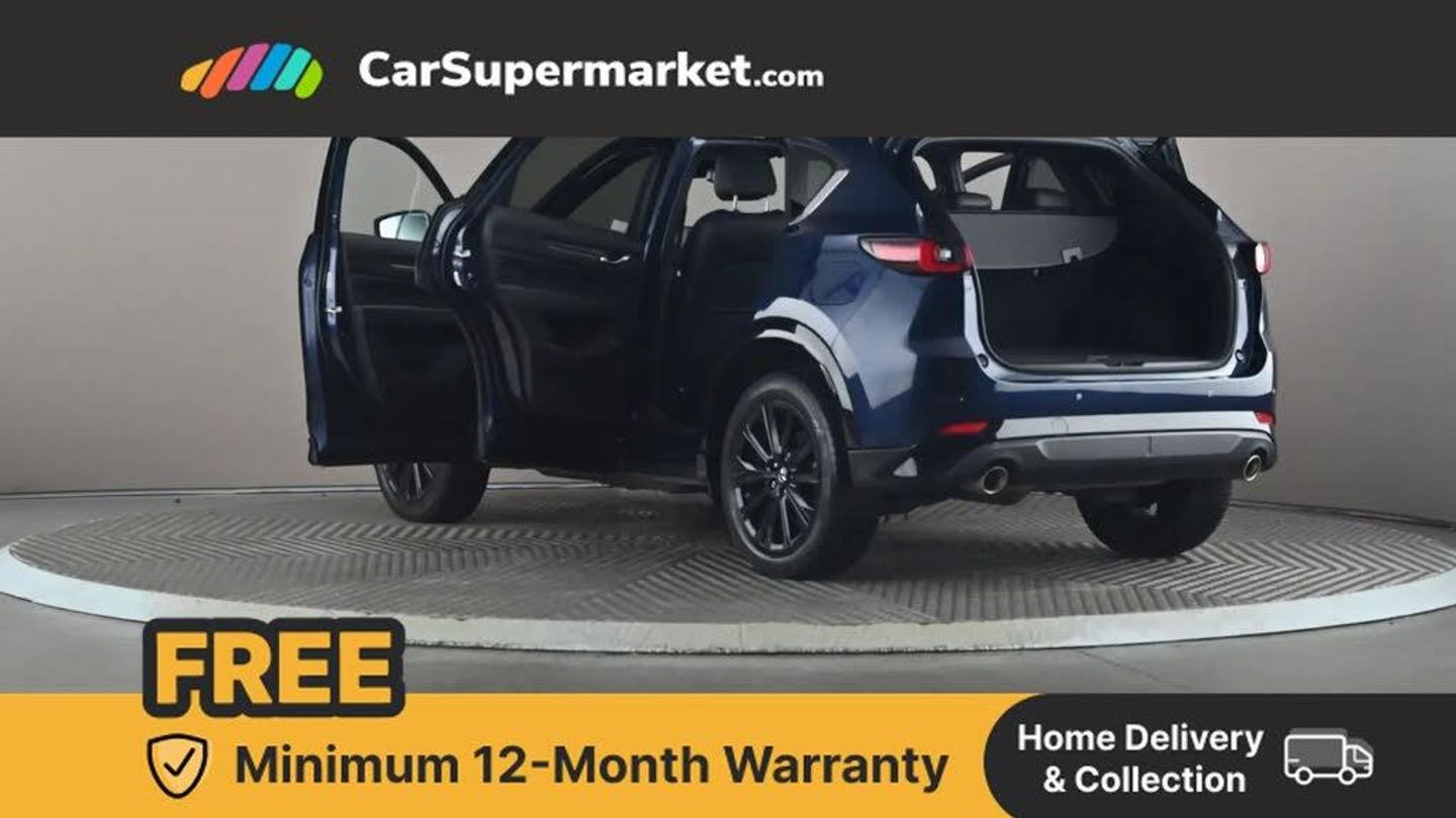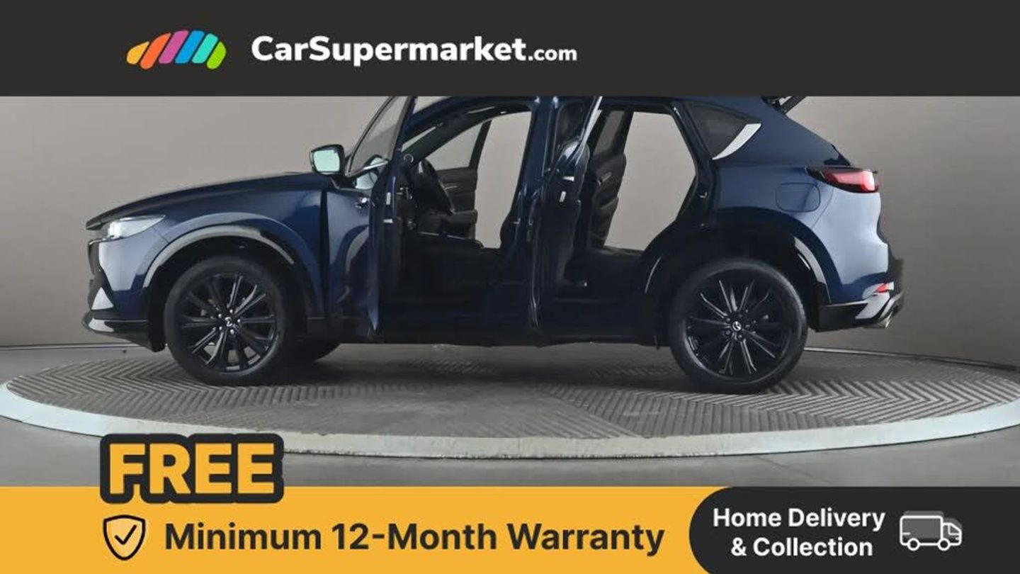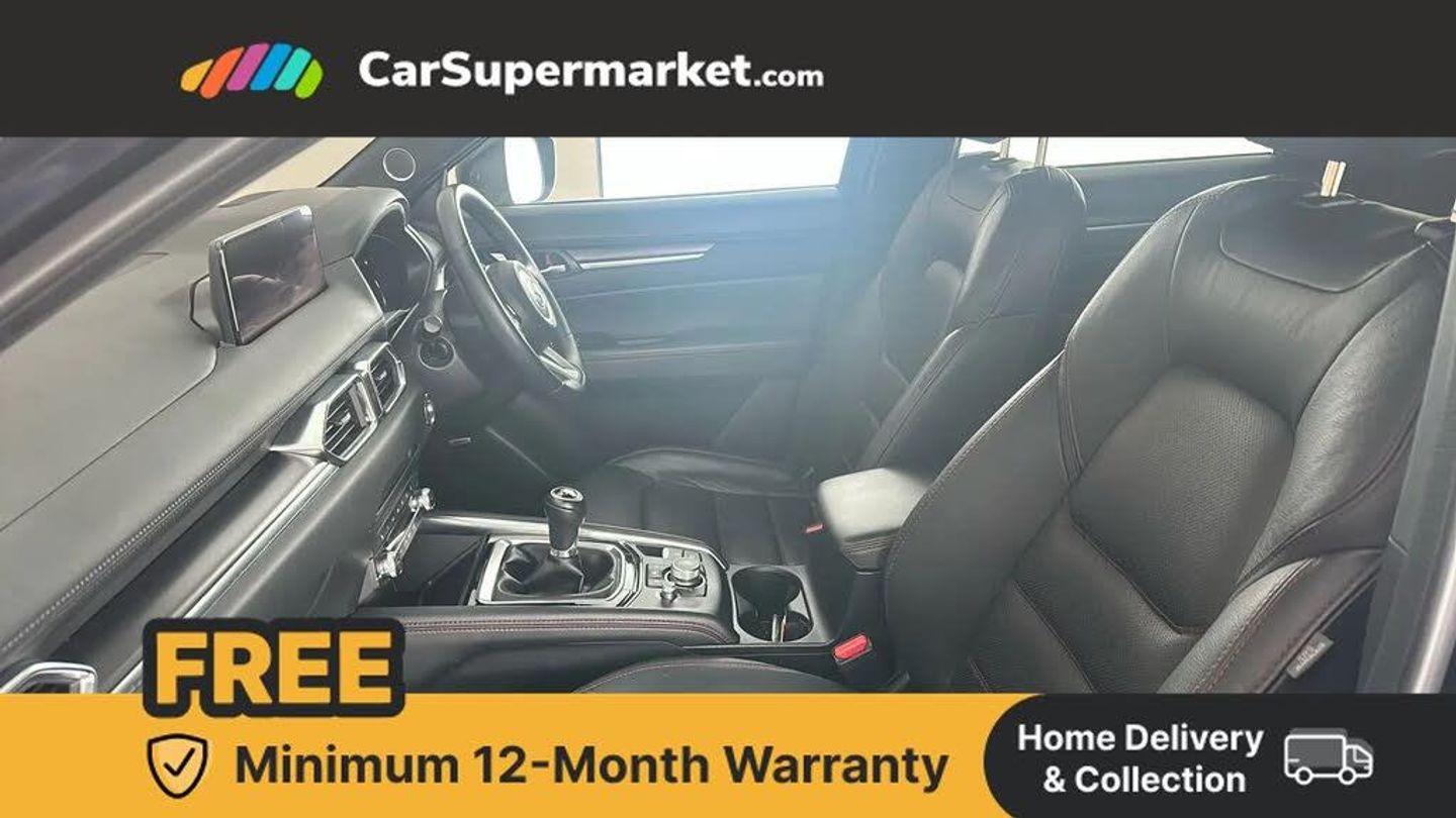 10.25" display with Mazda Connect infotainment,7" colour TFT display,Advanced blind spot monitoring,Bluetooth connectivity with voice control,Collision prevention assist,Connected services,Cruising Traffic Support,Electric power steering,Emergency stop signalling system,Engine start/stop button,Forward collision warning,Front and rear parking sensors,Integrated navigation system,Intelligent speed assist,Lane departure warning system,Lane keep assist,Power liftgate,Qi wireless phone charging,Radar cruise control,Rear cross traffic alert,Reversing camera,Service indicator,Traffic sign recognition (TSR),Trip computer,Windscreen projected colour active driving display (HUD) with memory,Wireless apple car play/android Auto,Cylinder Deactivation,i-stop,AM/FM radio,Bluetooth audio streaming,Bose premium sound system with 10 speakers,DAB Digital radio,Multimedia Commander including separate volume dial,Steering wheel mounted audio controls,Adaptive front lighting system,Auto dimming rear view mirror,Automatic headlights,Black honeycomb door trim decoration panel,Black honeycomb interior decoration panel,Body colour roof spoiler,Coming/leaving home lighting function,Door mirror integrated indicators,Dual large chrome tailpipes,Dusk sensitive headlamps,Electric front/rear windows with one touch auto up/down,Front grille in gloss black finish,Front grille in gloss black with red accent + gloss black signature wing,Gloss black B and C pillars garnish,Gloss black door mirrors,Gloss black front and rear lower bumper mouldings,Gloss black tire arch and side mouldings,High beam assist,Intermittent rear wash/wipe,LED auto levelling,LED daytime running lights,LED front fog lights,LED Headlights,LED third brake light,Power folding and heated door mirrors,Power tilt/slide sunroof,Privacy glass (rear side windows only),Rain sensing front wipers,Rear side wing doors,Red front grille accent,Red stitching and accents on door trim, knee pad, console lid, steering wheel, shift boots,Scuff plates,Shark fin antenna,Signature LED rear combination lights,Variable intermittent front wash/wipe,Windscreen wiper de-icer,12v electrical power outlet,3 seat bench in 2nd row,3 stage heated front seats,40:20:40 Karakuri fold-flat seat system,6 way electric adjustable passenger seat,8 way electric driver seat with lumbar support + memory,Black roof lining,Cargo room flat floor board with waterproof undertray,Driver seat power slide, recline and height adjustment,Driver, Front passenger and two rear grab handles with coat hooks,Driver/passenger front seatback pockets,Driver/passenger sunvisors + illuminated vanity mirrors (drivers with ticket holder),Dual zone climate control,Folding centre armrest with 2 cup holders,Front and rear door pockets,Front centre storage with two cupholders,Front passenger seat power slide, recline and height adjustment,Gear shift indicator,Heated steering wheel,Humidity sensor,Illuminated glovebox,Interior dome light with integral spotlight,ISOFIX child seat anchorage points attached on outer rear seats,Karakuri tonneau cover,Leather upholstery,Leather wrapped steering wheel and gear knob,Luggage compartment LED lighting,Luggage compartment power outlet,Rear air vents,Rear headrests,Rear seat recline,Roof mounted sunglasses holder,Single front passenger seat,Three height adjustable head restraints,Tilt/height adjustable steering wheel,USB Connectivity (2x front Type-C, 2x rear Type-B),White interior LED illumination lighting,3 point front seatbelts with pre-tensioners,3 rear 3 point seatbelts,ABS,Advanced Smart City Brake Support - SCBS,Child locks on rear doors,Driver and front passenger side airbags,DSTC-Dynamic Stability and Traction Control,Dual front airbags,Electronic brake force distribution,Electronic parking brake with auto hold,ESP,Front and rear curtain airbags,Front passenger airbag deactivation,G-Vectoring control,Hill hold assist,Seatbelt reminder front and rear,Single stage passenger airbags,Smart brake support with forward obstruction warning,Tyre pressure monitoring system,Automatic door locking when moving off,Deadlock,Immobiliser,Power door locks,Remote central locking,Smart keyless entry,Thatcham Cat.1 alarm,19" Black alloy wheels,Tyre repair kit