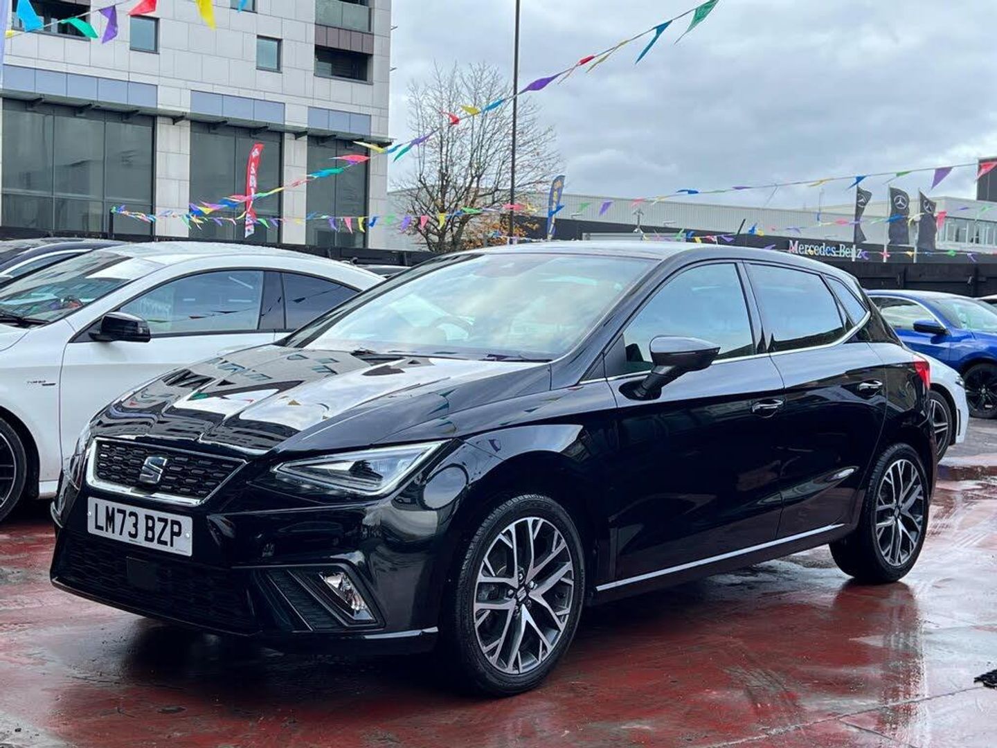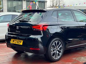 SELECT MOTORS (GB) IS PLEASE TO OFFER YOU THIS STUNNING SEAT IBIZA 1.0 TSI XCELLENCE 5DR IN BLACK COLOUR AND COMPLEMENTED WITH 17IN DYNAMIC MACHINED IN NUCLEAR GREY COLOUR ALLOY WHEELS. THIS VEHICLE HAS A HUGE SPECIFICATION WHICH INCLUDES THE FOLLOWING; SATELLITE NAVIGATION SYSTEM, WIRELESS CARPLAY FOR IPHONE AND ANDROID AUTOS, REAR PARKING SENSORS, BLUETOOTH CONNECTIVITY FOR PHONE AND MEDIA, DAB-FM/AM RADIO, SEAT VIRTUAL COCKPIT SCREEN, 9.2in NAVIGATION SCREEN, GEAR SHIFT PADDLES, DUAL ZONE AIR CONDITIONING, ELECTRIC ADJUSTABLE AND FOLDING DOOR MIRRORS, CRUISE CONTROL, AUTO HEADLIGHTS WITH LED DAYTIME RUNNING LIGHTS, USB MEDIA CABLE, FM/AM RADIO, TYRE PRESSURE WARNING SYSTEM. THIS VEHICLE IS ULEZ EXEMPT. WE ARE OFFERING NATIONWIDE DELIVERY ON ALL VEHICLE (PLEASE GET IN TOUCH DIRECTLY FOR DETAILS). WE CAN ALSO CONDUCT VIRTUAL VIEWINGS AND ACCOMMODATE ANY REQUESTS YOU MAY HAVE. ALL OUR ADVERTISED STOCK IS TEST-DRIVEN, INSPECTED BY OUR MECHANIC TO MAKE SURE OUR CUSTOMERS DRIVE AWAY WITH THE BEST QUALITY CARS. WE CAN PROVIDE A VIDEO WALK AROUND THIS VEHICLE UPON REQUEST., ALL OF OUR VEHICLES ARE SUPPLIED WITH A 3 MONTHS WARRANTY WITH EXTENDED OPTION. 12 MONTHS FREE AA BREAKDOWN COVER. FINANCE AVAILABLE.-FDSH|CAR PLAY||R SENSORS-PLEASE VISIT OUR WEBSITE, ALL CARS ARE SUBJECT TO OUR PUBLISHED TERMS AND CONDITIONS