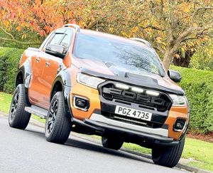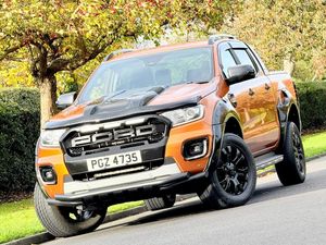 This 2019 Ford Ranger Wildtrak is a robust and capable vehicle, ready for any challenge. Powered by a strong 3.2 litre TDCi diesel engine and featuring Four Wheel Drive, this Euro 6 compliant model offers impressive performance. It boasts a substantial towing weight of 3500 kg, making it ideal for heavy loads. The Wildtrak trim level comes equipped with desirable features such as Bi-Xenon headlights for excellent visibility, heated front seats for comfort in all weather, and dual zone climate control for personalized cabin temperature.Further enhancing its practicality and convenience, this Ranger includes a fixed rear view camera to aid with parking and passive keyless entry and start for effortless access. These features, combined with its powerful engine and four wheel drive system, position this Ford Ranger Wildtrak as a superior choice for those seeking a dependable and well equipped pickup truck. Its Euro 6 rating also ensures it meets current emissions standards.-RAPTOR KIT+NAV+CAM+FACELIFT