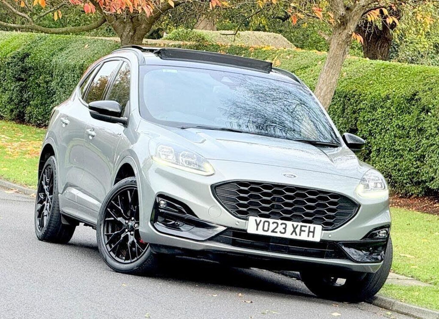 10-Way Power Adjustable Drivers Seat, 12V Power Point in Floor Console, 12v Power Point in Cargo Area, 12v Socket - Voltage Regulator, 19in Alloy Wheels - 5x2 Spoke - High Gloss - Machined, 2nd Row Sliding Seats, 8-Way Manual Passenger Seat including Lumbar Support and Height Adjust, ABS - Anti-Lock Braking System with Enhanced Electronic Stability Control - ESC with Traction Control - Emergency Brake Assist - EBA - Hill Start Assist - Trailer Sway Control, Acoustic Vehicle Alert System - AVAS, Air Conditioning - Electronic Automatic Temperature Control - EATC, Airbag - Driver and Front Passenger Side, Airbag - Front Passenger Deactivation Switch, Airbags - Driver and Front Passenger, Airbags - Front and Rear Side Curtain, Aluminium - Finish Front Scuff Plates with ST-Line Script, Aluminium Foot Pedals - ST-Line Design, Ambient Lighting, Auto Dimming Rear View Mirror, Auto Wipers, Automatic Door Relocking, Automatic Headlights with Auto High-Low Beam, Black Roof Rails, Centre Console with Electronic Parking Brake, Cruise Control with Speed Limiter, Driver and Passengers Sun Visor with Illumination, Dual Exhaust Tailpipes with Unique Brushed Stainless Steel Finish, EPAS - Electric Power Assisted Steering, Electric Childproof Locks on Rear Doors, Electric Parking Brake with Auto Hold, Electrical Charging Point in Second Row, Engine Immobiliser - SecuriLock, Exterior Door Handles - Body Coloured, Ford Easy Fuel System, Ford Keyfree System - Keyless Entry with Ford Power Starter Button, Ford SYNC3 DAB Navigation System, Front Lower Grille - Ebony Black Mesh, Front Seats - 2-Way Manual Height Adjust Passive Head Restraints, Front Seats - Drivers and Passengers Seatback Map Pockets, Front Upper Grille - Carbon Black Honeycombe Mesh and High-Gloss Black Surround, Front Windows - Laminated Glass, Front and Rear Bumper - Sporty Body Colour with Rear Ebony High-Gloss Insert, Front and Rear Floor Mats with Red Stitching, Front and Rear Parking Sensors, Full Digital 12.3in Instrument Cluster, Full LED Headlamps, GEO Awareness - Providing Details of ULEZ Within the Satellite Navigation, Gearshift - Automatic - Electronic Rotary Gearshift Dial, Glovebox Lights, Handsfree Power Tailgate, Headlights - Automatic Follow Me Home Lighting, Headlights - Levelling System - Manual, Headlights - Unique Bending, Headliner - Sports Dark, Heated Driver and Passenger Seats, Heated Rear Seats, Heated Steering Wheel, Heated and Power Folding Door Mirrors with Puddle Lights, High-Mounted Brake Light, Kuga Badge, LED Daytime Running Lights, LED Fog Lights - Front, Lane Keeping Aid with Lane Departure Warning, Large Rear Spoiler, Load Compartment - Lights, Load Compartment - Tie Down Hooks, Load Compartment Carpet, Locking Wheel Nuts, Lower Bodyside Moulding - Body Colour, Lower Door Frame Beltline - Black, Mini Overhead Console with Sunglasses Holder Bin, MyKey, Power Door Deadlocks - Double Locking, Power Door Locks, Power Opening Panoramic Roof, Pre-Collision Assist with Autonomous Emergency Braking, Quickclear Heated Windscreen, Rear Duct on B-Pillar, Rear Lights - LED, Rear Privacy Glass, Rear Seat - 60-40 Split Folding Seats, Rear Seat Centre Head Restraint, Rear Seats - 2-Way Head Restraint Up-Down, Rear Seats - Folding Centre Armrest with Integrated Cup Holder, Rear Seats - Sliding Seat Adjust Tracks - Fore-Aft, Rear View Camera, Red Brake Calipers, Remote Tailgate Release, Removable Package Tray, Rocker Panel Mouldings - Body Colour - ST-Line Design, ST-Line Badge on Left and Right Side Wings, ST-Line Bodystyling Kit, ST-Line Front and Rear Bumper Moulding - Body Colour, Seat Belt - Drivers - Front Passenger and Rear Seat Belt Reminder Alert, Seat Belts - Front 3-Point Seatbelts with Load Limiter, Seat Belts - Front Height Adjustable, Seat Belts - Rear Retractable Rear Belt - 3-Point All Positions, Seats - ISOFIX Mounting Provision for Child Seats - Outer Seats Only, Selectable Drive Modes, Single Rear Fog Light, Sports Seats, Standard Home Charging