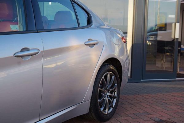 Finished in a sophisticated Silver, the Alfa Romeo Giulia exudes elegance and style, turning heads wherever it goes. Its sleek lines and dynamic silhouette are complemented by the striking Silverstone Grey accents, creating a harmonious blend of modernity and classic charm.