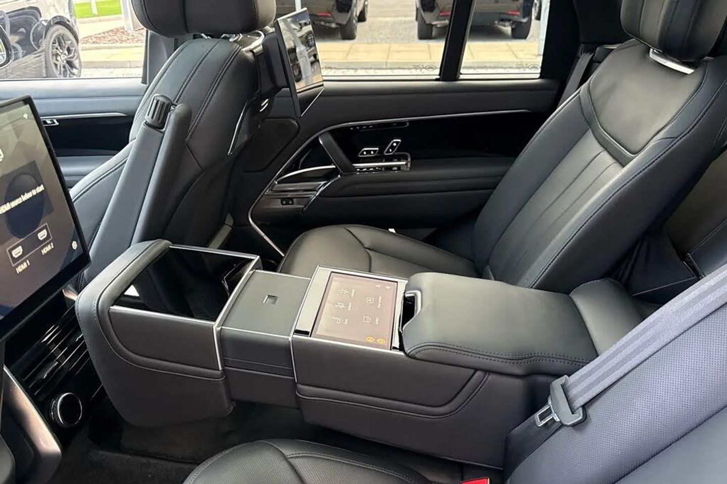 12V power sockets,13.1" Touchscreen,3 seat bench in 2nd row,3D surround camera inc frwd traffic detection,vehicle clearance guidance,3D view,clearsight ground view,manoevure light,360 parking aid,wade sensing,3x3 point rear seat belts,8 speed automatic transmission,Acoustic laminated windscreen,Active damper technology system,Adaptive dynamics,Adaptive off-road cruise control,Air Quality Sensor,All Terrain Info Centre,All Wheel Drive (AWD),All wheel steering,Android Auto,Animated directional indicators,Anti-lock braking system (ABS),Apple car play,Auto folding loadspace cover,Automatic access height,Automatic headlights,Automatic levelling headlights,Black brake calipers,Blind spot assist,Bluetooth connectivity streaming,Brake hold function,Bright metal pedals,Cabin air purification pro,Cabin lighting,Centre high mounted stop light,ClearSight interior rear view mirror,Configurable programs,Cornering brake control (CBC),Customer configurable autolock,Customer configurable single point entry,Digital Audio Broadcast radio-DAB,Digital LED headlights with signature DRL and image projection,Driver and passenger front seat armrests,Driver condition response,DSC - Dynamic Stability Control,Easy boot loading,Ebony Carpet,Eco mode,Electric power assisted steering (EPAS),Electric rear side window sunblinds,Electric windows with one touch open/close and anti trap,Electronic active differential with torque vectoring by braking,Electronic air suspension with dynamic response pro,Electronic brake force distribution,Electronic parking brake,Electronic traction control,Emergency braking,Emergency call service,Engine Cover,Flush deployable exterior door handles,Four zone climate control,Front airbags with passenger seat occupant detector,Front and rear cupholders,Front and rear grab handles,Front and rear parking aid,Front and rear recovery eyes,Front centre console refrigerator compartment,Front fog lights,Front head restraints,Front side airbags,Gearshift paddles,Head up Display,Headlamp power wash,Heated rear window,Heated steering wheel,Heated washer jets,Hill descent control,Hill launch assist,Hook in load space,Illuminated metal treadplates with Autobiography script,Illuminated seat belt buckles,Immobiliser,Interactive Driver display,Intrusion sensor and alarm,Keyless entry,Laminated front and rear side glass,Lane keep assist,LED tail lights,Loadspace light,Locking wheel nuts,Low traction launch,Luggage tie down in loadspace,Meridian 1600W signature sound system,Multifunction steering wheel,Noble chrome controls,Occupant protection assist,Online pack with data plan - Range Rover,Park assist,Pivi pro including smart settings, Connected navigation pro, nuance speech,Power fold, auto-dimming, heated door mirrors with approach lights,Power operated child locks,Powered gesture tailgate/boot lid,Rain sensing windscreen wipers,Rear boot,Rear centre armrest,Rear collision monitor,Rear fog lights,Rear head restraints,Rear ISOFIX,Rear side wing doors,Rear traffic monitor,Remote,Remote central locking,Roll stability control,Side repeater indicators in mirror,Single front passenger seat,Soft close doors,Solar attenuating windscreen,SV bespoke carpet mats,Terrain Response 2 Auto,Traffic sign recognition with adaptive speed limiter,Trailer stability assist,Twin blade sunvisors with Illuminated vanity mirrors,Twin speed transfer box,Tyre pressure monitoring system (TPMS),Upper and lower glovebox,USB socket,Wi-Fi Enabled with data plan,Winter wiper park position,Wireless device charging with phone signal booster,Black Contrast Roof,Privacy Glass,Secure Tracker Pro