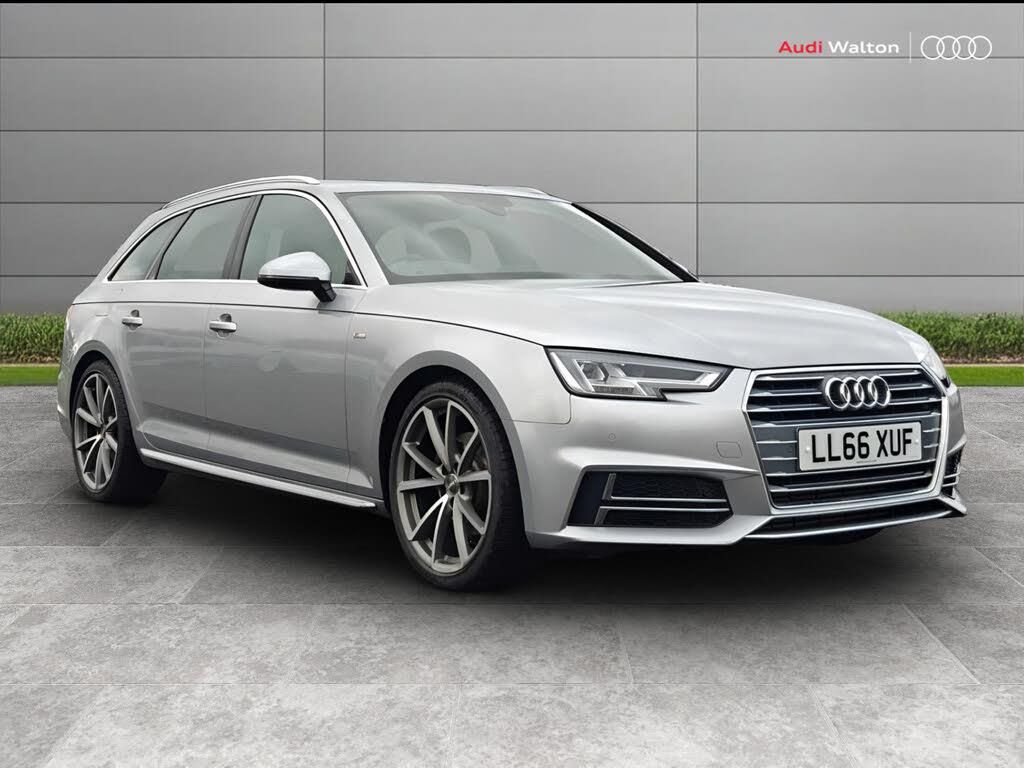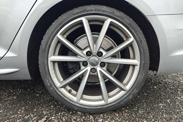 Audi drive select, Audi Pre sense collision avoidance, Audi smartphone interface, Electro-mechanical PAS, Power boot opening and closing, Service interval indicator, Stop/start button, Voice control system, 2 USB ports, Aux input, DAB digital radio module, MMI radio plus with CD player, Acoustic windscreen, Air inlets in titan black with two horizontal inlays in chrome, Auto dimming rear view mirror, Automatic headlights + automatic windscreen wipers, Body colour bumpers, Chrome door handles, Chrome rolled exhaust, Electric adjustable heated door mirrors, Electric front windows, Electric rear windows, Headlight range control, LED daytime running lights, LED indicators in door mirrors, Rear diffuser in Twilight grey matt, Rear wiper, Roof spoiler, 3 zone climate control, Black cloth headlining, Front centre armrest with 12v socket, Front sport seats, Front/rear floor mats, Gearshift paddles, Illuminated door sill finishers, Isofix child seat preparation for front passenger/outer rear seats inc passenger airbag deactivation, Jack and tool kit, Perforated leather gearknob, Reach + rake adjustable steering column, Rear headrests, Retractable load area cover, Split folding rear seats, Stainless steel foot rest, Stainless steel pedals, Sunvisors with vanity mirrors, Top tether anchor plate for isofix child seat, S line exterior styling pack - A4 Avant, 3 point seatbelts on all rear seats, ABS/EBD, Adaptive driver and front passenger airbags, Electromechanical parking brake, ESP, First aid kit, Front head airbags, Front seatbelt pretensioners + load limiters, Front side airbags, Multi-Collision braking, Seatbelt warning, Traction control, Tyre pressure monitoring system, Warning triangle, Keyless Start, Locking wheel bolts, Remote central locking, Thatcham category 1 alarm + immobiliser