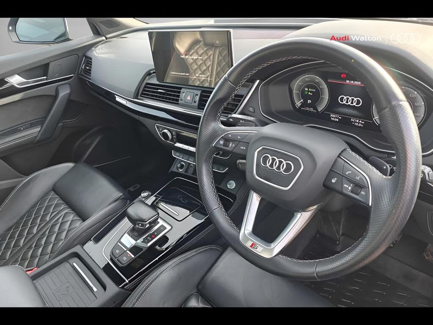 Operating permit, alteration, 360 degree camera, Head-up-Display, Seats in Fine Nappa leather, Tour Pack, Parking Assistance Pack, Advanced key with boot opening, Electrically adjustable front seats with memory function for the driver's side, Audi Matrix LED headlights with OLED rear lights and dynamic front and rear indicators, Camera and/or distance sensor (driver assistance system), Multi-coloured Extended LED Interior Lighting Pack, Camera-based traffic sign recognition, WB5, YEF, Adaptive air suspension, 3 spoke leather steering wheel- heated, Bumpers, S line, in contrasting paint finish, Deletion of power/technology character, Panoramic glass sunroof, Electric front seats with memory function, Black roof rails, Heated front and rear seats, Advanced Key, Black styling pack, 21" x 8.5J '5-V-spoke offset' anthracite black, gloss turned finish Audi Sport alloy wheels with 255/40 R21 tyres, Decorative inserts in Piano Black, Black door mirrors, Audi Active Lane Assist, Exterior mirrors, electrically adjustable, heated and folding automatically dimming on both sides, Anti-theft alarm system, Interior elements in artificial leather, Pre-sense Rear, Park assist plus, Audi Side Assist, Matrix LED headlights with coming/leaving home animations, Matrix LED headlights with dynamic indicators, Adjustable lumbar support with massage feature for the front seats, OLED rear lights - design 1, Adaptive Cruise Control, Headlight washer system, Bang & Olufsen 3D Premium Sound System, Audi Phone Box with wireless charging, Equipment options subset for Great Britain