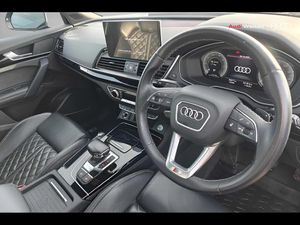 360 degree camera with top view, Advanced key with electric hands free boot opening system, Audi connect safety and service (e-call), Audi connect with Amazon Alexa Integration, Audi drive select, Audi Phone Box with wireless charging - Qi enabled compatible phone and additional bluetooth interface, Audi virtual cockpit plus with 12.3" screen and three different layout designs, Audi wireless smartphone interface, Automatic start-stop system with coasting functionality and efficiency programme, Bluetooth interface, Electro - mechanical power assisted steering, Head up Display, MMI navigation plus with 10.1" touch screen, Park assist with parking aid plus, Power tailgate, Service interval indicator, Speed limiter, Voice control system with Audi hotword activation "Hey Audi", 3 pin 10 amp domestic charging cable, 7.4 kW onboard charger, Adaptive air suspension, Quattro on demand, Type 2 mode 3 22kW 32 amp charging cable, Type 2 socket for AC charging, 2 x USB charging port with aux input socket, Bang + Olufsen sound system, DAB Digital radio, Acoustic windscreen, Audi beam with 'Vorsprung' logo, Audi matrix LED headlights with dynamic front and rear indicators, Auto dimming door mirrors, Auto dimming rear view mirror, Automatic headlight adjustment, Automatic headlights and windscreen wipers, Black roof rails, Body colour bumpers, Body colour underbody protection, Chrome plated exhaust trims, Daytime running lights, Door sills in Selenite silver, Electric adjustable/heated/folding door mirrors, Electric panoramic glass sunroof, Front air inlet surrounds in aluminium, Front and rear electric windows, Gloss black finish for Audi rings and SQ5 logos, Headlight washers, High gloss black B pillar trims and triangular rear door trim, High level LED brake light, Lower bumpers painted in contrast Manhattan grey, Rear chrome trim strip below lights, Rear privacy glass and rear side windows, Rear side wing doors, Rear spoiler, Rear wiper, Roof bars, 3 rear headrests, 3 spoke heated leather multi-function steering wheel, 4 way electric lumbar support for driver and front passenger, 40:20:40 split folding 3 rear bench seat in 2nd row with rear centre armrest, Black cloth headlining, Comfort front centre armrest, Contrast stitching on seats, steering wheel and gear lever gaiter, Deluxe 3 zone electronic climate control, Electrically adjustable front seats with driver memory, Fine Nappa leather upholstery with diamond pattern contrast stitching + front sport seats with S embossed logo, Front/rear floor mats, Gear lever in black leather, Heated front and outer rear seats, Height adjustable front head restraints, Illuminated door sill trims with S logo, ISOFIX child seat mounting and top tether, Massage function for front seats, Rear seat bench plus, Single front passenger seat, Sunvisors with vanity mirrors, Trunk roller cover, Black styling package - Q5, City Assist pack - Q5, Extended interior upholstery pack - Q5, Extended LED Interior multi coloured Lighting Pack - Q5, Tour pack - Q5, 3 point seatbelts on all seats, 6 airbags - Driver, front passenger, curtain and side airbags, Electrically operated child locks on rear doors, Electromechanical parking brake, Electronic stabilisation control including ABS, ASR and EDL, Front passenger airbag deactivation, Hill descent control, Hill hold assist, Multi collision brake assist, Pop-up bonnet for pedestrian protection, Pre sense city, Seat belt force limiter, Seatbelt monitoring, Tyre pressure warning, Warning triangle and first aid kit, Anti theft alarm, Anti-theft wheel bolts, Keyless Go access/ignition system, Remote central locking, Piano black finish inlay, Tool kit, Tyre repair kit