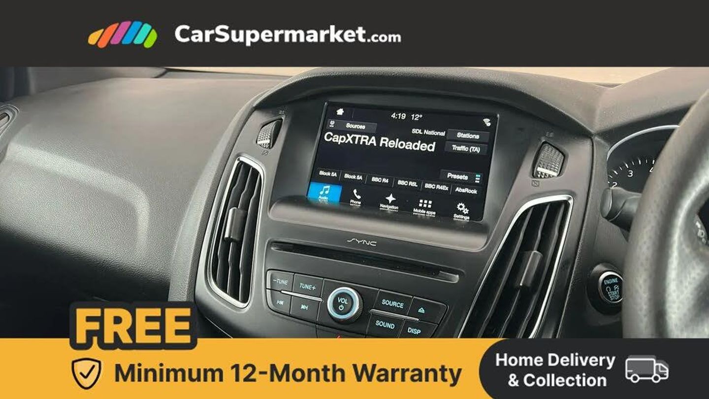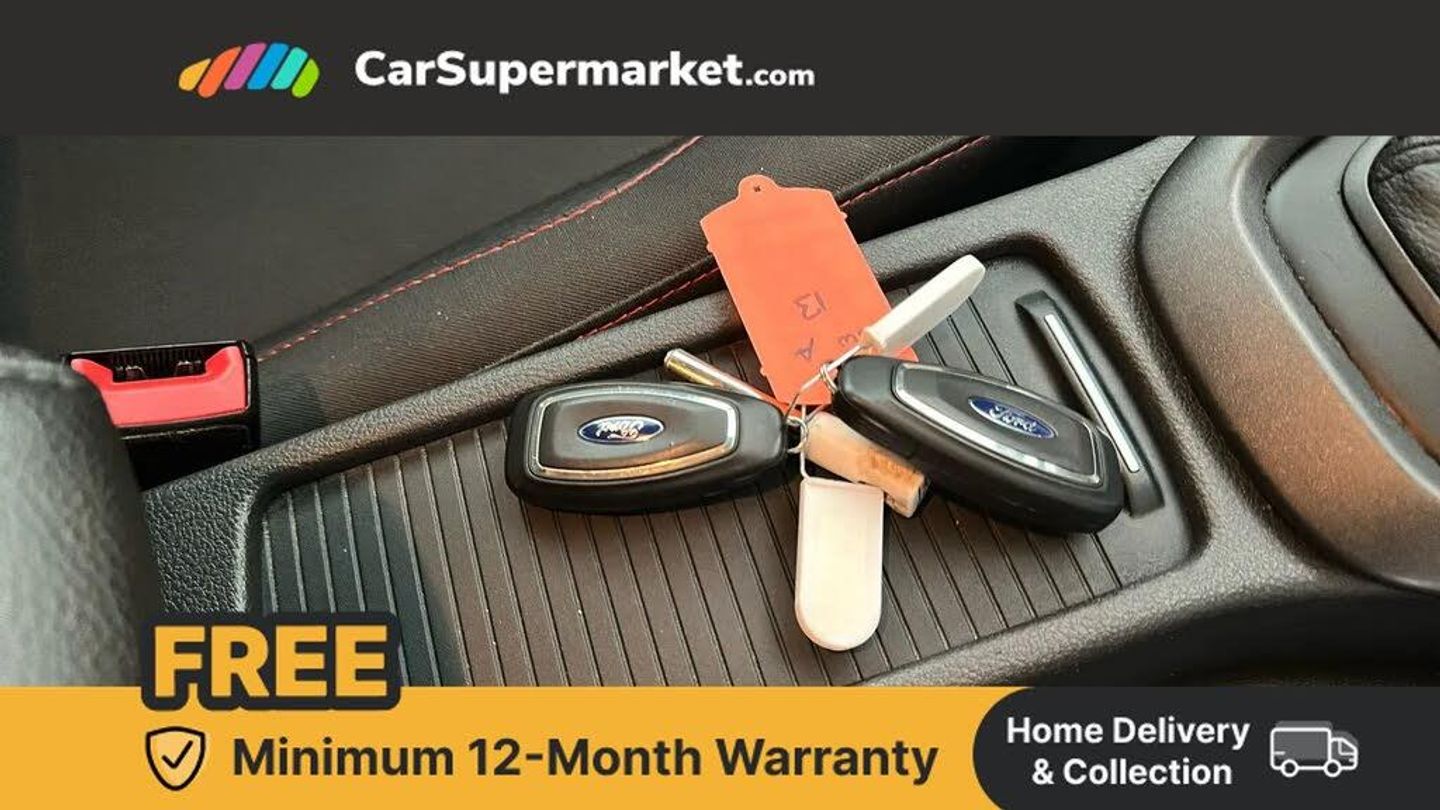 Digital clock,Easy fuel capless refuelling system,Eco mode,Electric boot release,PAS,TFT cluster screen,Trip computer,Sports suspension,Aux input,Steering column with mounted audio controls,USB connection,'Quickclear' heated windscreen/heated washer jets,Black honeycomb front grille,Body colour bumpers,Body colour door handles,Body colour door mirrors,Body colour rear spoiler,Body colour side skirt,Body styling kit,Chrome finish on upper door line,Electric adjustable heated door mirrors,Front fog lights,Front variable intermittent wipers with electric wash,Heated rear window,LED daytime running lights,Tailgate wash/wipe,3 spoke sports leather steering wheel,60/40 split back and cushion rear seats with 2 height adjustable headrests,Air conditioning - CFC-free,Black headlining,Centre console with sliding front armrest,Cloth upholstery,Driver's seat manual height adjust,Driver's seat with adjustable lumbar support,Height adjustable front headrests,Isofix child seat preparation,Reach + rake adjustable steering column,Sports pedals,Sports style front seats,Stainless Steel Scuff Plates,ABS+Electronic Brake force Distribution,Driver airbag,ESP with traction control + emergency brake assist,Front inertia reel height adjustable seatbelts with pre-tensioners,Front passenger airbag,Front side airbags,Hill start assist,Side curtain airbags,Three rear inertia reel lap/diagonal seatbelts,Torque vectoring brake,Tyre pressure monitoring system,Immobiliser-Passive Anti-Theft System (PATS),Keyless Start,MyKey system,Remote central double locking,Thatcham Cat.1 alarm,Contrast stitching - Red,Mini steel spare wheel,SYNC 3 nav system with DAB radio/CD, 8" colour touch screen, bluetooth, emergency assistance, advanced voice control and 6 speakers,Rear LED lights