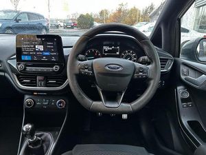 Ford SYNC with Touchscreen - DAB Radio - Apple CarPlay and Android Auto, Trip Computer, Tyre Pressure Monitoring System - TPMS, 17in Alloy Wheels - ST-Line 5-spoke - Rock Metallic, Black Belt Line Finisher, Door Handles - Body Colour, Door Mirrors - Heated - Electric - Integrated Side Indicators - Body Coloured, Electric Windows - Front, Front Bumper - Unique ST-Line, Front Door Threshold Plates - ST-Line, Large Rear Spoiler - Body Colour with Centre High Mounted Stop Light, Quickclear Heated Windscreen, Rear Bumper - Unique ST-Line, ST-Line Side Skirt Body Mouldings - Body Colour, Tyre Repair Kit, Unique ST-Line Upper Grille and Full Bodystyling Kit with ST-Line Wing Badges, Wipers - Standard with 6 Speed Interval Settings, Headlights - Automatic On-Off, Rear Lights - Non-LED, ST-Line Front Fog Lamps with Cornering Lights, Air Conditioning - Manual, Centre Console with Two Cupholders and 12V Power Point, Courtesy Light - Front Map Light and Rear - Overhead LED, Door Lever - Chrome Finish, Front Seat - Drivers Manual Height and Fore-Aft Adjustment, Front Seats - Sports Style, Gearshift Knob - Leather-Trimmed with Aluminium Insert, Glovebox - Illuminated, Headliner - Black Woven, Keyless Start with Ford Power Start Button, Leather-Trimmed Handbrake, MyKey, Overhead Console - Sunglasses Holder, Rear Fog Lamps, Rear Seat - 60-40 Split Back and Cushion, Sports Pedals, Steering Column - Rake and Reach Adjustment, Steering Wheel - ST-Line 3-Spoke Leather Trimmed Flat Bottomed, Warning Triangle Storage, EPAS - Electric Power Assisted Steering, Sports Tuned Suspension, Airbags - Driver and Front Passenger, Airbags - Front and Rear Side Curtain, Airbags - Front Side Impact, Anti-Lock Braking System - ABS with Electronic Brake Force Distribution - EBD, Emergency Brake Warning - Automatic Hazard Warning Lights, Enhanced Electronic Stability Control - ESC with Traction Control - Emergency Brake Assist - EBA - Hill Start Assist - HSA and Trailer Sway Control, Ford Easy-Fuel Capless Refuelling System, IPS - Intelligent Protection System, NCAP Pack, Remote Central-Double Locking, Seats - ISOFIX Mounting Provision for Child Seats, Tailgate Wash-Wipe, Thatcham Category 1 Alarm, Headlights - Halogen Projector with Black Bezel and Dedicated LED Daytime Running Lights