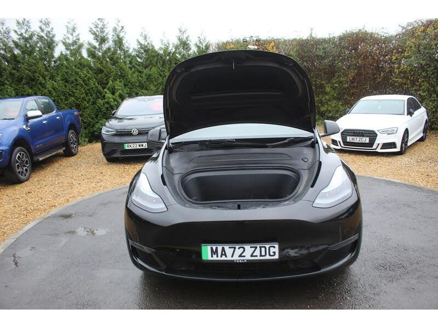 15.4" Touchscreen display, Acoustic seat-belt warning, Blind spot monitoring, Bluetooth hands free phone with voice control system, Custom driver profiles, Electric assisted front and rear doors, Emergency call service, Mobile App interface, Navigation system, Power lift tailgate, Reversing camera, Software updates over WiFi, Speed limit recognition, Speed sensitive power steering, 11 kW AC onboard charger, CCS charging connector (250Kw Max), Dual motor AWD wheel drive, Type 2 connector, 4 USB C ports, DAB Digital radio, Music and media via bluetooth, Premium audio 13 speakers, 1 subwoofer, 2 amps and full immersive sound, 3rd brake light, Auto headlights, Auto high beam, Automatic headlights and wipers, Daytime running lights, Electric windows with one touch open, LED fog lights, LED Headlights, LED tail lights, Power folding, auto dimming and heated wing mirrors, Rain sensitive windscreen wipers, Rear side wing doors, Rear view mirror auto dimming, Rear window defroster, 12 way power adjustable front seats with driver lumbar support, 2 fixed rear headrests, 3 seat bench in 2nd row, Auto dual-zone climate control system, Center console with storage, 2 cup holders and armrest, Driver and front passenger sunvisors with illuminated vanity mirrors, Electronic fold flat seat release 40/20/40, Expansive glass roof with ultraviolet and infrared protection, Front head restraints, Glovebox, lockable with illumination, Heated front seats, Heated rear seats, Heated steering wheel, HEPA filtration system - "Bioweapon defence mode", Interior ambient lighting, Interior floor mats, Map and reading lights, Power adjustable steering wheel, Rear centre armrest with 2 cup holders, Single front passenger seat, Type 2 cable, 3 point front seatbelts with pre-tensioners, 3x3 point rear seatbelts, ABS + traction control, Active safety technologies including collision avoidance and automatic emergency braking, Collision warning, Driver/Front Passenger airbags, EBD + Brake Assist, Electronic parking brake, Electronic stability control, Emergency braking, Rear door child safety locks, Side curtain airbags, Tyre pressure monitoring system, Anti theft alarm, Dashcam, Keyless driving and keyless entry, Wireless phone charging, Premium open pore wood decor