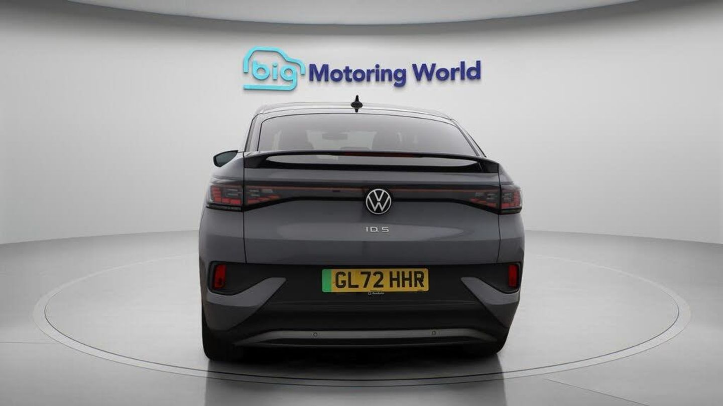 Panoramic Roof,Part Leather Se-Our Volkswagen ID.5 is finished in Grey. Specification includes a range of fantastic features including Panoramic Roof, Part Leather Seats, Apple CarPlay, Android Auto, Satellite Navigation, Privacy Glass, Heated Seats, Rear View Camera, Heated Steering Wheel, Bluetooth Specification information is supplied by CAPHPI and may vary to the actual car. This data does not form any part of a buying contact. Please check specification prior to purchase in-store. The MOT is valid until October 2026, visit bigmotoringworld.co.uk for more photos, a 360 tour, service history and a free HPI report.Were BIG on peace of mind and this Grey Volkswagen ID.5 has completed our comprehensive 200 point inspection and passed all checks. Its ready for you to drive away with immediate collection in-store. We include a 90-day warranty as standard plus an option to extend for up to 3 years.Reserve this car exclusively for you, safely and securely at bigmotoringworld.co.uk, with a fully refundable £99 deposit. Test drive before you buy, with no commitment, no hassle and a completely haggle free experience. Still searching and want to see thousands more cars? We are BIG on choice with over 8000 cars to choose from.Visit our award winning web site bigmotoringworld.co.uk.Were Big Motoring World and were BIG on what matters to you.