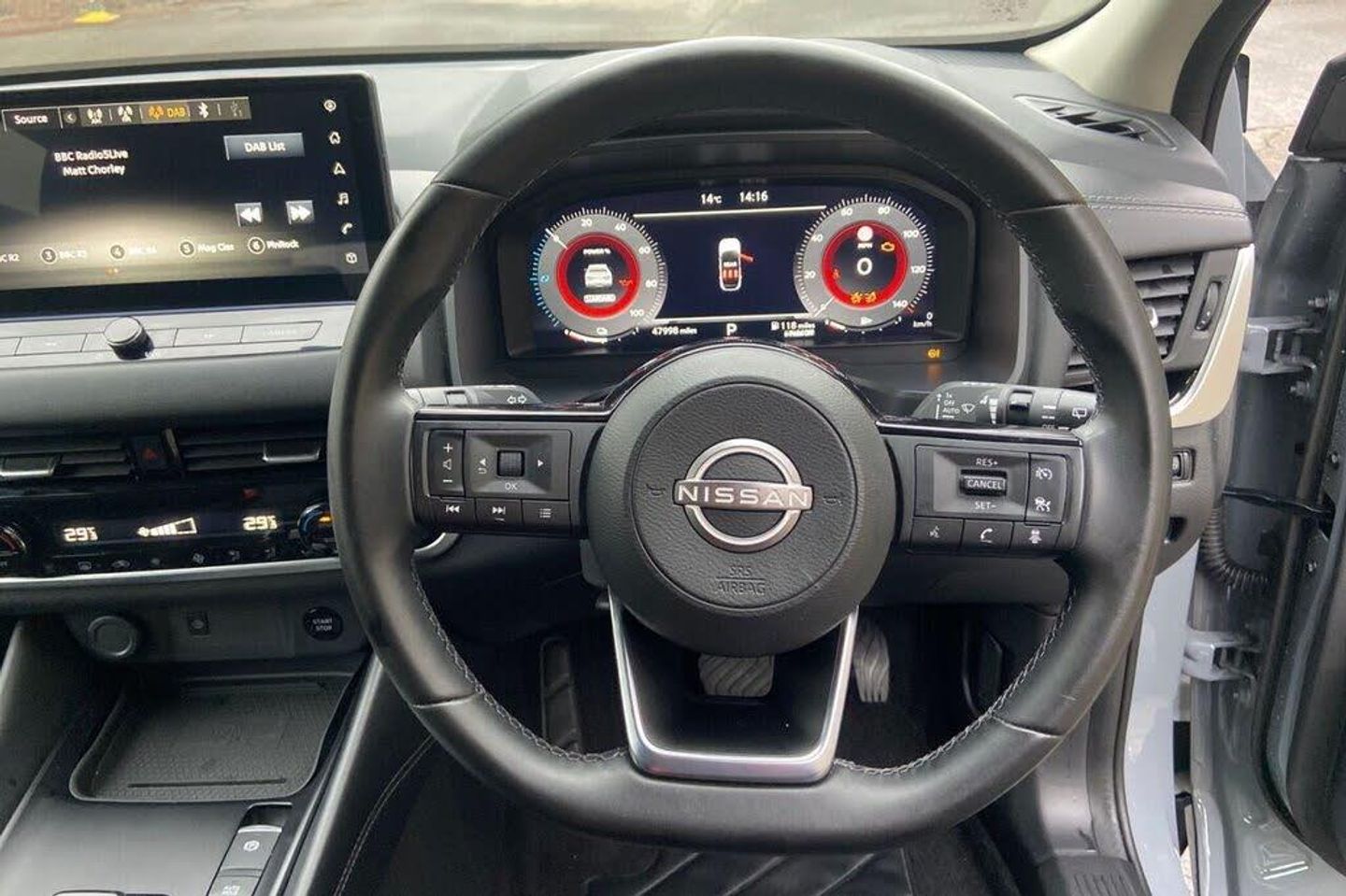 12v Power Sockets in Dash and Luggage Space, 18in Alloy Wheels - Gloss Black, 3 Rear Headrests, 3 x 3-Point Rear Seatbelts, 6 Speakers, 60-40 Split Rear Folding Seats, ABS with EBD and Brake Assist, Active Brake Limited Slip, AM-FM Audio System with DAB, Auto Dimming Rear View Mirror, Auto Hold Function, Auto Rear Wiper When Reversing, Automatic Dual Zone Climate Control with Pollen Filter, Blind Spot Warning, Bluetooth with Audio Streaming, Body Coloured Handles, Body Coloured Mirror Caps, Body Side Moulding, Ceramic Grey with Pearl Black Roof, Chrome Interior Door Handles, Chrome Side Window Finisher, Curtain Airbags, Door Mirror - Electrically Adjustable - Heated - Auto Folding with LED Turn Indicator, Drive Modes - Sport-Normal-Eco, Driver and Passenger Airbags, Driver and Passenger Sun Visor with Illuminated Vanity Mirror, Driver Seat Back Pockets, Driver-Passenger and Rear Seatbelt Reminder, E-Pedal STEP, e-POWER Badging, e-POWER Shifter, Electric Parking Brake, Electric Speed-Sensitive Power Steering, Emergency and Breakdown Call, Engine Immobiliser, Engine Start Button, Follow Me Home Headlights, Front Centre Console and Armrest, Front Cupholders x2, Front Door with Bottle Holders, Front Parking Sensors, Front Seat Belts with Load Limiter and Pretensioners, Front Seatbelt Height Adjustment, Front USB Connections - Type A and Type C, Full Digital 12.3in TFT Digital Combimeter, Glass Roof Pack, Google Maps Services - Search - Weather - 3D Maps and Google Street View, Headlights - High Beam Assist, Headlights - LED, Height Adjustable Driver Seat, Height Adjustable Front Headrests, Hill Start Assist, Illuminated Kick Plates, Intelligent Around View Monitor, Intelligent Auto Headlight, Intelligent Blind Spot Intervention, Intelligent Cruise Control, Intelligent Driver Alertness, Intelligent Forward Collision Warning, Intelligent Front Emergency Braking with Pedestrian Recognition and Cyclist Recognition and Junction Assist, Intelligent Key, Intelligent Lane Intervention, Intelligent Rear Automatic Braking, Lane Departure Prevention, Lane Departure Warning, Leather Steering Wheel, LED Daytime Running Lights, LED Rear Lights, Luggage Board System, Luggage Space Lighting, Maximum Speed Limiter, Monoform Cloth - Charcoal, Moving Object Detection, Multifunctional Steering Wheel, Nissan Connect 12.3in Touchscreen Infotainment System, NissanConnect Navigation, One Touch Front and Rear Electric Windows with Remote Opening-Closing, Partially Body Coloured Bumpers, Passenger Seat Back Pockets, Privacy Glass, Puncture Repair Kit, Rain Sensing Wipers, Rear Cross Traffic Alert, Rear Door Child Locks, Rear Door with Bottle Holders, Rear Parking Sensors, Rear Reversing Light - Bulb, Rear Roof Spoiler, Rear Seat Armrest with 2 Cupholders, Rear Styling Plate, Rear USB Charging Only Ports - Type A and Type C, Rear View Camera, Remote Central Locking with Deadlocking, Remote Control Services - Door Locks - Lights - Horn and Car Locator, Seats - Passengers Height Adjustment, Shark Fin Antenna, Splash Free Wipers, Super UV and Infrared Cut Glass, Telematics - Notifications and Connectivity Services, Thatcham Alarm System, Three Blink Turn Signal, Tilt and Telescopic Adjustable Steering Wheel, TomTom Services Live Traffic, TPMS - Tyre Pressure Monitoring System, Traffic Sign Recognition, Trip Computer, Two Rear ISOFIX Child Seat Anchorage Point with Top Tether, VDC - Vehicle Dynamic Control, Virtual Personal Assistant and Firmware Over The Air Capability, Welcome Light and Console Tray Ambient Lighting, Wired Android Auto, Wireless Apple CarPlay, Wireless Phone Charger