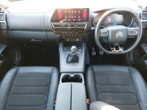 Citroen connect play featuring android auto and apple carPlay, City camera pack with front and rear parking sensors - C5 Aircross, Urban leather effect cloth/Alcantara upholstery with black ambience, 10" Touchscreen user interface with citroen connect nav, voice commands, Bluetooth handsfree and audio streaming, Hill start assist, 12.3" digital instrument cluster with customisable zones and colour schemes, Drive assist pack - C5 Aircross, Electronic parking brake, Automatic headlights with welcome and goodbye lighting, Citroen connect box emergency assist system, Multi function trip computer, Advanced comfort suspension, Auxiliary input socket, USB A socket (charge only) on rear part of central console, Electric heated and folding door mirrors with LED approach lighting and blind spot monitoring indicators, Magic wash automatic windscreen wipers with flat blades, variable speed depending on vehicle speed, and windscreen washers integrated into the wipers, Automatic bi-zone air conditioning with active carbon filter and air quality system, plus controllable row 2 air diffuser, LED interior lighting - - C5 Aircross, Keyless entry and start, Collision risk alert, Tyre under inflation indicator, Remote central locking + deadlocks