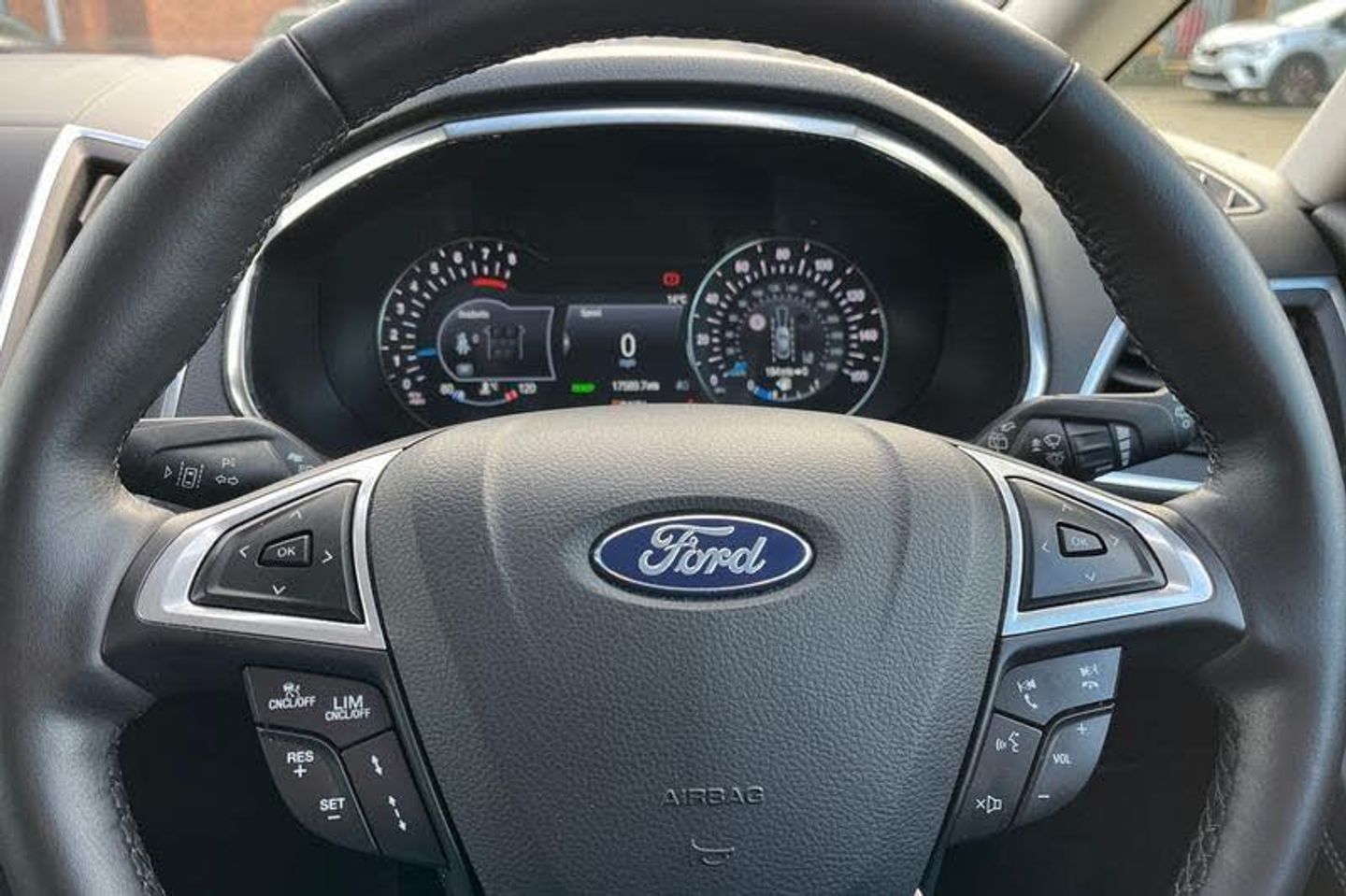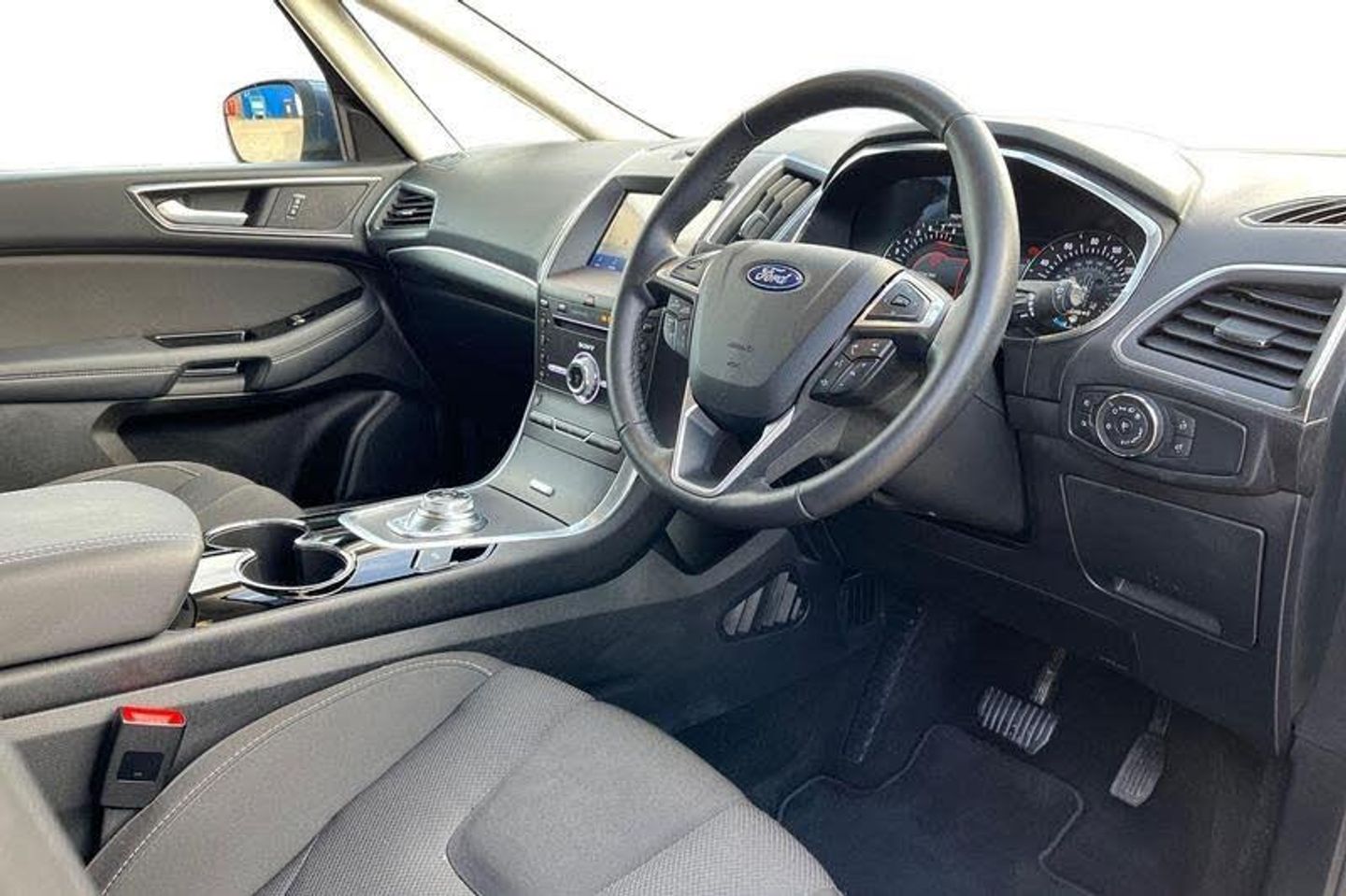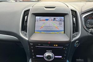 'Ford Power' starter button, 10.1 semi digital cluster, Easy fuel capless refuelling system, eCall emergency call system, Lane keeping aid including driver impairment monitor and active steering with lane departure warning, PAS, Rotary gear shift dial, Traffic sign recognition, Unique instrument cluster, 3rd brake light, Auto dimming rear view mirror, Automatic headlights, Automatic wipers with variable sensitivity adjustment, Body colour door handles, Body coloured bumpers, Chrome trim to side windows, Full body coloured trim, Halogen front fog lights, Halogen projector headlights, LED daytime running lights, LED rear lights, Power fold mirrors - heated, indicators with puddle lamps, Power operated front and rear windows, Quickclear heated front windscreen, Rear privacy glass - dark glass to rear windows, Rear side wing doors, Tailgate wash/wipe, Tinted glass, 2 x 3rd row individual seats with fold flat, 230V power outlet in centre console, 3 x 2nd row individual seats wih fold flat, slide and recline, Ambient lighting, Dual zone electronic automatic temperature control, Floor mats in all three rows, Front and rear head restraints, Front seat back table trays, ISOFIX attachments for child seats in 2nd row, Leather trimmed steering wheel, Overhead console with sunglasses stowage, Pollen and odor air filter, Reach and rake adjustable steering column, Single front passenger seat, Sports seats, 3 point seatbelts on all seats, ABS/EBD, Driver/Front Passenger airbags, Drivers knee airbag, Electric handbrake, ESP+EBA, Front and rear (row 2) curtain airbags, Front side airbags, Manual child lock in rear doors, Passenger airbag deactivate switch, Pre collision assist system, Traction control, Tyre pressure monitoring system