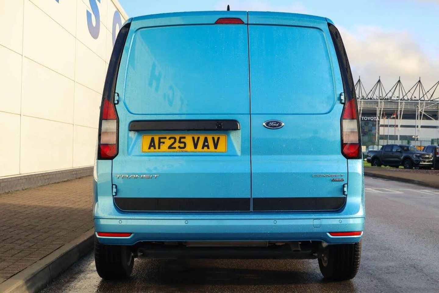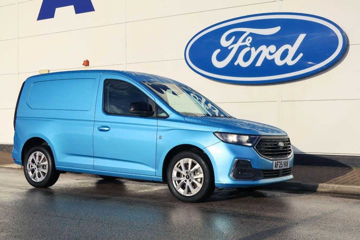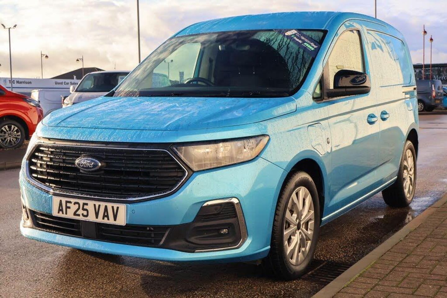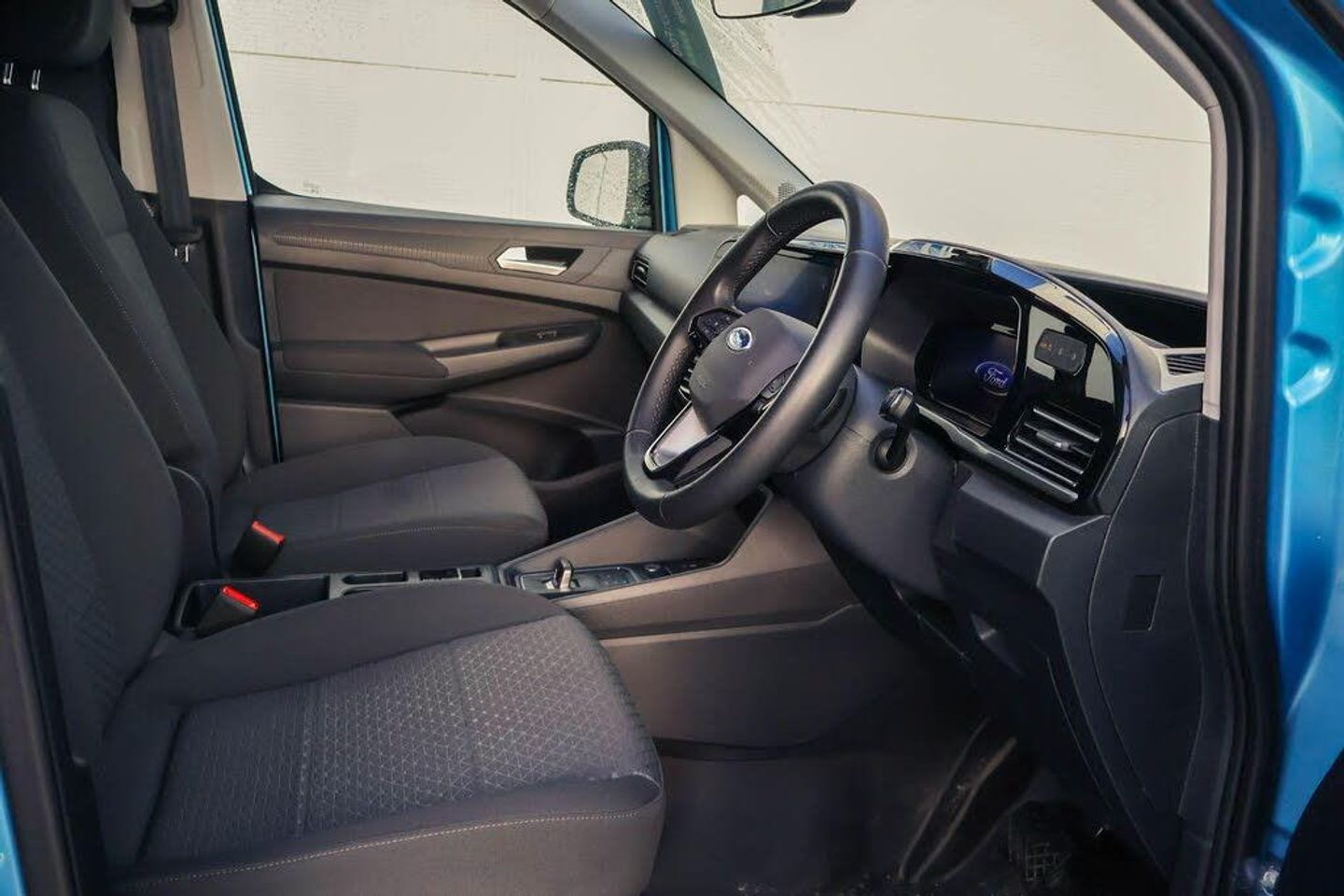 10" touchscreen infotainment display with volume and temperature slider controls, Android Auto and Apple Carplay with USB or wireless connectivity, Brake wear indicator, Enhanced digital cluster with navigation integration, Fordpass connect modem including eCall, Front camera system, PAS, Tyre pressure monitoring system with cluster display of tyre pressures, Wireless charging pad, 4 speakers, DAB radio bluetooth, voice control and navigation, Two USB (45W type C) front power/Data points, Auto Headlamps - Follow Me Home, Automatic headlamps on/off, Automatic windshield wiper, Black painted exterior mirror caps, Body colour door handles with silver door rail, Body coloured exterior tailgate handle, Body coloured front bumper, Body coloured rear bumper, Chrome grille and fog light surrounds, Day and night inside mirror, Dual power heated mirrors, Emergency brake light flashing, Front fog lights, High mounted stop lamp, Less roof rails, Misfuel Inhibitor, Power folding door mirrors, Power front windows - One touch up-down, Quickclear electric windshield defroster, Rear tinted glass, Standard green class windscreen, Tail lamps, Weather protection seals, 12V socket in cabin, 2 way front headrestraints, 4 way manually adjustable driver seat, 4 way manually adjustable passenger seat, Cargo area dual LED lights, Cargo area hardboard trim, Centre console with open stowage, Chrome air register, Driver and passenger sunvisor with mirror, Driver seat rotary recliner, Electronic dual zone automatic air conditioning, First row LED light with map lights, Fold flat passenger seat with integrated work surface, Foot pedal, Overhead storage compartment, Pollen filter without carbon filter, Reach and rake adjustable steering column, Recirculation heater, Rubber cab floor cover, Rubber load floor cover, Sensico gear shift knob, Sensico steering wheel, Silver interior door handles, 2 remote keys, Ford KeyFree system with power starter button and deadlocking, Immobiliser, Locking wheel bolts, Thatcham alarm system, Bubble Fabric - Black with Grey Contrast Stitching