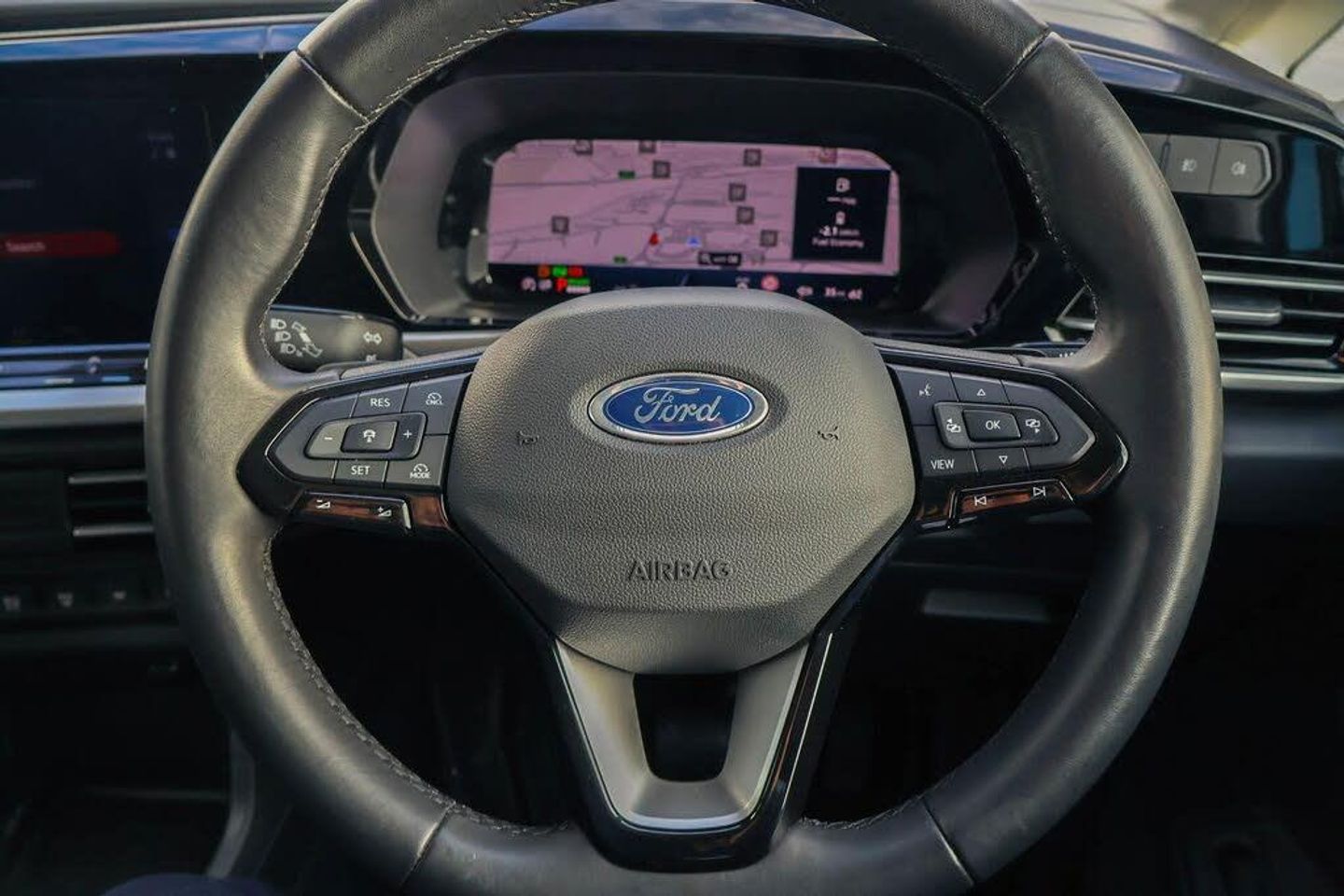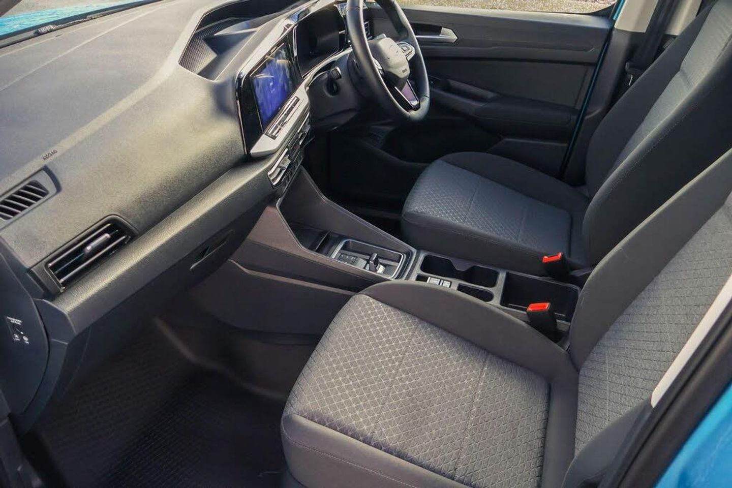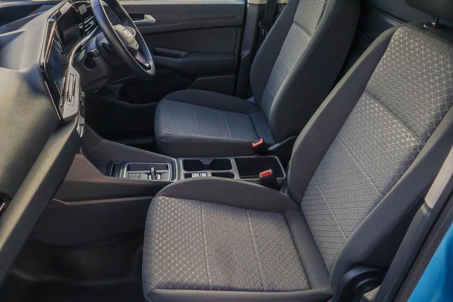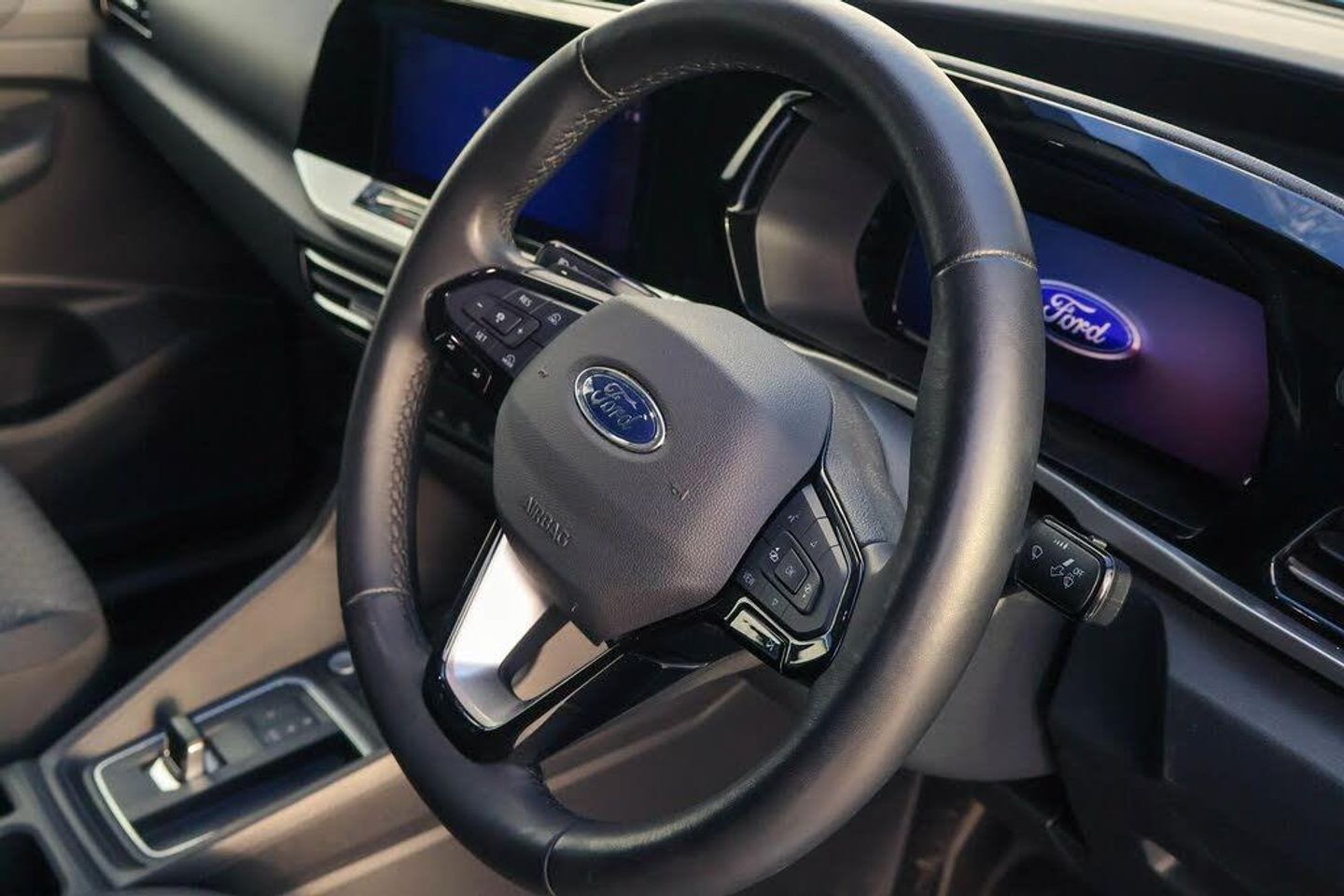 10" touchscreen infotainment display with volume and temperature slider controls, Android Auto and Apple Carplay with USB or wireless connectivity, Brake wear indicator, Enhanced digital cluster with navigation integration, Fordpass connect modem including eCall, Front camera system, PAS, Tyre pressure monitoring system with cluster display of tyre pressures, Wireless charging pad, 4 speakers, DAB radio bluetooth, voice control and navigation, Two USB (45W type C) front power/Data points, Auto Headlamps - Follow Me Home, Automatic headlamps on/off, Automatic windshield wiper, Black painted exterior mirror caps, Body colour door handles with silver door rail, Body coloured exterior tailgate handle, Body coloured front bumper, Body coloured rear bumper, Chrome grille and fog light surrounds, Day and night inside mirror, Dual power heated mirrors, Emergency brake light flashing, Front fog lights, High mounted stop lamp, Less roof rails, Misfuel Inhibitor, Power folding door mirrors, Power front windows - One touch up-down, Quickclear electric windshield defroster, Rear tinted glass, Standard green class windscreen, Tail lamps, Weather protection seals, 12V socket in cabin, 2 way front headrestraints, 4 way manually adjustable driver seat, 4 way manually adjustable passenger seat, Cargo area dual LED lights, Cargo area hardboard trim, Centre console with open stowage, Chrome air register, Driver and passenger sunvisor with mirror, Driver seat rotary recliner, Electronic dual zone automatic air conditioning, First row LED light with map lights, Fold flat passenger seat with integrated work surface, Foot pedal, Overhead storage compartment, Pollen filter without carbon filter, Reach and rake adjustable steering column, Recirculation heater, Rubber cab floor cover, Rubber load floor cover, Sensico gear shift knob, Sensico steering wheel, Silver interior door handles, 2 remote keys, Ford KeyFree system with power starter button and deadlocking, Immobiliser, Locking wheel bolts, Thatcham alarm system, Bubble Fabric - Black with Grey Contrast Stitching