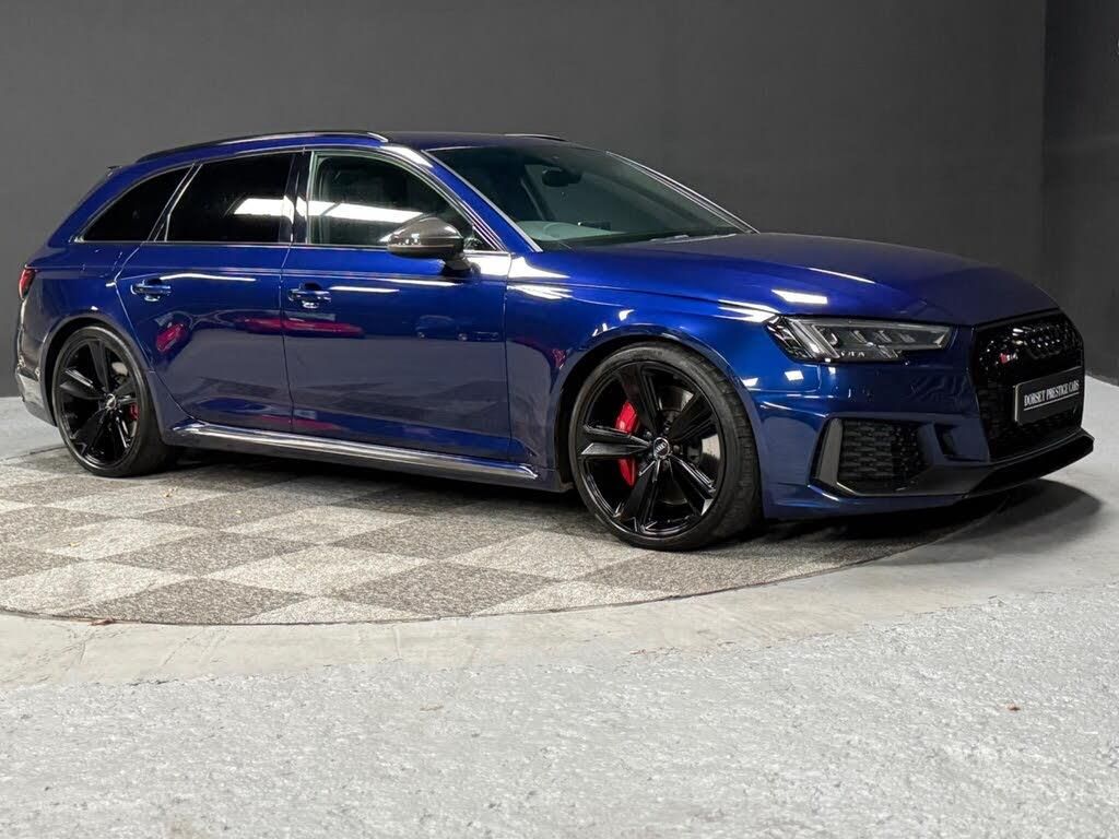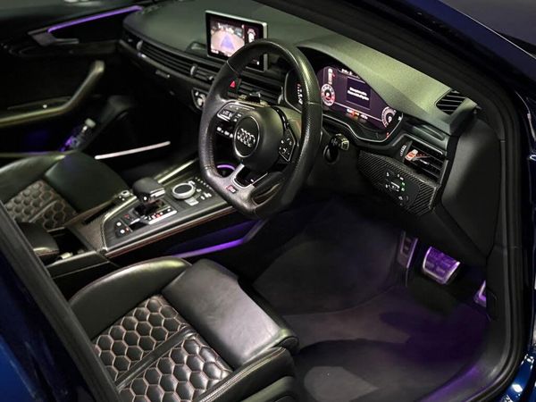 Dorset Prestige Cars are proud to present this 2018 Audi RS4 2.9 TFSI V6 Carbon Edition finished in Navarra blue metallic with black leather cross stitched interior, 20 inch Black Gloss Alloy wheels with red callipers, privacy pack, carbon fibre rear bumper inlays, carbon fibre side trim, carbon fibre front bumper in lays, carbon fibre mirror caps, carbon fibre interior pack, virtual cockpit, cruise control, electric power fold heated mirrors, RS flat bottom steering wheel, heated seats, Massage seats,Bang & Olufsen Audio, electric boot, Isofix seats, rear climate control. Optional Extra's = comfort and sound package, Audi matrix LED headlights, metallic paint, black cloth headlining, door mirrors, electrically folding with kerb view functionThis vehicle comes with two remote keys, original book pack with manualsService History = 19/2/2018@37 miles Audi----- 3/11/2019@19138 Audi,---17/8/2022@48020 Audi-----8/9/2023@53041 Audi,-----14/3/25@67300 Audi Nationwide Delivery Trailered or Driven you Choose, 6 Months Warranty+ Extended warranties available 12 Months AA Breakdown....This vehicle comes with 6 months Warranty for full peace of mind (up to 36 month extension available), 3 or 5 year ceramic coating available, train station collection service, nationwide delivery available on all vehicles. Part Exchange welcome. Open Monday to Saturday ***Viewing By Appointment Only*** All Major Credit and Debit Cards Accepted. Please visit our website for more information on our services and to view our other vehicles currently in stock. Secure this vehicle today for £500 deposit T&Cs Apply! All our vehicles are HPI clear and have been through our workshop for a full health check for peace of mind. See our 5***** reviews , Buy with confidence through us. Find us on Facebook Instagram and YouTube! View our full range of cars on our website and Autotrader profile.-CarbonEdition+ comfort&sndPack-Click and Collect,3 Months Warranty Extended Warranties Available 5*Dealership Check Out Our Reviews