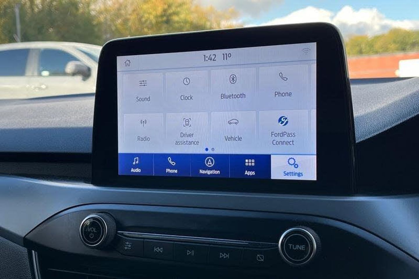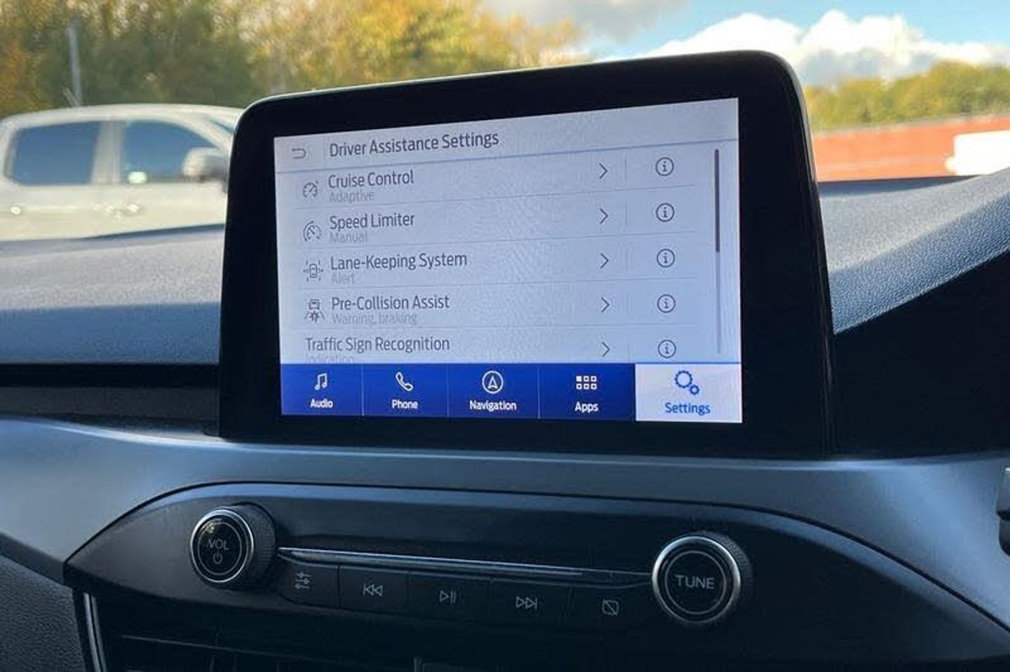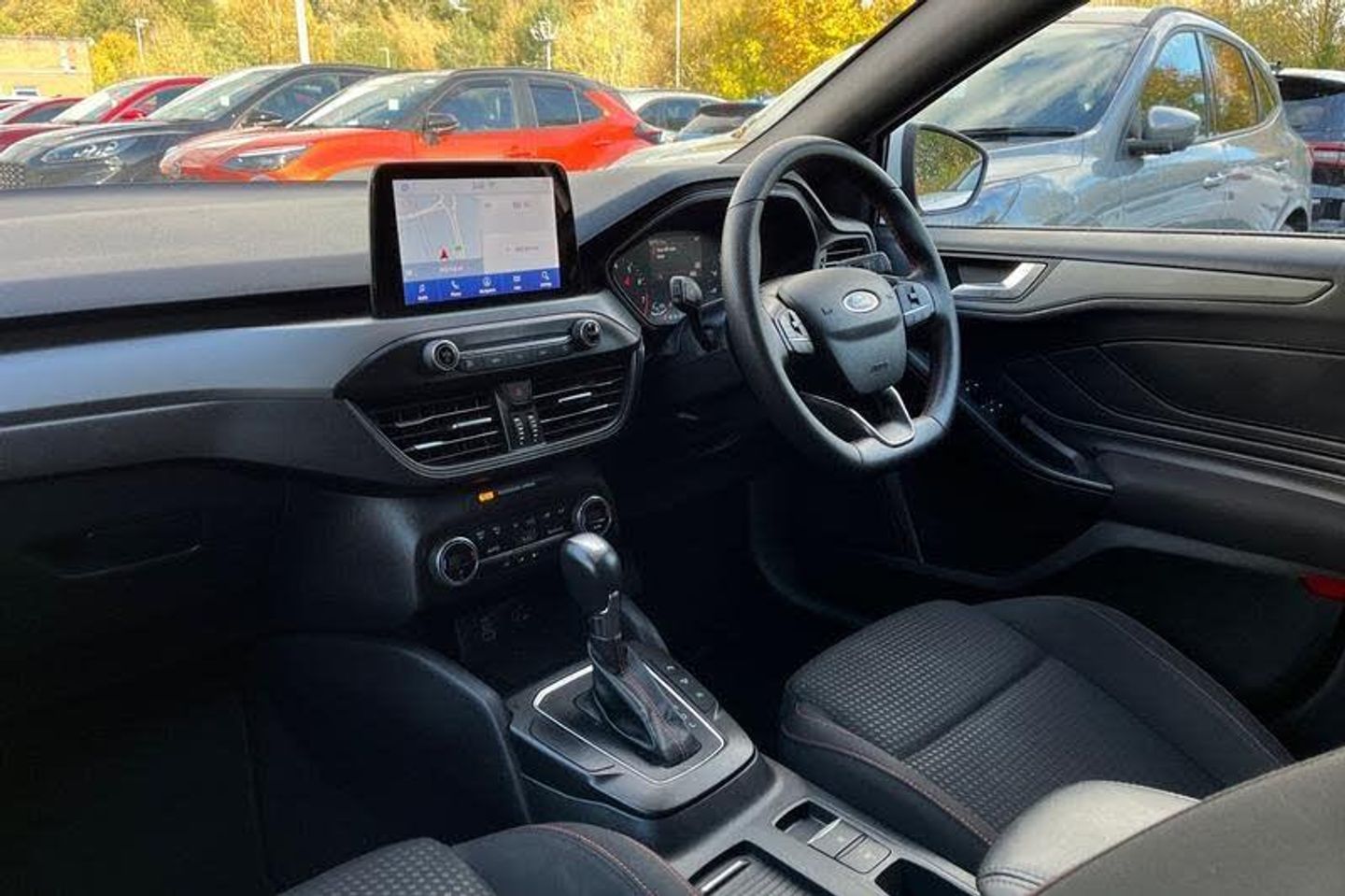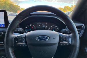 4.2 Colour TFT Ice blue illumination analogue cluster with trip computer, Bluetooth system, Digital clock, Easy fuel capless refuelling system, Eco mode, Ford SYNC 4 Navigation with 13.2'' touchscreen, DAB radio, Emergency Assistance, Apple Carplay & Android Auto, 6 speakers & FordPass Connect, Lane keeping system - lane keeping alert and lane keeping aid, PAS, Rev counter, Selectable drive mode, Service interval indicator, Auto headlamps (on/off), Body coloured door handles, Electrically operated front and rear windows with one touch opening and closing, Electrically operated heated power fold door mirrors with puddle lamp with side indicators, Front variable intermittent wipers with electric wash, Full fixed LED headlamps, Heated rear window, LED daytime running lamp, LED rear lamps, LED third brake light, Polished twin tailpipe, Privacy glass, Quickclear heated windscreen, Rain sensor, Rear side wing doors, Tailgate wash/wipe, Unique ST-Line grille, full bodystyling kit, and large body coloured rear roof spoiler, 3 rear headrests, 3 seat bench in 2nd row, Cloth upholstery, Dual zone electronic air temperature control, Height adjustable front headrests, Isofix child seat preparation, Manual 2-way passenger seat adjust, Manual 4-way driver seat adjust, with manual lumbar adjust, Reach + rake adjustable steering column, Single front passenger seat, 3x3 point rear seatbelts, ABS+Electronic Brake force Distribution, Auto hold function, Driver airbag, EDL traction control, Electronic parking brake, Electronic stability control, Front and rear seatbelt reminder, Front inertia reel height adjustable seatbelts with pre-tensioners, Front passenger airbag, Front side airbags, Passenger airbag deactivate switch, Post collision braking, Pre collision assist with autonomous emergency braking and pedestrian/cyclist detection, Remote/power child rear door locks, Side curtain airbags, Three rear inertia reel lap/diagonal seatbelts, Tyre pressure monitoring system