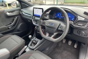 Parking Pack, Privacy Glass, Cloth - Black with Red Stitching, 17in Alloy Wheels - 5x2 Spoke - Black Machined Finish, ABS - Anti-lock Braking System, Acoustic Laminated Windscreen, Active Grille Shutter, Automatic Dimming Rear View Mirror, Automatic Headlights with Rain-Sensing Wipers and Auto High Beam, Centre Console - Premium with Openable Stowage Area with USB Connectivity - 2 Cupholders and 12v Power Point, Courtesy Lights - Ambient LED Courtesy Lighting - Single Colour, Cruise Control with Intelligent Speed Assist, Drivers Manual 4-Way Seat Adjustment with Manual Lumbar Adjust, ESC - Electronic Stability Control and Hill Start Assist, Ecoboost Hybrid Tailgate Badge, Electric Windows - Front and Rear, Emergency Brake Warning - Automatic Hazard Warning Lights, First Aid Kit Strap, Ford MegaBox Extended Bootspace, Ford Power Starter Button, Ford SYNC 3 Navigation, Front Bumper - Unique ST-Line Sport Design - Body Colour, Front Floor Mats, Front Fog Lights, Front Seats - Sports Style, Full Digital 12.3in Instrument Cluster, Gear Knob - Aluminium, Handbrake - Black Sensico Trimmed with Stitching, Headliner - Deluxe, Instrument Panel - High Level, Intelligent Speed Assistance, LED Rear Lights, Lane Keeping Aid with Lane Departure Warning, Large Rear Spoiler - Body Colour with Centre High Mounted Stop Light, Locking Wheel Nuts, Lower Bodyside Moulding - Body Colour, Manual Air Conditioning, Passengers Seat - 2-Way, Post Collision Braking, Power Steering, Power-Foldable Heated Door Mirrors with Puddle Lamps, Pre-Collision Assist with Autonomous Emergency Braking and Pedestrian-Cyclist Detection, Projector Headlamps with LED Daytime Running Lights, Puma Badge, Quickclear Heated Windscreen, Rear Bumper Body Colour - Diffuser, Rear Parking Sensors, Rear Seats - 2-Way Head Restraint Up-Down, Rear Seats - Second Row 60-40 Folding Seats, Remote Central-Double Locking, Restrain Device Pack, ST-Line Badge, ST-Line Body Styling Kit, ST-Line Flat-Bottomed Leather Steering Wheel with Unique Red Stitching, Selectable Driving Modes - Normal - Eco - Sport - Slippery and Trail, Soft-feel Gearshift Boot with Red Stitching, Speed Limiter, Sports Suspension, Tailgate - Manual, Thatcham Alarm, Traction Control and Emergency Braking Assistance, Trip-Fuel Computer, Tyre Inflation Kit, Tyre Pressure Monitoring System - TPMS