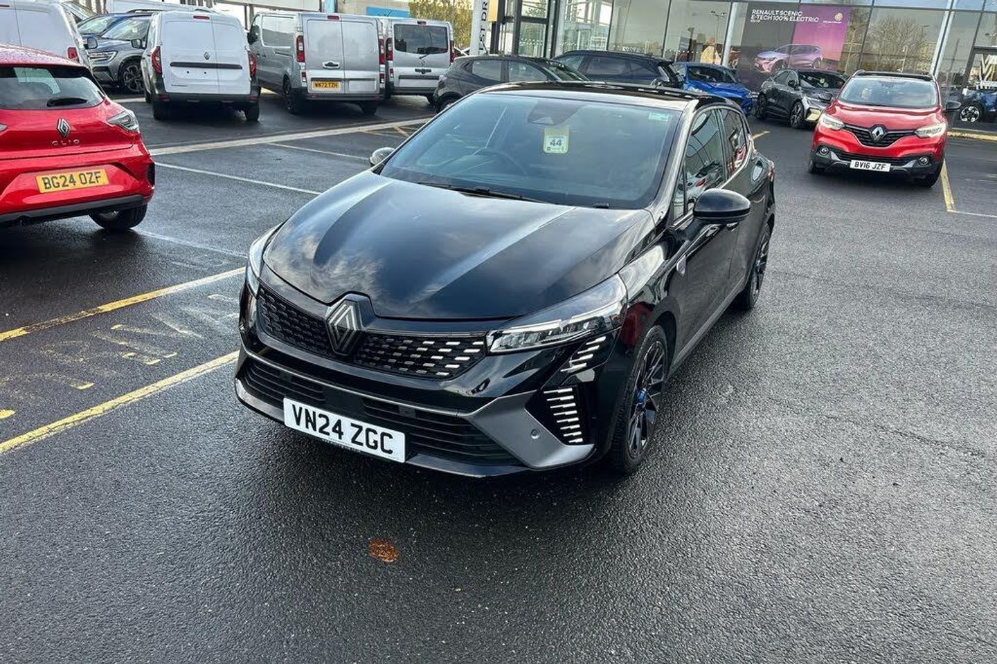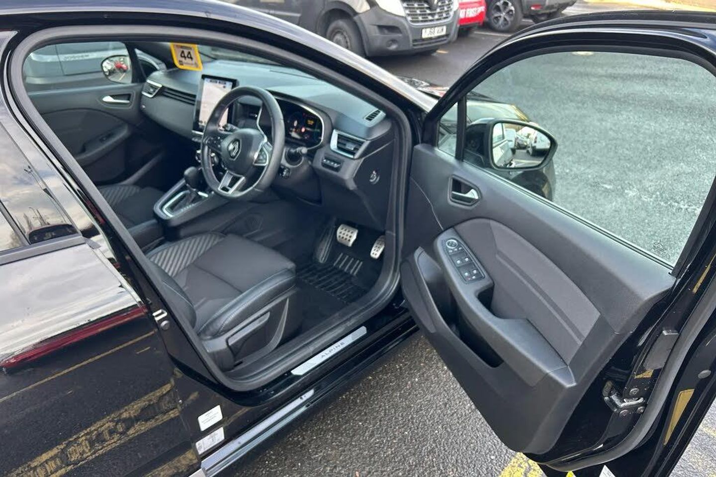 10" customisable digital driver display,Active cruise control with stop and go + speed limiter,Apple car play/Android Auto,Blind spot warning,Driver attention warning,Easy link 9.3" touchscreen with built in navigation + Wifi smartphone integration plus,Eco mode driving function,Emergency call system,Front park assist,Front parking sensors,Lane departure prevention,Lane departure warning system,Lane keep assist,Multisense 3 driving modes including ambient lighting,Over speed prevention,PAS,Rear cross traffic alert,Rear park assist,Rear parking sensors,Rear view camera,Saftey shield [button for personalisation configuration of key ADAS features],Start/stop system,Traffic sign recognition,Wireless phone charger,2 USB ports,Arkamys speakers - x6 inc. 2 boomer, 2 tweeter and 2 bicone,Bluetooth, 1x jack, 1x aux socket,DAB/FM Radio,Automatic headlights,Automatic high / low beam,Automatic windscreen wipers,Black auto folding wing mirrors with defrosting and temperature gauge and LED indicator,Body colour bumpers,Body colour door handles,Electric rear windows,Electrically adjustable door mirrors,Electrochromatic frameless rear view mirror with light and rain sensor,Exhaust pipe,Exterior rear hidden door handles,Front and rear LED roof light x 2,Front fog lights,Full LED front and rear headlamps integrating daytime running lights at the front and rear,Heated rear windscreen,LED rear signature lighting,LED third brake light,Matte shadow grey F1 blade,One touch electric front windows,Rear brake light,Rear side wing doors,Rear wiper,Shadow grey insert on lower side doors,Shadow grey side window surrounds,Shadow grey upper grille,Shark fin antenna,Tinted rear windows,3 rear height adjustable headrests,3 seat bench in 2nd row,60/40 split and fixed base rear seat bench,Aluminium pedals,Automatic air conditioning,Black armrests in door panel,Centre console armrest,Fabric seat with synthetic leather detailing upholstery,Floating console with storage,Heated front seats,Heated steering wheel,Height adjustable front headrests,Isofix system on outer rear seats,Mechanical height adjustable front seats,Power supply jack,Single front passenger seat,Sun visor without light,Top grain synthetic leather steering wheel with blue stitching,3 point seatbelts on all rear seats,ABS,Automatic emergency braking system with emergency brake assist,Child locks on rear doors,Curtain airbags,Distance warning alert,Driver and passenger airbags,Electronic brake force distribution,Electronic parking brake with auto hold,ESC (Electronic Stability Control),Front passenger airbag deactivation,Front side airbags,Height adjustable passenger seatbelt,Hill start assist,Seatbelt reminder,Tyre pressure monitor,2x Black keys,Hands free key card with push button, start and stop function,RAID (Renault Anti-Intruder Device) automatic door locking,Superlocking,Dark interior roof trim,17" Esprit alpine diamond cut alloy wheels,Diamond Black
