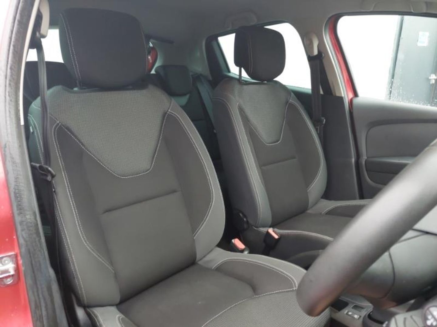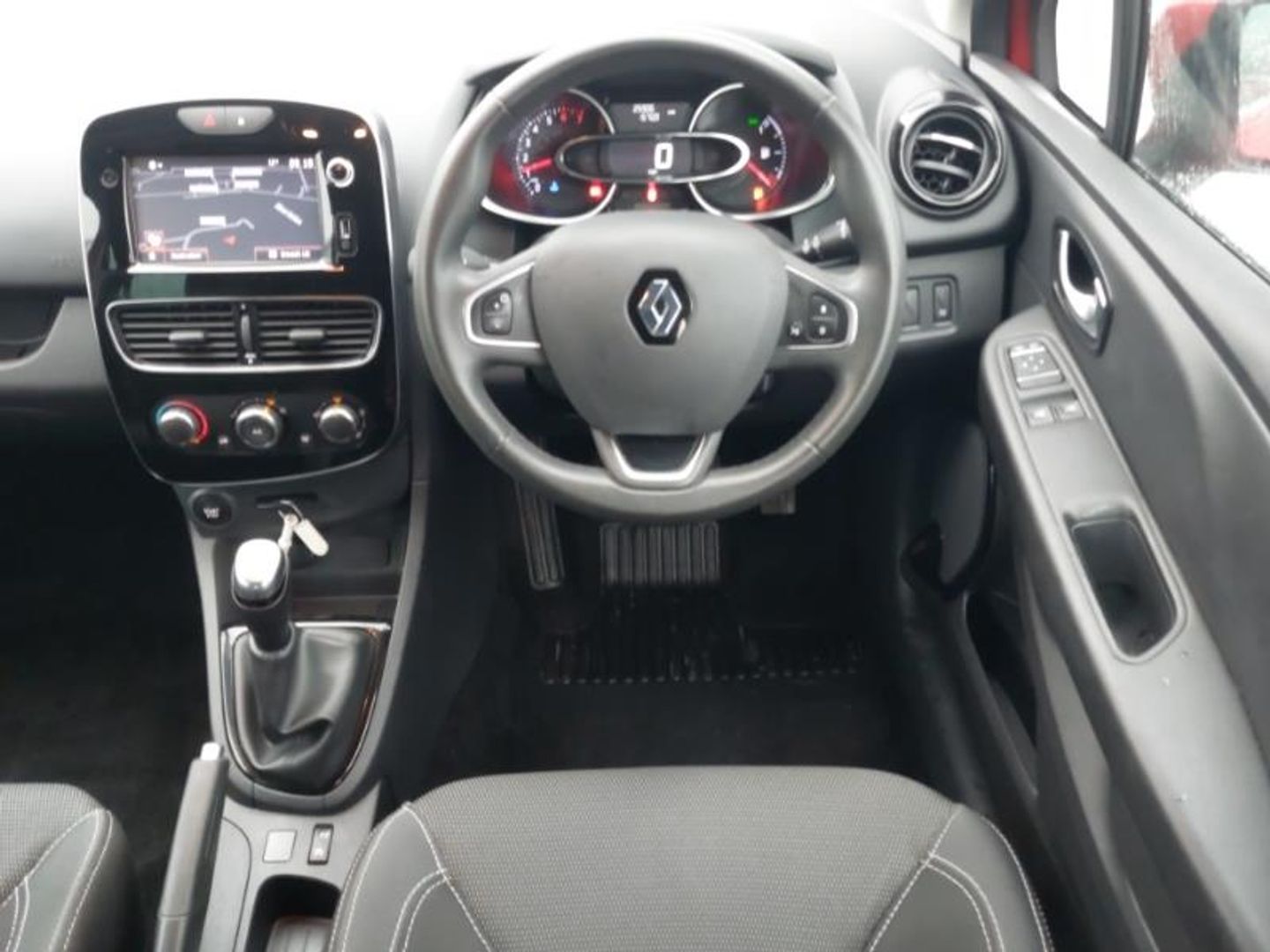 Rear parking sensors, Cruise control + speed limiter, 17" Black alloy wheels, Smartphone cradle, Variable PAS, Push button starter, Eco mode, DAB Digital radio, Aux-in socket, Black headlamp surrounds, Body colour door handles, Body colour door mirrors, Body coloured bumpers, Body coloured rear spoiler, Chrome boot lid finisher, Chrome front grille strips, Chrome tailgate decoration, Chrome window surround, Variable front intermittent wipers, Rear wiper, LED daytime running lights, Heated door mirrors, Gloss black door protectors with chrome inserts, Front fog lamps, Extra tinted glass on rear windows + tailgate, Electric front windows + one touch + anti-pinch, Electric adjustable door mirrors, System for Restraint and Protection SRP-front seats, Style cloth upholstery, Pollen filter, Multi function steering wheel, Isofix system on outer rear seats, Height/reach adjust steering wheel, Height adjustable front headrests, Glovebox, Front door storage bin, Front cupholders, Driver's seat height adjustment, Cloth upholstery/synthetic leather inserts, Chrome interior door handles, Chrome gear knob insert, Air recirculation control, 60/40 split rear seats, 3 rear height adjustable headrests, 12V Accessory socket, Seatbelt warning, Tyre pressure warning, Hill start assist, Height adjustable driver's seatbelt, Front side airbags(head+thorax), ESP + Traction control + Understeer control, Driver/Front Passenger airbags, Driver and passenger front and side airbag deactivation, ABS+EBD+Brake assist, 3 point seatbelts on all rear seats, Remote central locking, RAID (Renault Anti-Intruder Device) with automatic door locking, Locking fuel filler cap, Hands free Renault card, Deadlocking system, Child lock control of rear doors and windows, Anti-drill door locks