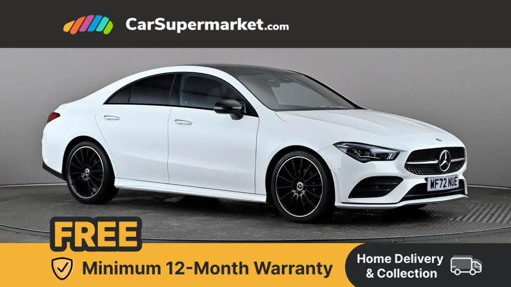 10.25 inch Instrument display with digital cockpit,10.25 inch touchscreen central media display,Active lane keeping assist,Attention assist - Monitors steering behaviour and long journey fatigue,Blind spot assist,Bluetooth connection,Car wash mode,Cruise control with limiter,Direct steer system with speed sensitive power steering,DYNAMIC SELECT with a choice of driving modes (ECO, Comfort, Sport and Individual),ECO start/stop function,Fluid level warning indicator for fuel, oil, coolant and washer fluid,Hard-disk navigation,Hey Mercedes Voice activation,Lamp failure indicator,Mercedes me connect including emergency call system, accident recovery, breakdown and maintenance management,Mercedes me remote services,Outside temperature gauge,Owners manual and service booklet in English,Pre-installation of private car share,Preinstallation for Mercedes Benz link,Radio aerial integrated into front and rear windshields,Service indicator (ASSYST),Smartphone integration with Apple CarPlay and Android auto,Speed limit assist,Traffic sign assist,Trip computer in multifunction display with current consumption indicator,Lowered comfort suspension,Rear axle multi-link,DAB digital radio tuner,MBUX multimedia system,Mid-range sound system,USB (type C) ports (2) in stowage compartment and 1 in front of centre console,Adaptive brake lights,AMG body styling with AMG front apron and rear apron and visible exhaust tailpipe in chrome trim elements,AMG bodystyling side skirts,Body colour bumpers,Body colour door handles,Chrome beltline strips,Diamond radiator grille pins in chrome,Electric panoramic sunroof with automatic tilt and convenience closing fuinctions, rain sensor auto closing and electronic roller sunblind,Electric windows,Electrically adjustable and heated door mirrors with integrated LED indicators,Exhaust system with 2 Visible tailpipe trim elements and rear apron with trim in chrome,Headlamp assist automatic headlamp activation,Heated glass rear windscreen + timer control,High level LED third brake light,Integrated LED daytime running lights,Interior mirror with black reading lamps and frameless,LED tail lamp,Multibeam LED headlamps with adaptive highbeam assist plus,Privacy glass with dark tinting on rear side windows and rear window,Rain sensing windscreen wipers with two sensitivity settings,Rear boot,Rear fog lamp,Rear side wing doors,Variable front intermittent wipers,Window line trim strip in chrome,3 seat bench in 2nd row,3 spoke flattened bottom nappa leather multifunction steering wheel with perforated leather in grip area,40:20:40 split folding rear seat backrests,Air conditioning - Two zone thermotronic luxury automatic climate control with display,Air vents with surround in silver chrome,Artico man-made leather upholstery,Automatic child seat recognition sensor,Black roof lining,Brushed stainless steel sports pedals with rubber studs,Electrically adjustable front memory seats including lumbar support,Front centre armrest with stowage,Galvanished gear shift paddles on steering wheel,Heated front seats,Illuminated front door sills with changeable cover,Illuminated glove compartment stowage,Interior lighting - 64 colour Ambient lighting,Luggage net on driver/front passenger seat backrest,Manually adjustable front seats,Manually height and reach adjustable steering column,Rear armrest with two integral cup holders for drinks,Rear head restraints,Single front passenger seat,Sport seats with fixed head restraints,Stowage compartment in centre console with retractable cover,Sunvisors with illuminated vanity mirrors,Touchpad on center console,Twin front cupholders,Two outer rear seat isofix and top tether child seat fixing points,Keyless go comfort pack - CLA,Light and sight pack - CLA,Mirror pack - CLA,Night package - CLA,Parking package - CLA,Active bonnet pedestrain safety measure which detects an impact and raises bonnet by 65mm,Active brake assist includes forward collision warning system with autonomous braking,Adaptive brake assist with hold function and hill start assist,Anti lock braking system (ABS) with brake assist,Black seat belts,Bonnet with power domes,Brake pad wear warning indicator,Childproof locks manually operated for rear doors and electrically operated for rear power windows,Crash responsive emergency lighting,Driver and front passenger head and sidebags,Driver and front passenger windowbags,Drivers knee airbag,Dual stage driver and front passenger airbags,Electric parking brake,Electronic stability programme with acceleration skid control,ESP curve dynamic assist,Exit warning,Front and rear seatbelt reminder,Front passenger seat occupancy sensor,Three point rear seat belts,Tyre pressure monitoring system,Warning triangle and first aid kit,Guard 360 degree guard vehicle protection system with immobiliser and interior protection,Remote central locking and crash sensor with emergency opening function,Light aluminium with longitudinal grain interior trim