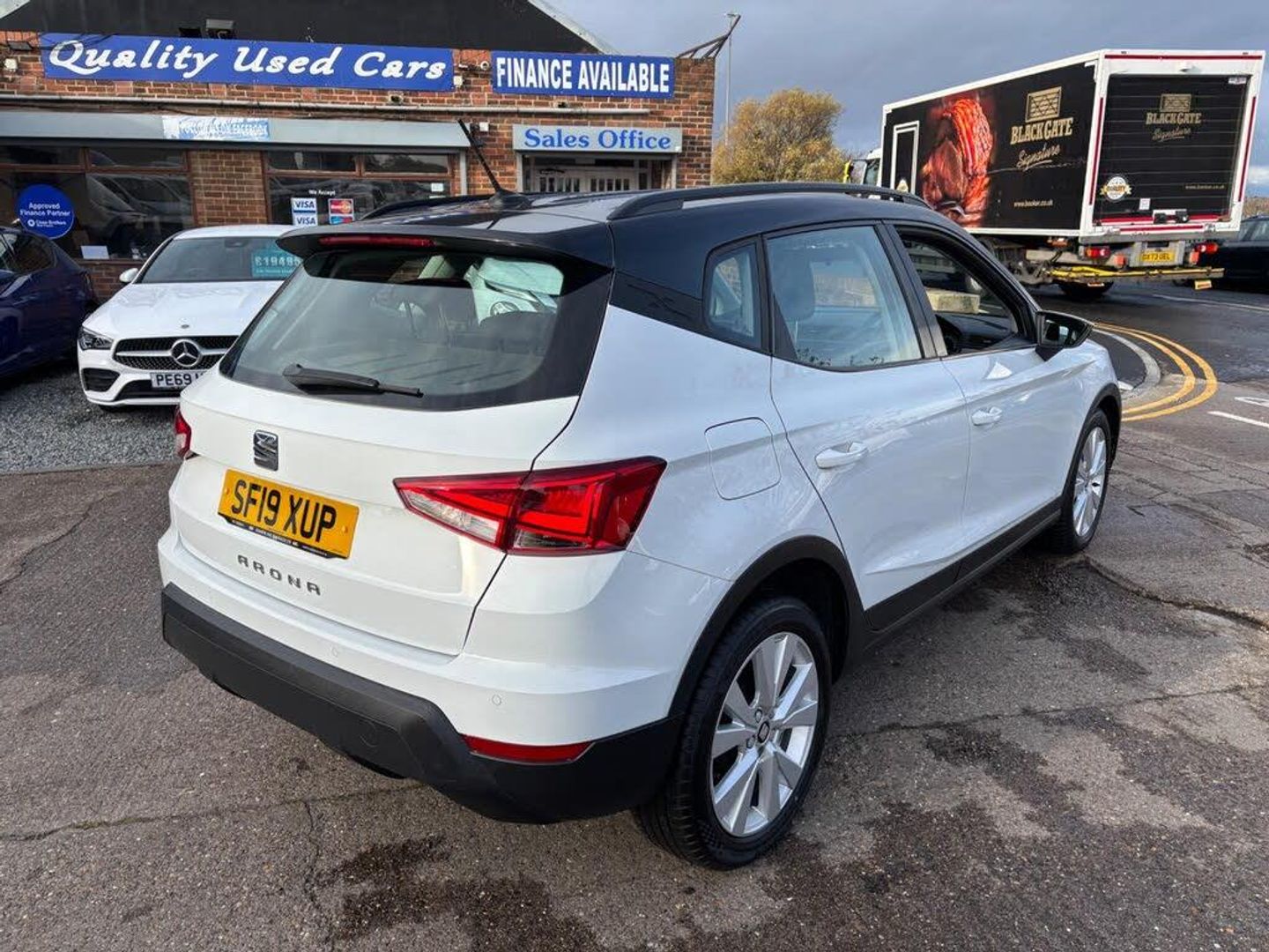 Sat NavPhone chargingDAB radioBluetoothApple CarPlayParking sensorsCruise controlAuto headlights2 keys12 months MOT6 months warrantyDiscover this 2019 SEAT Arona TSI SE Technology, a well presented vehicle ready for its next owner. This Euro 6 compliant model features a responsive 1.0 litre petrol engine and is equipped with essential technology for a comfortable drive. You'll appreciate the convenience of rear parking sensors with parking assistance, automatic headlights that adjust to lighting conditions, and air conditioning to keep you comfortable in all weather. The Connectivity Pack Plus includes wireless phone charging, and you can easily stream music and take calls with the Bluetooth audio streaming and handsfree system.This SEAT Arona stands out with its impressive fuel economy, achieving up to 50 miles per gallon, which indicates it is more economical than many similar vehicles. Furthermore, its low insurance group rating suggests that running costs will be lower compared to other cars in its class. The vehicle also boasts low CO2 emissions, highlighting its efficiency and environmental consideration.-Phone charge,Nav,AppleCarPlay