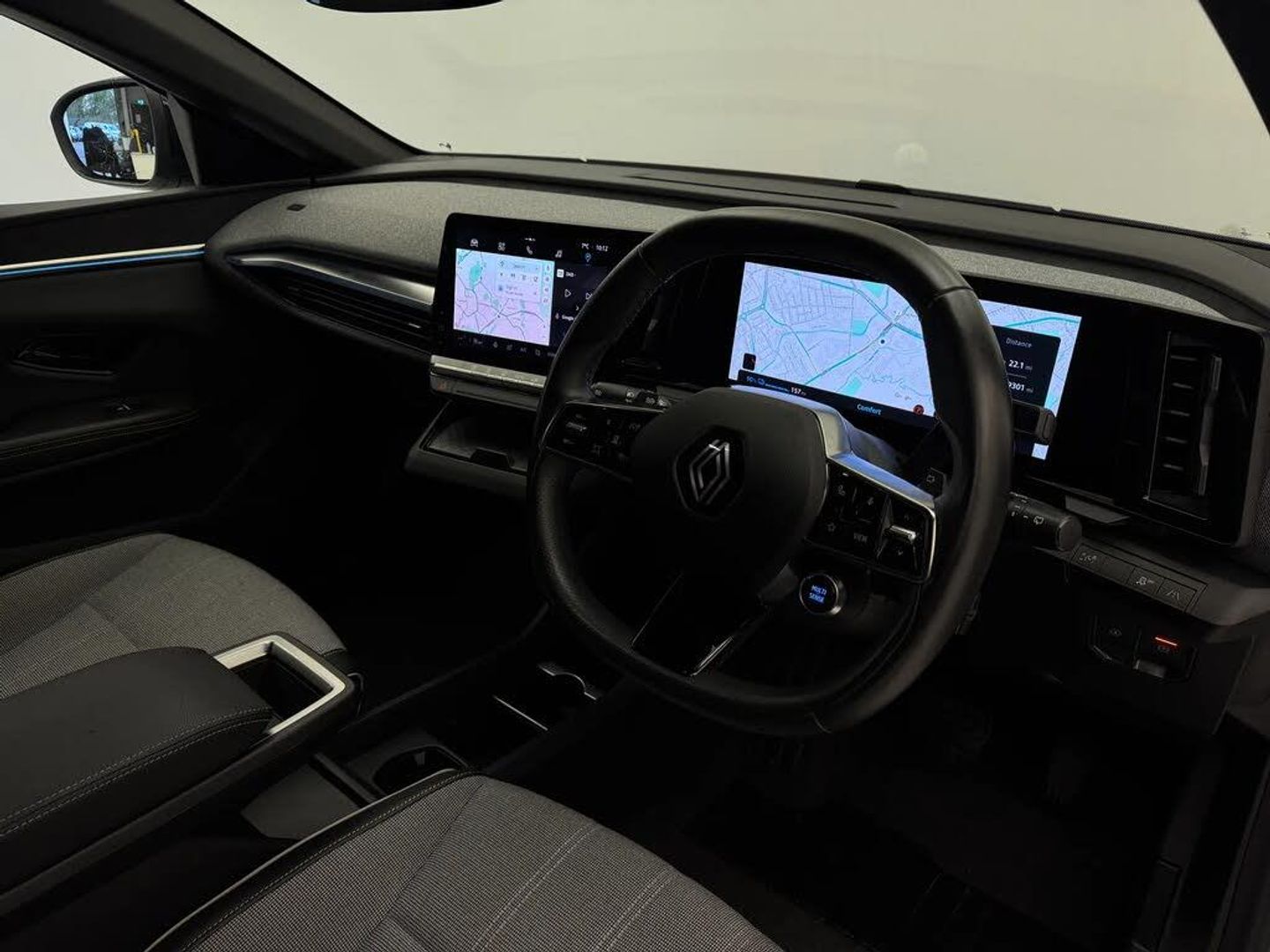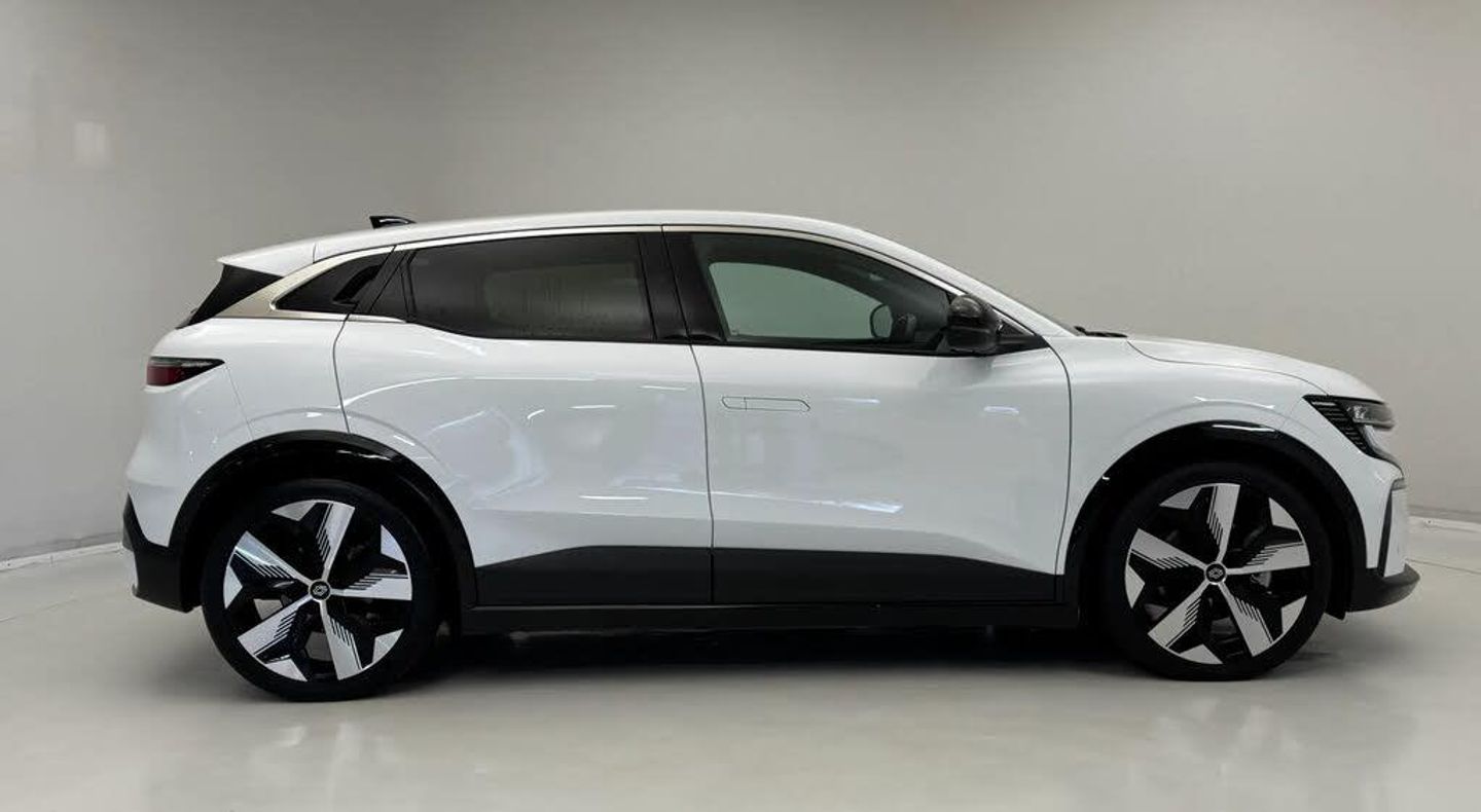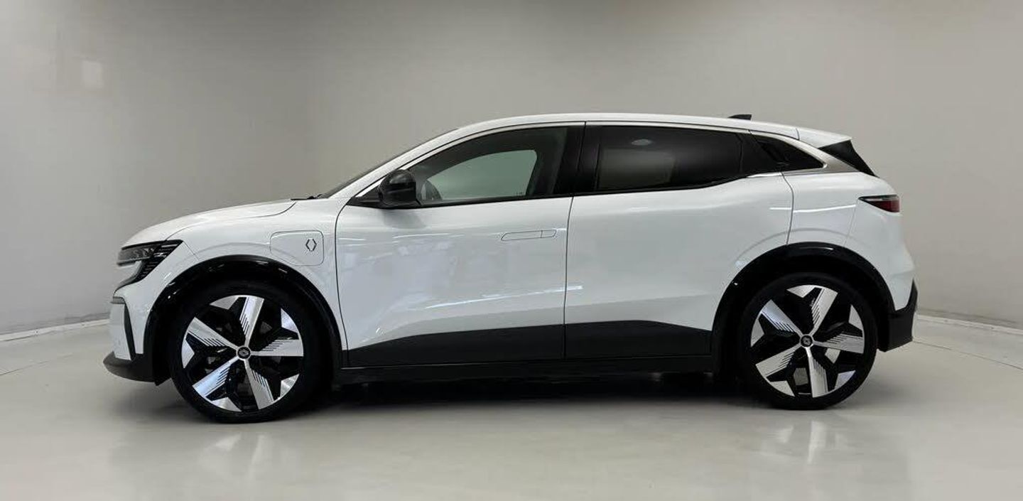 12.3" driver information display cluster,9" Multimedia OpenR link screen with navigation,Autonomous driving level 2: adaptive cruise control with speed limiter and lane centering,Blind spot recognition and intervention,Configurable dashboard display,Connected services including over the air updates,Digital owner's manual,Driver drowsiness alert system,e-Call (emergency call),Ecomode function,Emergency lane keep assist including solid line, oncoming traffic and road edge detection,Engine start button,Exterior temperature display,Front and rear park assist,Google assisted services,Multisense: customisable driving modes (personalised, sport, eco, comfort),On board diagnostics,PAS,Rear cross traffic alert with rear automatic braking system,Rear parking camera,Speed limit display,Steering wheel mounted cruise control,Traffic sign recognition with overspeed prevention,Trip computer,Wireless phone charger,AC22 5m mode 3 charging cable,Arkamys audio system with 6 speakers,Digital radio,Steering wheel audio controls,Auto-tilting and folding wing mirrors with puddle lamp,Automatic daytime running lights,Automatic headlights,Automatic high/low beam,Automatic windscreen wipers with rain sensor and sensitivity setting,Electric one-touch power front and rear windows,Ev shape daytime running lights,Frameless auto dimming rear view mirror with brightness adapt,Full led headlights with adaptive led front and rear fog lights (afs),Heated door mirrors,Heated rear window,LED third brake light,Moirage front and rear signature lighting with dynamic turn,Rear side wing doors,Rear window defroster,Rear wiper,Shark fin antenna,Tinted rear windows,Wing Mirror design - non-body coloured,12V socket in front,2 Front USB C-type ports,2 Rear USB C-type ports,3 rear head restraints,3 seat bench in 2nd row,Central multimedia display,Central rear headrest,Coat hooks,Door sill protectors,Driver and passenger heated seats,Driver and passenger seats with backrest inclination, height and longitudinal adjustment (6 combinations),Fabric made from recycled plastic materials and synthetic leather upholstery,Front head restraints,Front seat back map pockets,Heated steering wheel,High centre console with sliding armrest and storage,Interior ambient lighting,ISOFIX child seat fixing points on rear outermost seats,Luggage compartment cover,Luggage compartment light,Manual height and depth adjustable steering wheel,Multifunction steering wheel,Paddle shift levers for regenerative braking,Single front passenger seat,Textile floor mats,Top grain leather steering wheel,Two zone automatic climate control with humidity senor and air recycling,Underfloor storage in boot,Techno pack - Megane,3x3 point rear seat belts,Adjustable driver and passenger safety seat belts,Anti-lock braking system (ABS),Automatic emergency braking junction assist with pedestrian, cyclist and junction alerts,Brake energy recuperation,Curtain airbags,Distance warning alert,Downhill brake control,Driver and front passenger airbags,Driver and passenger, front and side airbag deactivation,Electric parking brake,Emergency door unlock,ESP,Front and rear seatbelt pretensoners,Front and rear seatbelt reminder,Height adjustable rear seatbelts,Hill start assist,Rear window and door child locking function,Seatbelt load limiter,Side airbags,Traction control,Tyre pressure warning light,Central locking system with thatcham approved immobiliser,Hands free key card with keyless entry,Remote vehicle locator,Fabric upper dashboard,20" Soren alloy wheels,Tool kit,Tyre inflation kit,Fabric and Synthetic Leather - Grey and Black,Glacier White