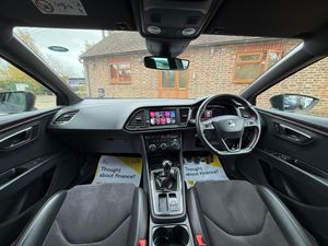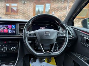 12V Power Supply in Centre Console, 18in Alloy Wheels - Performance Matte 30-2, 7 Airbags, ABS and Traction Control System - TCS - Electronic Stability Control - ESC - and Electronic Differential Lock System - XDS, Alarm - Volumetric, Armrest - Front with Storage Compartment, Black Interior Roof Lining, Bumpers - Exclusive FR Front and Rear, Convenience Pack Plus, Cruise Control, Dark Tinted Rear Windows, Digital Clock, Digital Cockpit, Driver and Passenger Seat Height Adjustment, Driver and Passenger Sunvisor with Covered and Illuminated Mirrors, Drivers Seat Lumbar Adjustment, Dual Zone Climate Control, Electric Parking Brake Including Autohold Function, Electrically Adjustable Folding and Heated Door Mirrors, Electro-Mechanical Progressive Power Steering, Emergency Tyre Repair Kit, Front Assist with Pedestrian Protection, Front Seat Back Storage Pockets, Front Sports Seats, Front and Rear Electric Windows, Front and Rear Parking Sensors, Full LED Headlights, Gearshift Indicator, ISOFIX Points in Outer Rear Seats with Top Tether Anchorage Points, Illuminated Aluminium Front Door Sill with Trim Logo, Instrument Lighting with Brightness Control, LED Interior Illumination Pack, Leather Gear Knob, Lights Left On Warning Buzzer, Low Fuel Warning Light, Matte Black Door Mirrors with Integrated LED Indicators, Media System Plus, Multi Coloured Ambient Lighting, Multi-Collision Braking System, Navigation System, Outside Temperature Gauge, RPM Counter, Radiator Grille Frame in Matte Black, Radiator Grille in Black, SEAT Drive Profile, SEAT Full Link Smartphone Integration - Mirror Link - Apple CarPlay - Google Android Auto, Seatbelt Reminder - Front, Seats - Passenger Lumbar Adjustment, Split Folding Rear Seats 60-40 with Armrest, Sports Suspension, Steering Wheel - Flat-Bottomed Perforated Leather with Red Stitching and FR Logo, Storage Box Under Driver and Front Passenger Seat, Trip Computer, Two Height-Adjustable Front and Rear Headrests, Tyre Pressure Monitoring System, Visual Twin Exhaust Pipes, Winter Pack