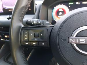 Full Digital 12.3" TFT Digital Combimeter, Wireless Apple CarPlay and wired Android Auto, Rear view camera, Nissan connect 12.3 inch touchscreen infotainment system, Google maps services - search, weather, 3D maps and Google street view, Drive modes (sport, normal, eco), Intelligent around view monitor, Intelligent Cruise control (ICC), Intelligent forward collision warning, Nissan connect navigation, Push button starter, Bluetooth audio streaming, AM/FM audio system with DAB, Auto dimming rear view mirror, Electric auto folding door mirrors, High beam assist, Intelligent auto headlights, LED daytime running lights, Privacy glass, Ambient lighting around centre console, Dual zone automatic climate control with pollen filter, Multifunction steering wheel, Two rear isofix child seat anchorage points with top tether, Welcome light and console tray ambient lighting, Auto hold function, Electronic parking brake, Hill start assist, Intelligent Key, 18" Diamond cut alloy wheels