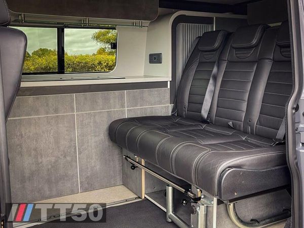 HUGE SPEC !! The highest spec'd van straight from the factory T32 High line, 4 motion DSG 204bhp. Finished in stunning Grey which compliments the black leather. Built by Status One and Sherwood Campers this is a top of the range van costing just under £100k when new. Full Service History. SPEC INCLUDES: Adaptive cruise control, air conditioning, leather multi-function steering wheel, front and rear parking sensors, App-Connect, quick clear windscreen, auto lights and wipers, the rare VW LED lights and heated cab seats which swivel. Newstead model that features the excellent Reimo Vario tech 3000 bed which provides three seats, ISOFIX and is on rails so multi-positional. Other equipment includes Reimo V tech pop-top roof with sprung bed, Webasto diesel heater and Fiamma f45s wind out awning. The furniture is very well built with flush fitting cupboards, and all five seats have been upholstered in genuine Nappa leather. It has all the original certificates from Sherwood including the electrical testing report, Gas safety certificate and all product registration, certificates and manuals for all items fitted which includes Westfalia tow bar, Fiamma f45's, Webasto fridge, Dometic sink and hobs, Bullfinch external shower point along with Shurflo fresh water pump and undermounted water tank. Solar panel with solar charger controller. Pilot and passenger swivel chairs, table, led lights with dimmer switches, 240v hook up with the leads, BCA power management. Full Nappa leather seats. State of the art hand made panels, beautifully curved along with full blinds. All draws are soft close and the whole build is of the highest quality. Recently had a full upgraded suspension from CRS performance to give the ultimate ride. FINANCE AVAILABLE and PART EXCHANGES WELCOME. TT50 prepare all vehicles to an EXCEPTIONALLY HIGH STANDARD. Each vehicle is FULLY INSPECTED in our on-site workshop and PROFESSIONALLY VALETED. We only select the very best stock for retail sale with good service histories and low owners where possible. Vehicles are FULLY HPI CLEAR !! All retail vehicles come with a 3 MONTH WARRANTY extendable to 6 / 12 or 24 MONTHS . Warranty comes with complimentary ROADSIDE ASSISTANCE. APPLY for Finance via our website *Rates are subject to a credit check and customer profile. Debit Cards Accepted. Please call David on 01604 805050 or 07379 805050 (WhatsApp enabled) for more information. DRIVE AWAY TODAY !!