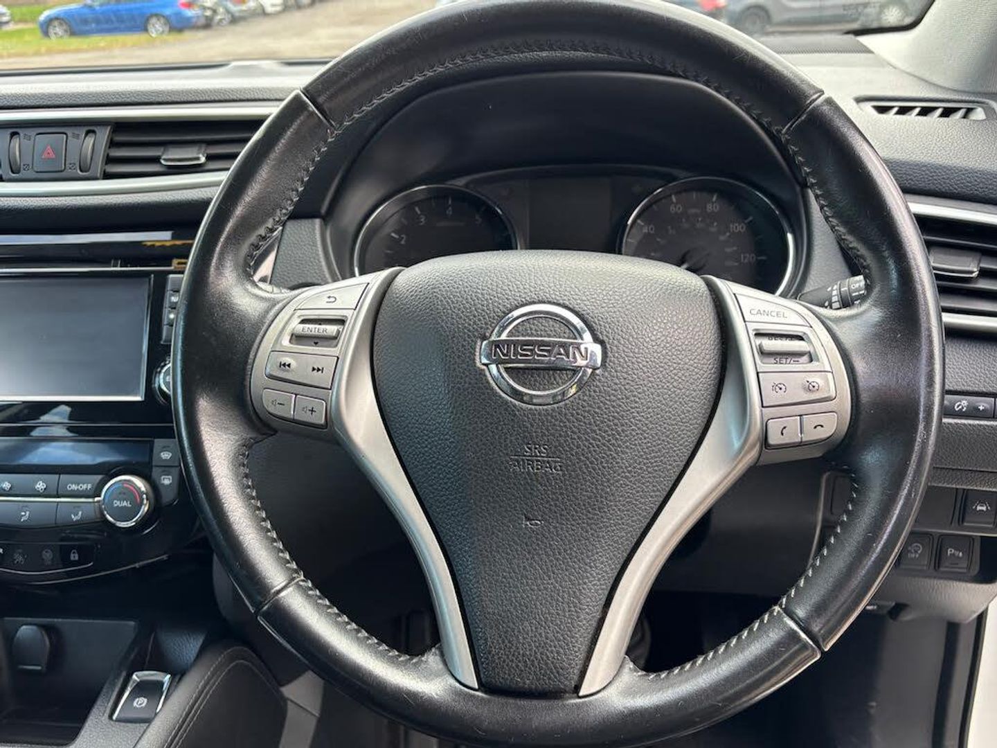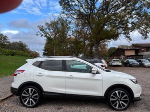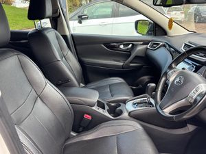 19in Alloy Wheels - 5-Spoke,3 x 3-Point Rear Seatbelts with ELR,5in High Definition Full Colour TFT Screen Combimeter,6 Speakers,60-40 Split Rear Folding Seats,AUX Socket for MP3 Player,Alarm,Automatic Folding Door Mirrors,Automatic Lights and Wipers,Black Honeycomb Front Grille,Bluetooth,Body-coloured Bumpers - Handles and Mirrors,CD Radio,Chrome Glass Surround,Cruise Control with Speed Limiter,Drive Computer,Driver Seat Height Adjustment,Driver-Passenger-Side and Curtain Airbags,Drivers Side One-touch and Anti-trap Window,Dual Zone Climate Control Air Conditioning,ESP ABS EBD and Brake Assist,Electric Speed-Sensitive Power Steering,Executive Pack,Front Centre Console and Armrest,Front Fog Lamps with Chrome Ring,Front Seat Belt Height Adjustment,Front Seat Belts with Load Limiter and Pretensioners,Front and Rear Electric Windows,Head Restraints - 3 Rear,Headlights - Automatic Levelling,Headlights - Bi-LED,Heat Pack,Height Adjustable Front Head Restraints,Hill Start Assist,ISOFIX Child Seat Anchoring Points,Immobiliser,Intelligent Key,Intelligent Park Assist,Interior Ambient Lighting,LED Signature Daytime Running Lights,Leather Steering Wheel,Luggage Board System,Nissan Chassis Controls,Puncture Repair Kit,Push Start-Stop Button,Rear Door Child Locks,Rear Privacy Glass,Rear Seat Armrest with 2 Cupholders,Remote Audio Control,Roof Rails - Satin Silver,Safety Shield,Seats - Drivers Lumbar Support,Seats - Passengers Height Adjustment,Selectable Steering - Normal or Sport,Smart Vision Pack,TPMS - Tyre Pressure Monitoring System,Tech Pack,Tilt and Telescopic Adjustable Steering Wheel,e-PKB - Electric Parking Brake