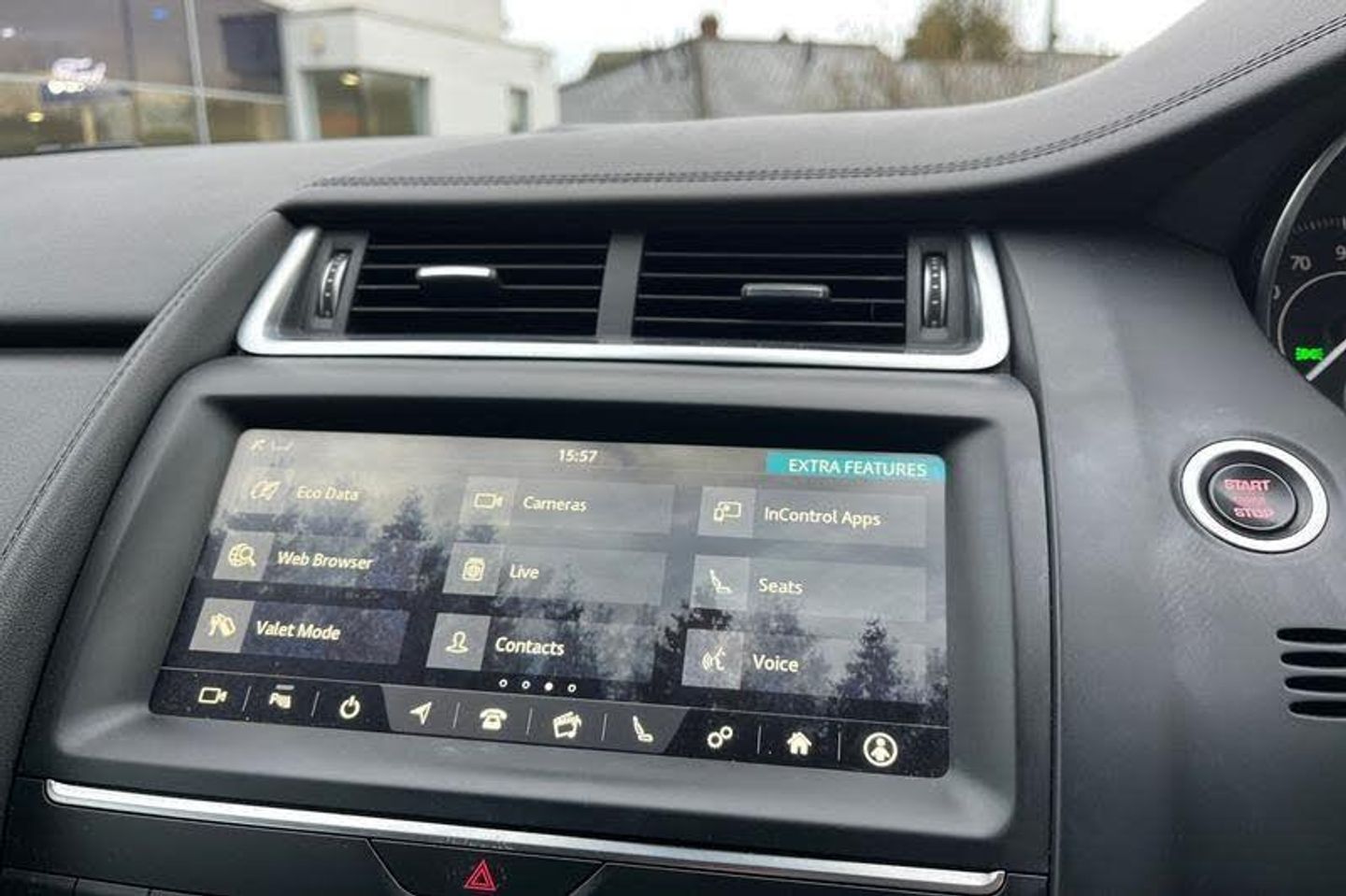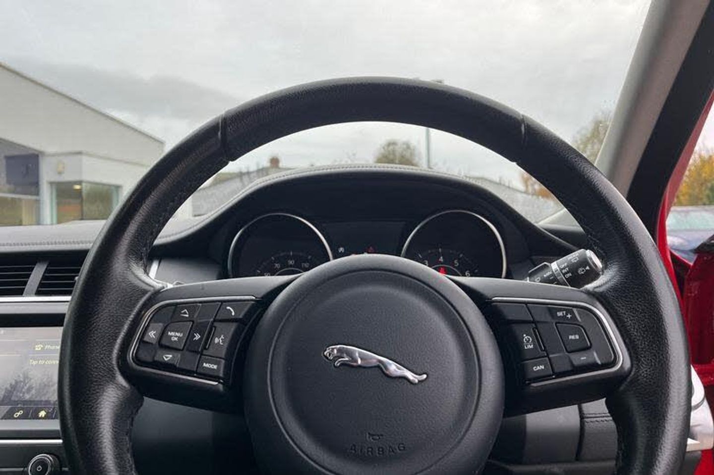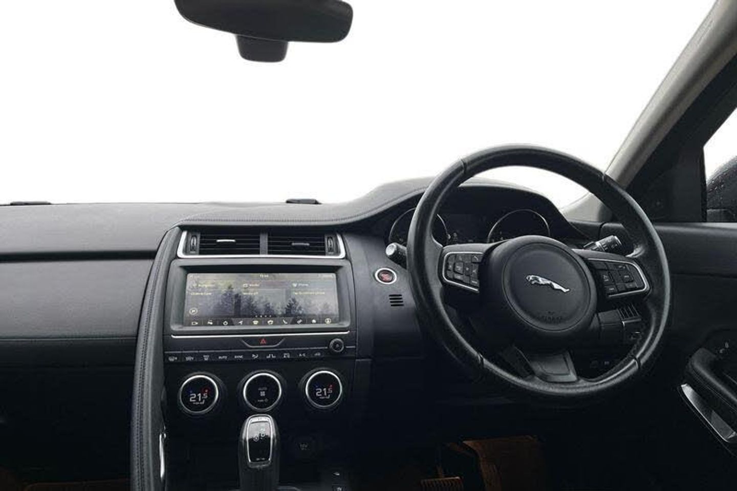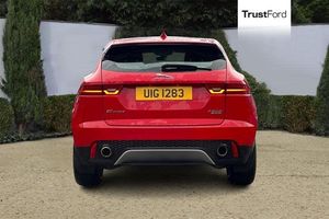 Driver condition monitor, Eco driving style assistant, Electric power assisted steering, InControl remote, InControl Touch navigation pro, Lane keep assist, Outside temperature gauge, Push button starter, Speed proportional steering, Start up sequence with movement in dials and lighting, Traffic sign recognition with adaptive speed limiter, Trip computer, Voice control system, 3 flash lane change indicators, Approach Illumination, Auto dimming rear view mirror, Automatic headlights, Body colour bumpers, Electric front/rear windows with one touch/auto up/down, Grained black door claddings, Heated front windscreen, Heated rear window with timer, Heated washer jets, Jaguar script and leaper, Rain sensor windscreen wipers, Rear fog lights, Tailgate/boot lid spoiler, Twin tailpipes with finishers, 12V power socket in rear, 2nd row 60/40 split/fold, 2nd row air vents, 3 seat bench in 2nd row, 4 Load area hooks, Centre armrest console, Centre headrest in row 2, Elasticated loadspace side strap, Front head restraints, ISOFIX on outer rear seats, JaguarDrive selector, LED lighting in overhead console, Loadspace cover, Loadspace lamp, Passive front headrests, Storage net in luggage compartment, Sunvisors with illuminated vanity mirrors, Tie down hooks in luggage area, Twin front cupholders, Two zone climate control, 350mm front brakes, 3x3 point rear seatbelts, ABS, All surface progress control (ASPC), Customer configurable autolock, DSC - Dynamic Stability Control, Electronic brake force distribution, Electronic parking brake, Emergency brake assist, Front airbags with passenger seat occupant detector, Front and rear curtain airbags, Front and rear seatbelt reminder, Front side airbags, Hill start assist, Low friction launch, Power child locks, Torque vectoring brake, Tyre pressure monitoring system
