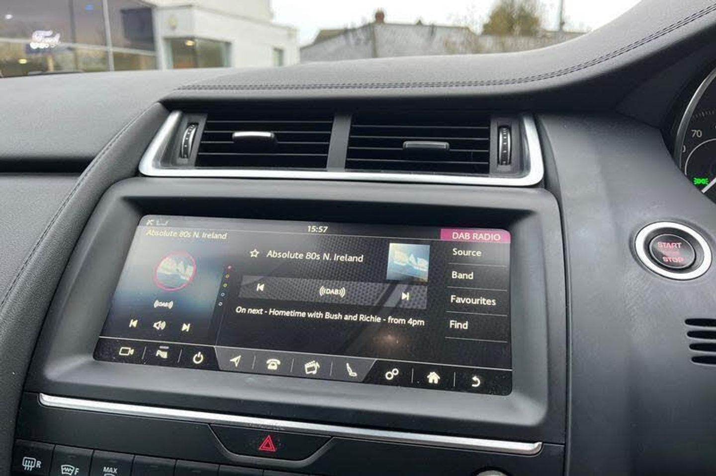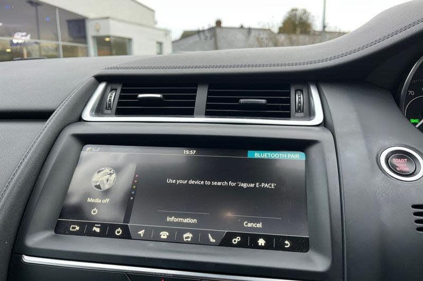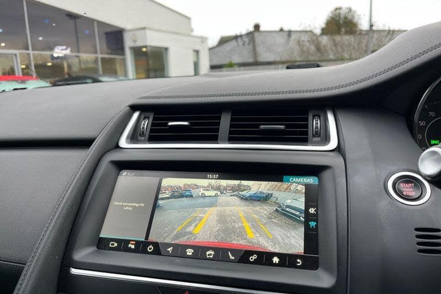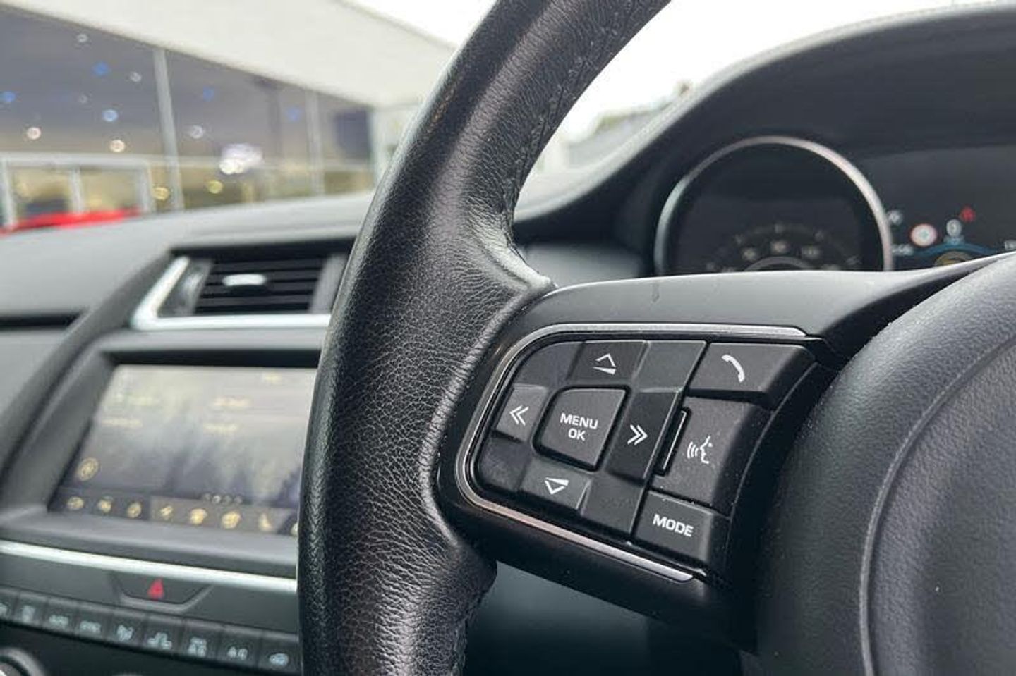Driver condition monitor, Eco driving style assistant, Electric power assisted steering, InControl remote, InControl Touch navigation pro, Lane keep assist, Outside temperature gauge, Push button starter, Speed proportional steering, Start up sequence with movement in dials and lighting, Traffic sign recognition with adaptive speed limiter, Trip computer, Voice control system, 3 flash lane change indicators, Approach Illumination, Auto dimming rear view mirror, Automatic headlights, Body colour bumpers, Electric front/rear windows with one touch/auto up/down, Grained black door claddings, Heated front windscreen, Heated rear window with timer, Heated washer jets, Jaguar script and leaper, Rain sensor windscreen wipers, Rear fog lights, Tailgate/boot lid spoiler, Twin tailpipes with finishers, 12V power socket in rear, 2nd row 60/40 split/fold, 2nd row air vents, 3 seat bench in 2nd row, 4 Load area hooks, Centre armrest console, Centre headrest in row 2, Elasticated loadspace side strap, Front head restraints, ISOFIX on outer rear seats, JaguarDrive selector, LED lighting in overhead console, Loadspace cover, Loadspace lamp, Passive front headrests, Storage net in luggage compartment, Sunvisors with illuminated vanity mirrors, Tie down hooks in luggage area, Twin front cupholders, Two zone climate control, 350mm front brakes, 3x3 point rear seatbelts, ABS, All surface progress control (ASPC), Customer configurable autolock, DSC - Dynamic Stability Control, Electronic brake force distribution, Electronic parking brake, Emergency brake assist, Front airbags with passenger seat occupant detector, Front and rear curtain airbags, Front and rear seatbelt reminder, Front side airbags, Hill start assist, Low friction launch, Power child locks, Torque vectoring brake, Tyre pressure monitoring system