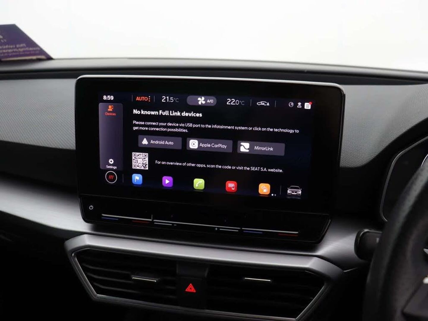 12V Power Supply in Centre Console,17in Alloy Wheels - Dynamic Bi-Spoke,Ambient Lighting,Ambient Lighting in Door Trim,Anti-Lock Brakes - ABS,Anti-Theft Alarm System - Interior Monitoring - Backup Horn and Towing Protection,Auto Dimming Rear View Mirror,Brake Control System - ESC and Brake Booster,Chrome Interior Detailing,Cruise Control with Speed Limiter,Dark Tinted Rear Windows,Digital Cockpit,Driver and Front Passenger Airbags with Front Passenger Airbag De-Activation - Front Side - Curtain Airbag,Driver and Passenger Seat Manual Height Adjustment,Driver and Passenger Seat with Lumbar Adjustment,Electric Parking Brake,Electrically Adjustable Folding and Heated Door Mirrors,Electro-Mechanical Power Steering - Speed-Sensitive,Electronic Differential Lock System - XDS - Dynamic Traction Support,Emergency Tyre Repair Kit,Extended Safety System,FR Sport Bumpers,Folding Boot Cover,Four USB Type C Ports,Front Assist,Front Centre Armrest,Front LED Fog Lights with Cornering Function,Front Seat Back Storage Pockets,Front and Rear Electric Windows,Front and Rear Reading Lights - Four,Full Link Smartphone Integration - Mirror Link - Wireless Apple CarPlay - Wired Google Android Auto,Height-Adjustable Front and Rear Headrests - with Third Headrest in Rear,ISOFIX Points in Outer Rear Seats with Top Tether Anchorage Points,Illuminated Front Door Sill,Interior Lighting,KESSY Go - Keyless Start,LED Headlights with Dynamic Turn Signals,Lane Keeping System,Leather Flat Bottomed - Perforated Steering Wheel with Red Stitching and FR Logo,Lockable Tailgate,Media System Plus with Navigation,Multi Coloured Ambient Lighting,Park Assist including Front and Rear Parking Sensors,Rain Sensing Wipers,Rear Bench Seats with 60-40 Split and Armrest,Rear Fog Light,SEAT Connect App,SEAT Drive Profile,Seatbelt Reminder - Front and Rear,Separate Daytime Running Light with Automatic Headlight Control and Automatic Coming Home Feature,Seven Speakers,Sports Suspension,Start-Stop and Regenerative Braking,Sunvisors with Illuminated Mirrors,Three-Zone Climate Control,Tiredness Recognition System,Tool Kit,Tyre Pressure Monitoring System,Wireless Device Charger
