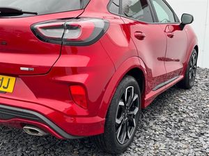 18in Alloy Wheels - 5-Spoke - Matt Black Machined Finish,ABS - Anti-lock Braking System,Acoustic Laminated Windscreen,Active Grille Shutter,Automatic Dimming Rear View Mirror,Automatic Headlights with Rain-Sensing Wipers and Auto High Beam,B&O Premium Audio System and Ford SYNC 3 Navigation,Black Contrast Roof,Carbon-Look Interior Deco Spears,Centre Console - Premium with Openable Stowage Area with USB Connectivity - 2 Cupholders and 12v Pow,Courtesy Lights - Ambient LED Courtesy Lighting - Single Colour,Cruise Control with Intelligent Speed Assist,Drivers Manual 4-Way Seat Adjustment with Manual Lumbar Adjust,ESC - Electronic Stability Control and Hill Start Assist,Ecoboost Hybrid Tailgate Badge,Electric Windows - Front and Rear,Electronic Air Temperature Control - EATC,Emergency Brake Warning - Automatic Hazard Warning Lights,Fantastic Red,First Aid Kit Strap,Floor Mats - Front and Rear,Ford MegaBox Extended Bootspace,Ford Power Starter Button,Front Bumper - Unique ST-Line Sport Design - Body Colour,Front Fog Lights with Cornering lights and LED Rear Lamps,Front Seats - Sports Style,Full Digital 12.3in Instrument Cluster,Gear Knob - Aluminium,Handbrake - Black Sensico Trimmed with Stitching,Headliner - Deluxe,Instrument Panel - High Level,Intelligent Speed Assistance,Lane Keeping Aid with Lane Departure Warning,Large Rear Spoiler - Body Colour with Centre High Mounted Stop Light,Locking Wheel Nuts,Lower Bodyside Moulding - Body Colour,Parking Pack,Partial Premium Sensico - Black with Red Stitching,Passenger 4-Way Seat with Lumbar Adjustment,Post Collision Braking,Power Steering,Power-Foldable Heated Door Mirrors with Puddle Lamps,Pre-Collision Assist with Autonomous Emergency Braking and Pedestrian-Cyclist Detection,Privacy Glass,Projector Headlamps with LED Daytime Running Lights,Puma Badge,Quickclear Heated Windscreen,Rear Bumper Body Colour - Diffuser,Rear Parking Sensors,Rear Seats - 2-Way Head Restraint Up-Down,Rear Seats - Second Row 60-40 Folding Seats,Remote Central-Double Locking,Restrain Device Pack,ST-Line Badge,ST-Line Body Styling Kit,ST-Line Flat-Bottomed Leather Steering Wheel with Unique Red Stitching,Selectable Driving Modes - Normal - Eco - Sport - Slippery and Trail,Soft-feel Gearshift Boot with Red Stitching,Speed Limiter,Sports Suspension,Tailgate - Manual,Thatcham Alarm,Traction Control and Emergency Braking Assistance,Trip-Fuel Computer,Tyre Inflation Kit,Tyre Pressure Monitoring System - TPMS,Winter Pack,Wireless Charging Pad with Electronic Air Temperature Control EATC