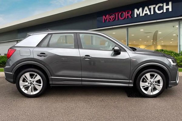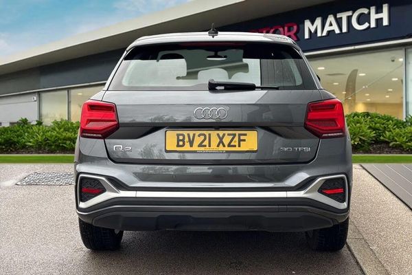 Alloys, Sat Nav, Advanced Safety, Bluetooth, Cruise Control, DAB, Isofix, AC/Climate, Parking Sensor;This sleek and stylish 2021 Audi Q2 1.0 TFSI 30 S line in metallic grey brings together compact SUV practicality, sporty design, and Audi?s hallmark quality. Powered by a 1.0-litre petrol engine producing 110 PS and paired with a manual transmission, it delivers a smooth and efficient drive perfect for both city adventures and open-road journeys. The exterior features sharp lines, a bold Singleframe grille, and Matrix-style LED headlights, giving it unmistakable road presence. The S line design package, platinum grey C-pillar blade, and 18-inch alloy wheels complete its premium look. Inside, you?re met with a driver-focused cabin that?s both functional and refined. S line sport seats, brushed aluminium inlays, and LED interior lighting create a premium, contemporary feel. The Comfort and Sound Package enhances every journey with crystal-clear audio, while the 3-spoke leather steering wheel with multifunction controls provides both comfort and precision. The Audi Virtual Cockpit offers a high-definition digital display, complemented by the MMI Navigation system with Audi Connect and smartphone integration for seamless connectivity. Audi Drive Select allows you to tailor performance to your preference, while rear parking sensors and a reversing camera ensure effortless manoeuvring in tight spaces. Everyday usability is made simple with a power-operated tailgate and split-folding rear seats, offering flexibility for shopping, luggage, or family outings. The manual air condit...